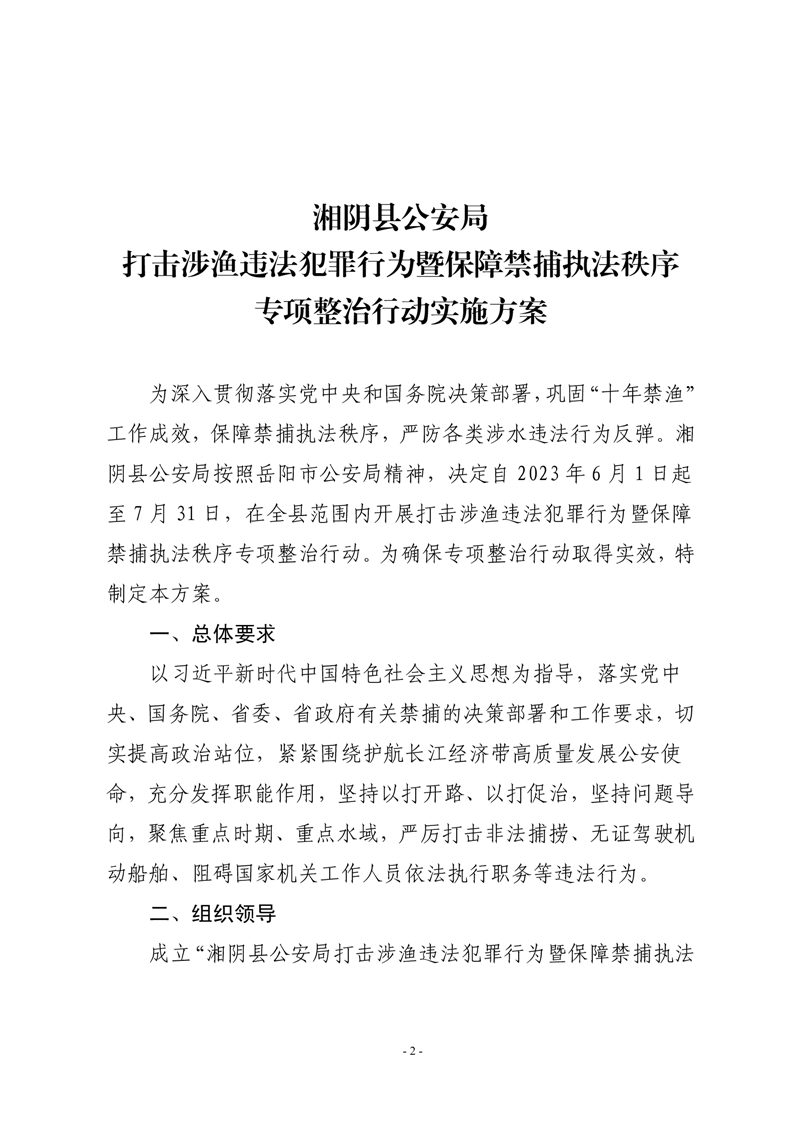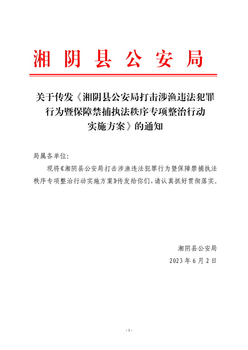 关于传发《湘阴县公安局打击涉渔违法犯罪行为暨保障禁捕执法秩序专项整治行动实施方案》的通知