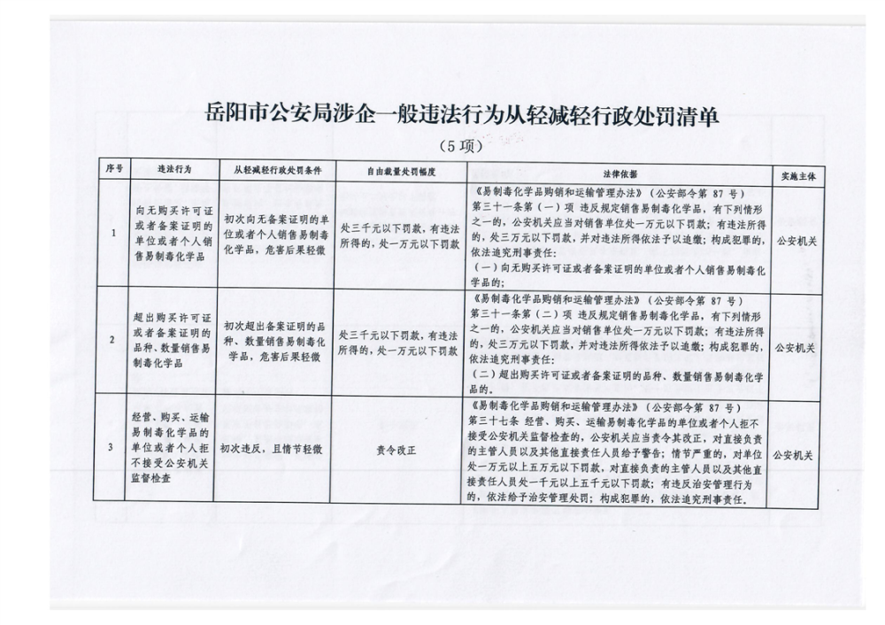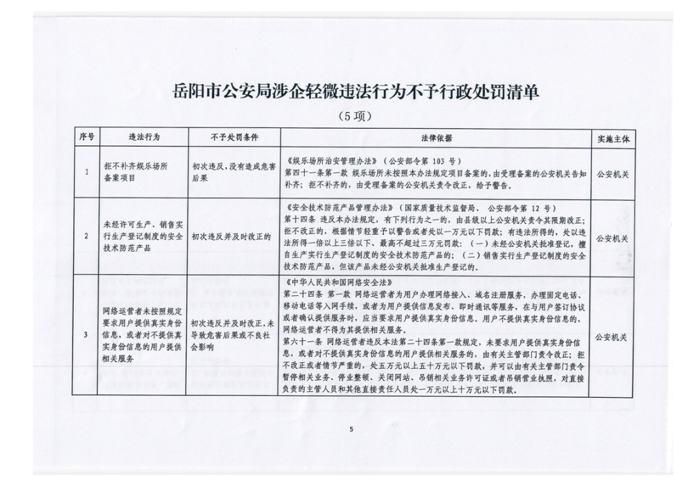 关于印发《岳阳市公安局涉企轻微违法行为不予处罚一般违法行为从轻减轻行政处罚清单》的通知