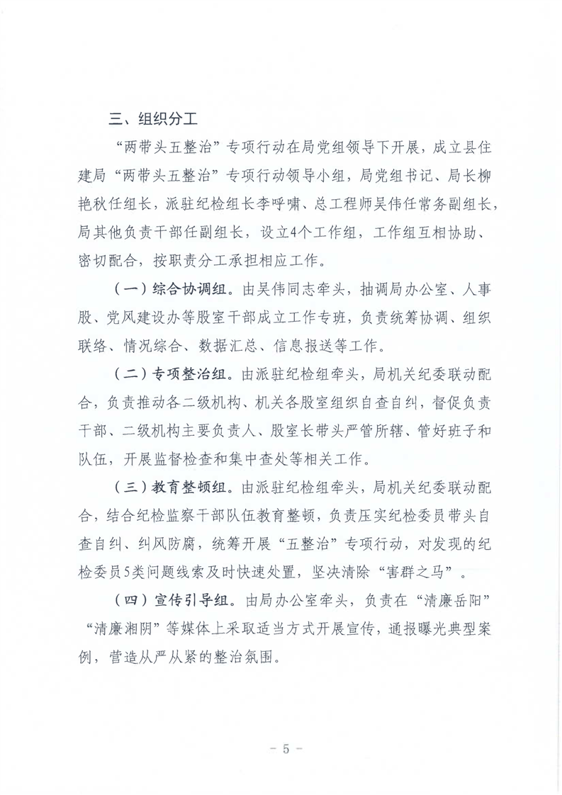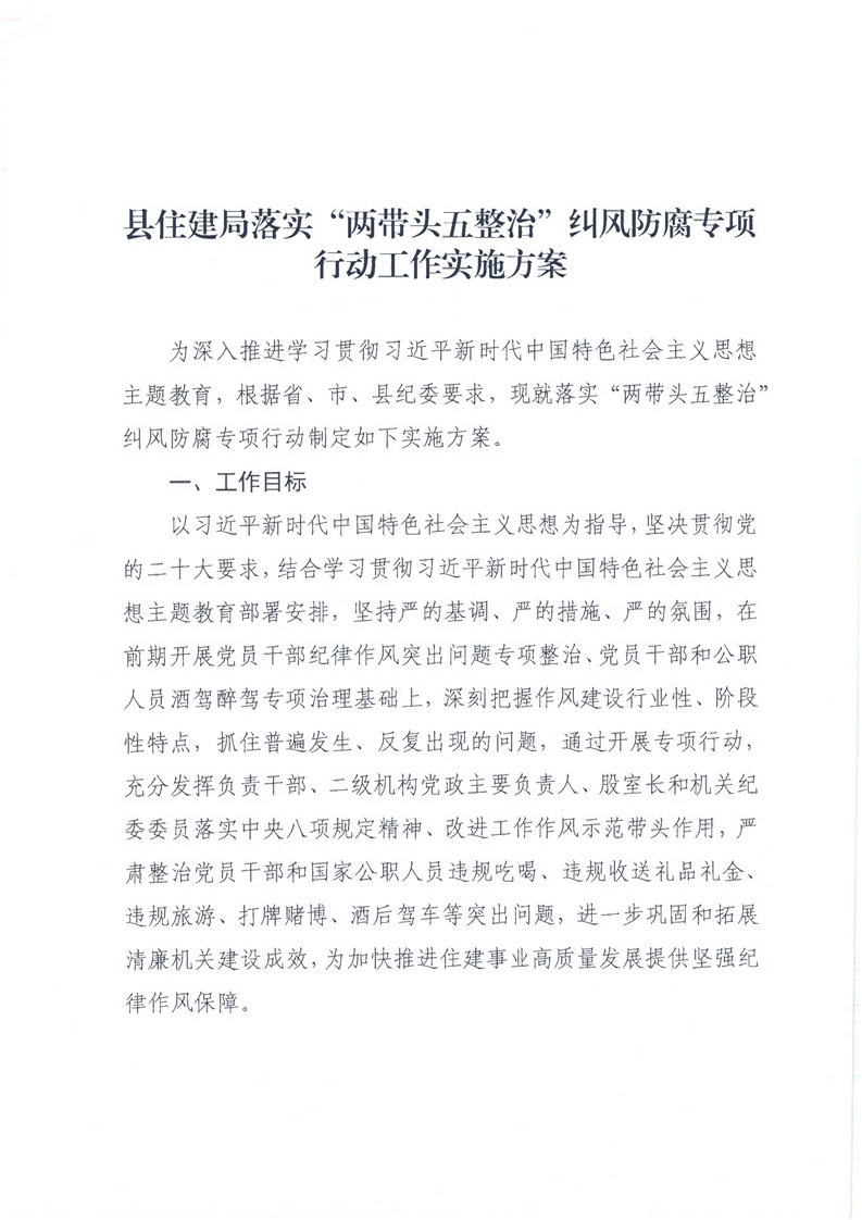 关于印发《县住建局落实“两带头五整治”纠风防腐专项行动工作实施方案》的通知