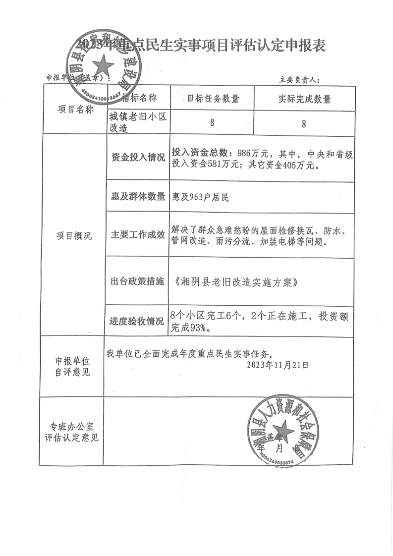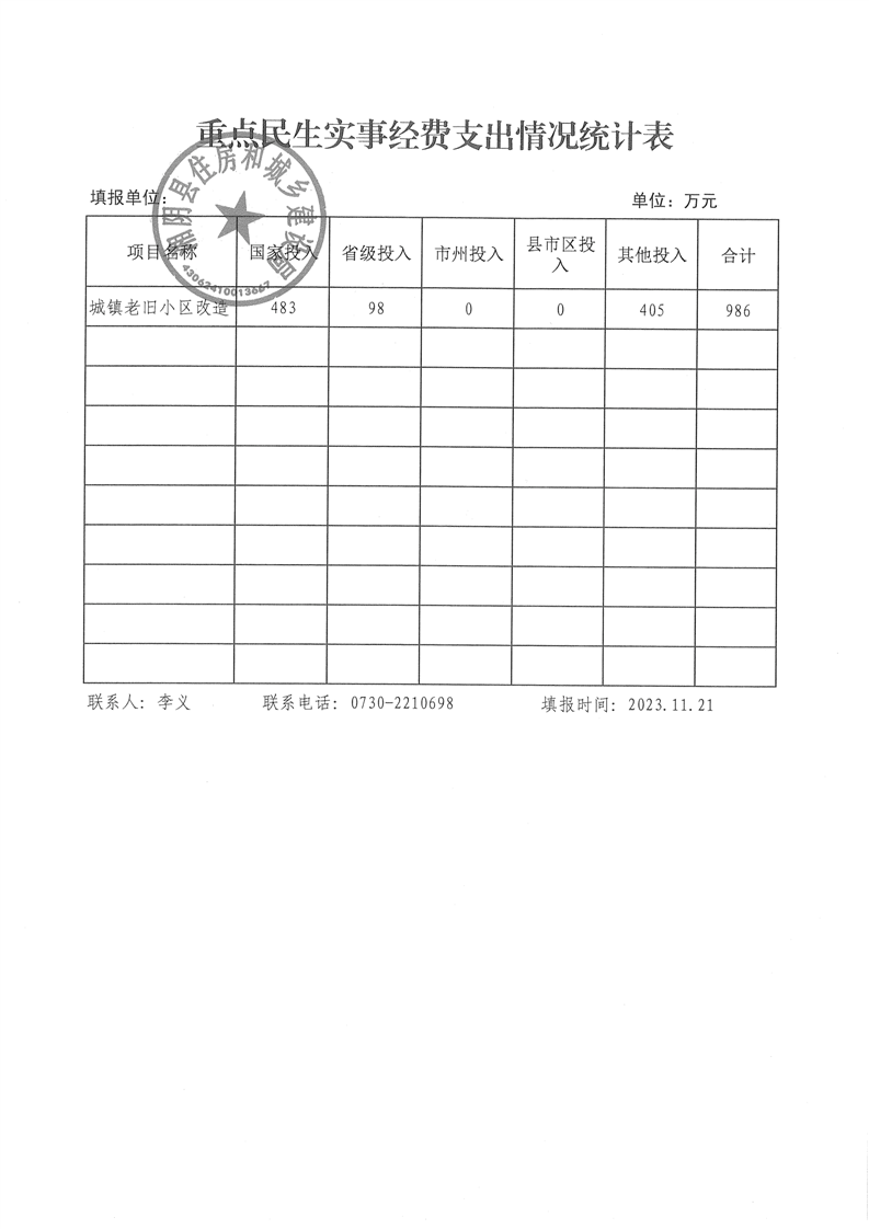 2023年重点民生实事项目评估认定申报表、重点民生实事经费支出情况统计表公示