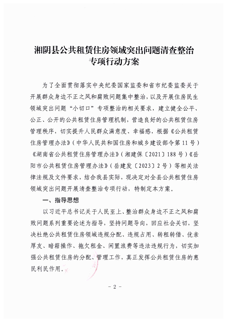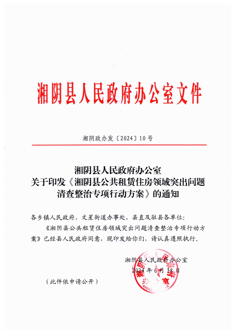 关于印发《湘阴县公共租赁住房领域突出问题清查整治专项行动方案》的通知
