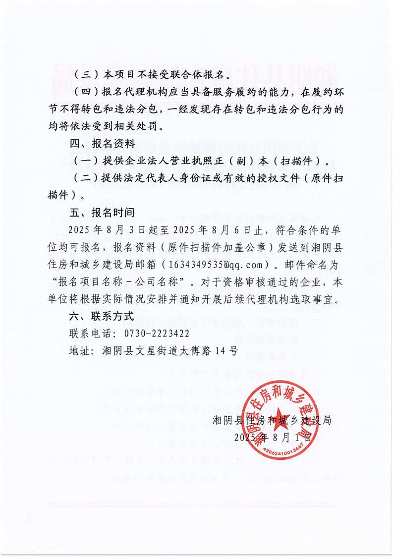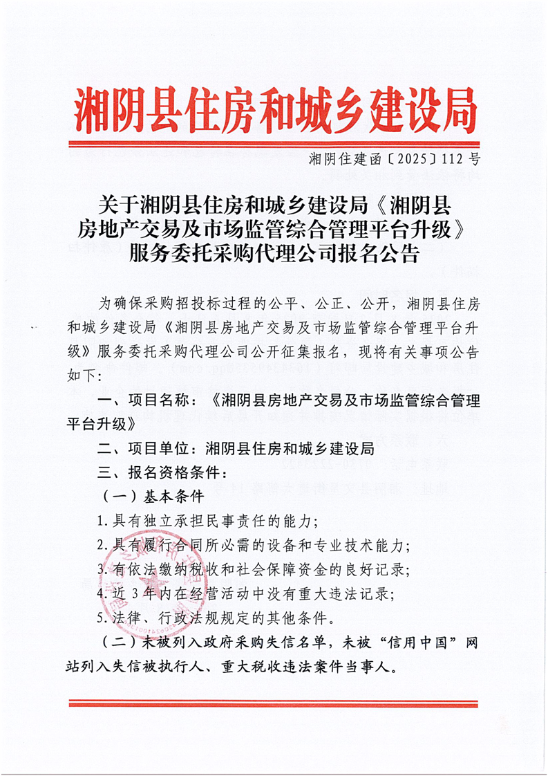 关于湘阴县住房和城乡建设局《湘阴县房地产交易及市场监管综合管理平台升级》服务委托采购代理公司报名公告