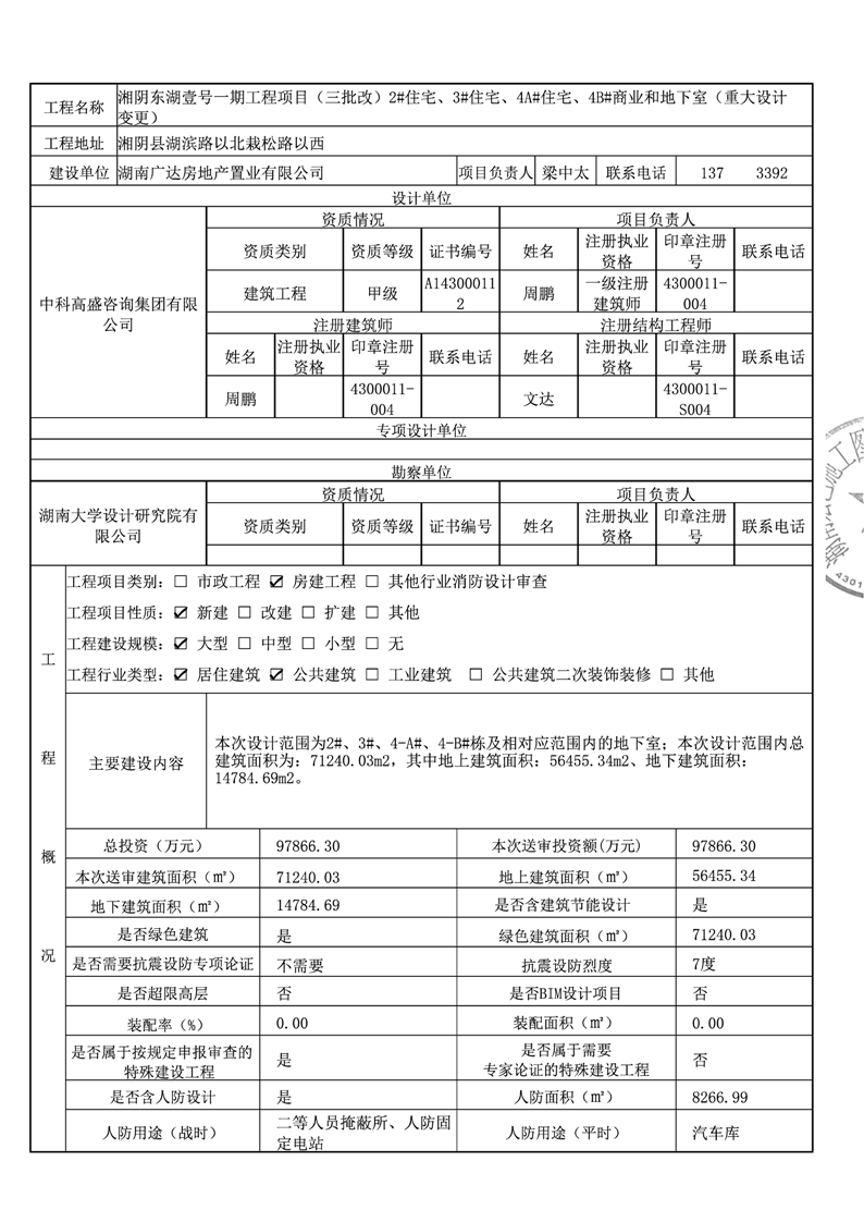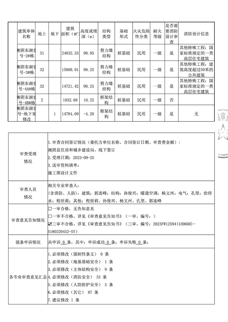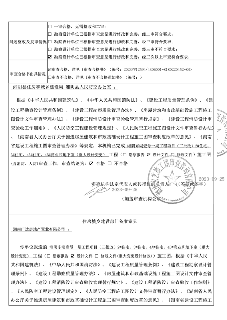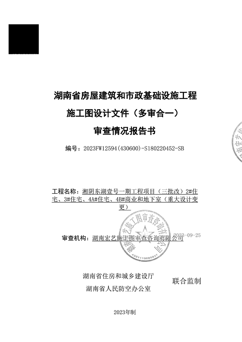 湖南省房屋建筑和市政基础设施工程施工图设计文件(多审合一)审查情况报告书编号:2023FW12594(430600)-S180220452-SB