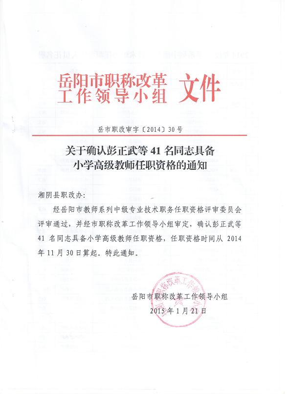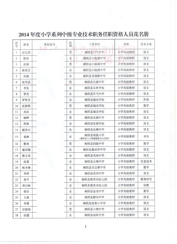 2014年度小学系列中级专业技术职务任职资格人员花名册