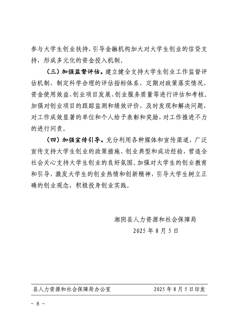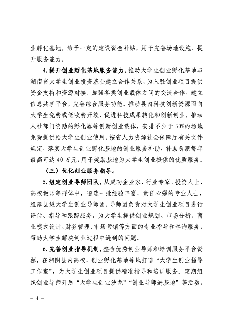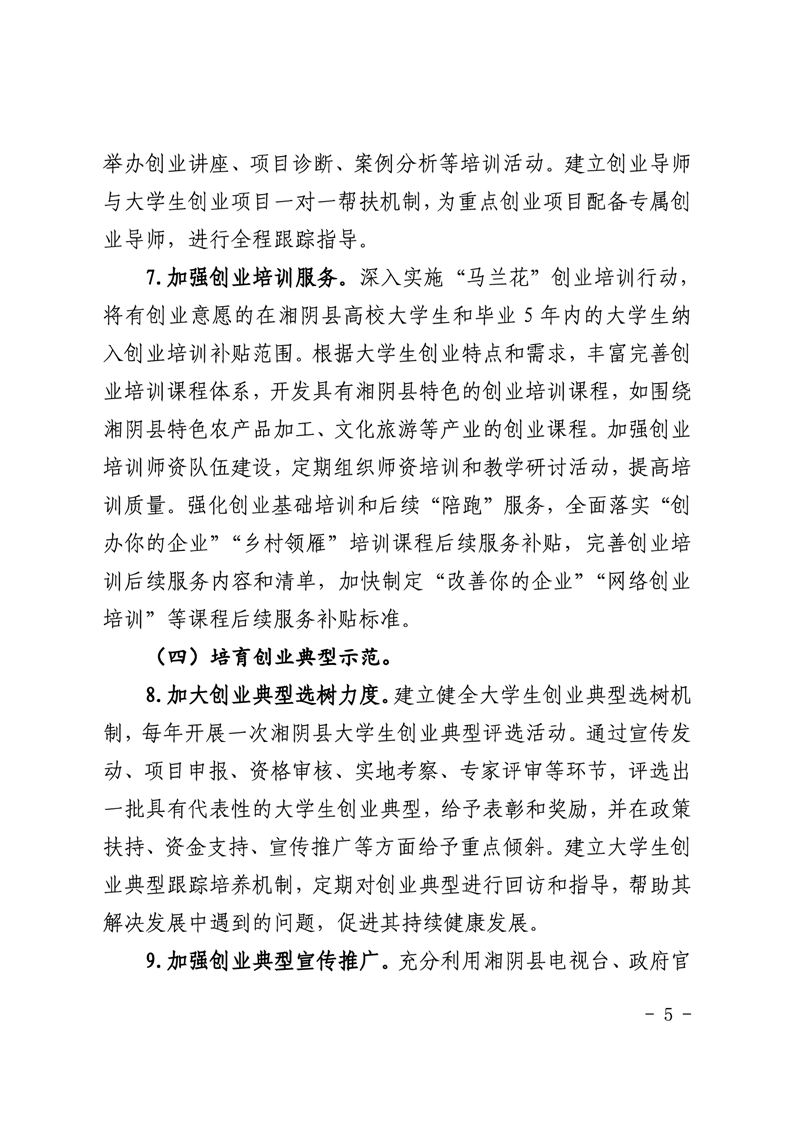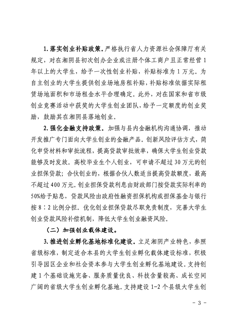 湘阴县人力资源和社会保障局支持大学生创业工作实施方案
