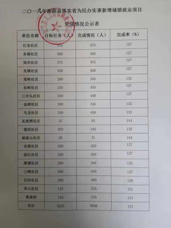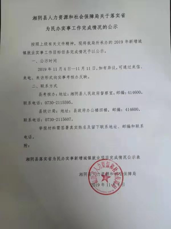 2019年湘阴县人力资源和社会保障局关于落实省为民办实事工作完成情况的公示