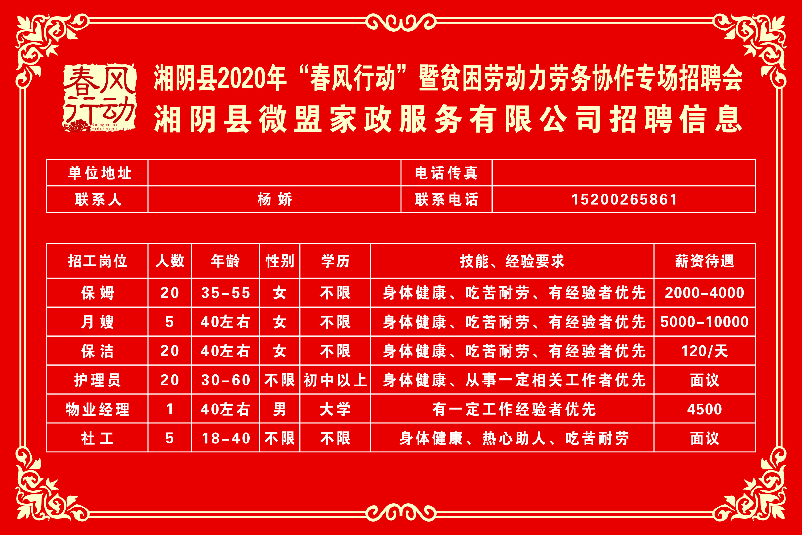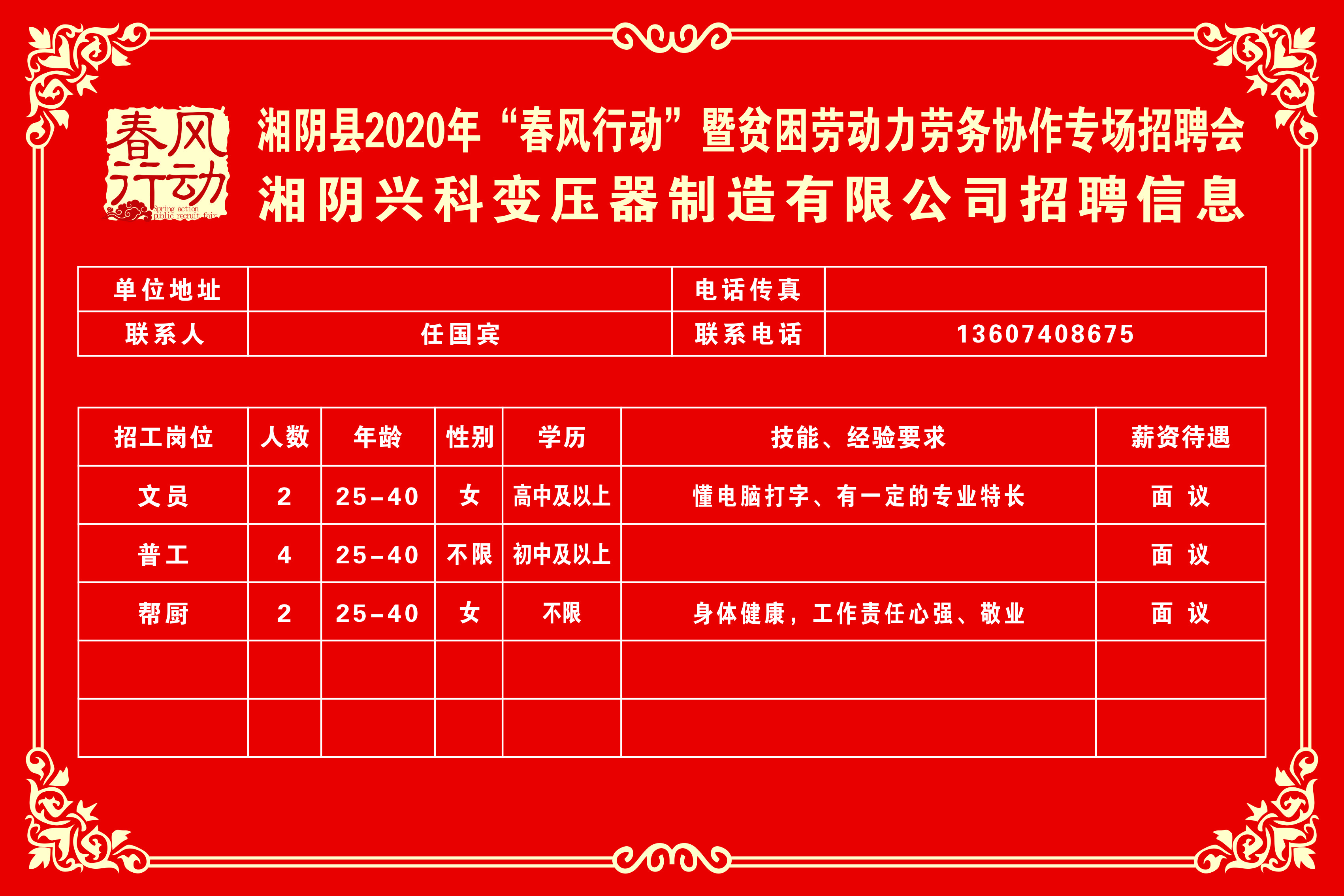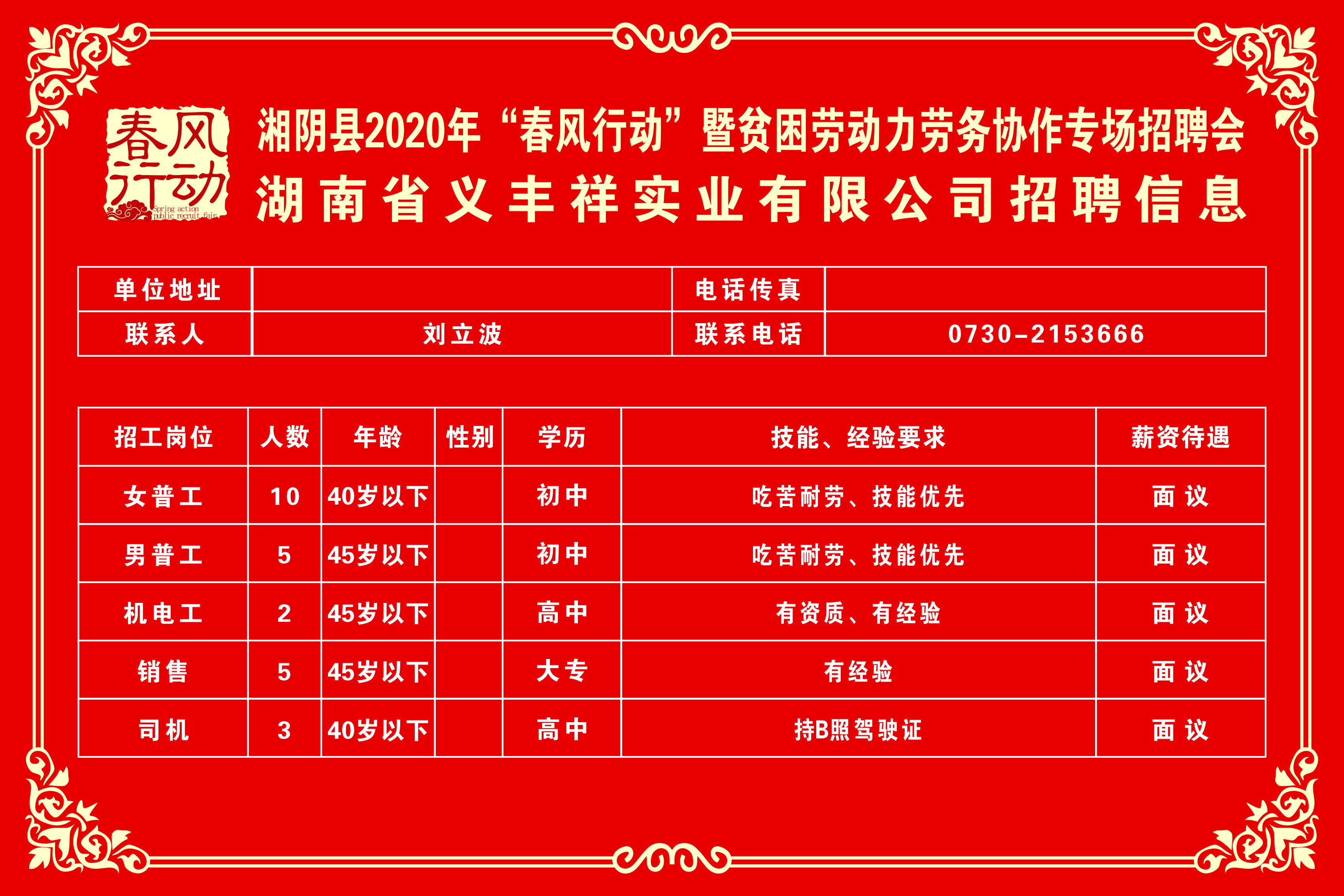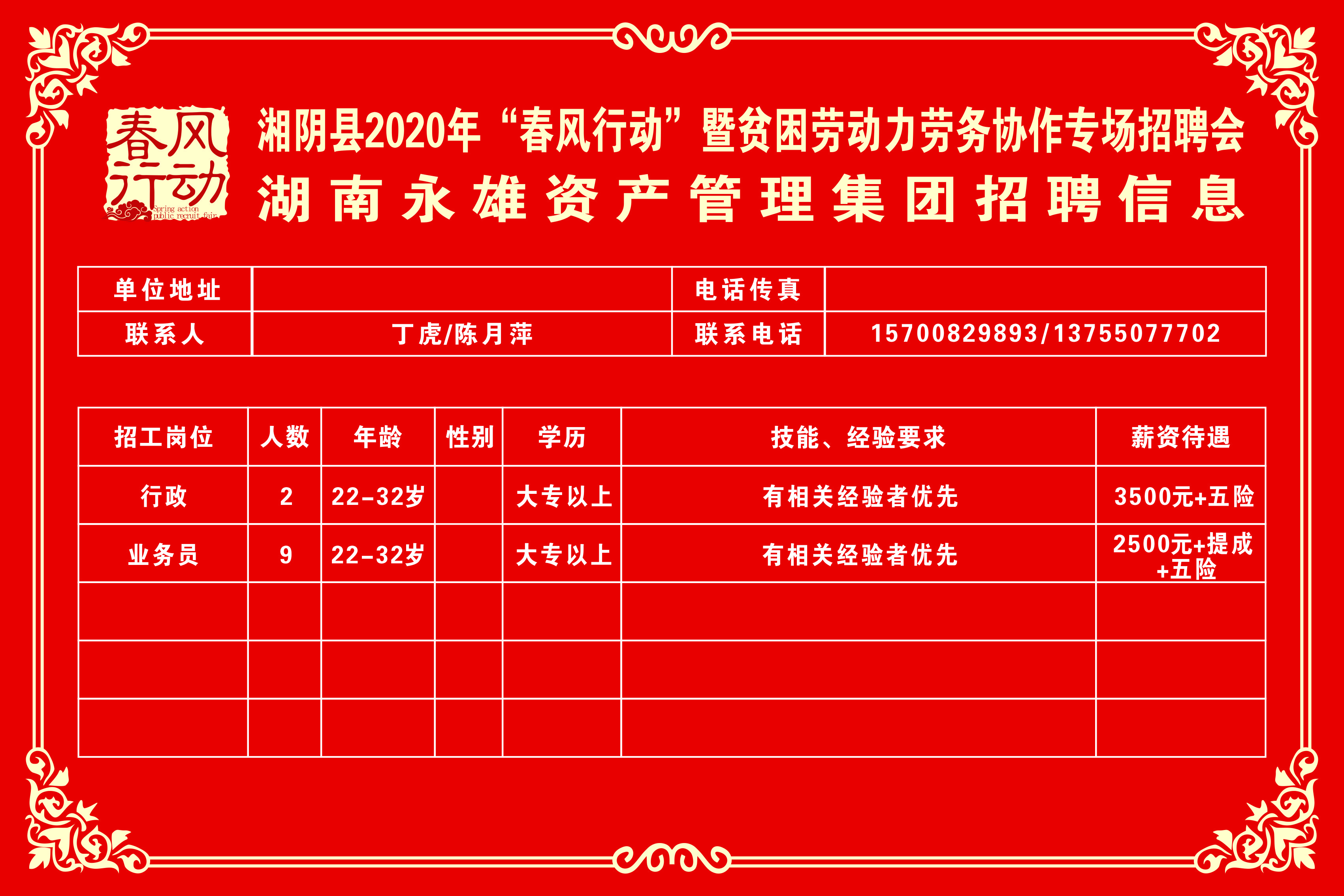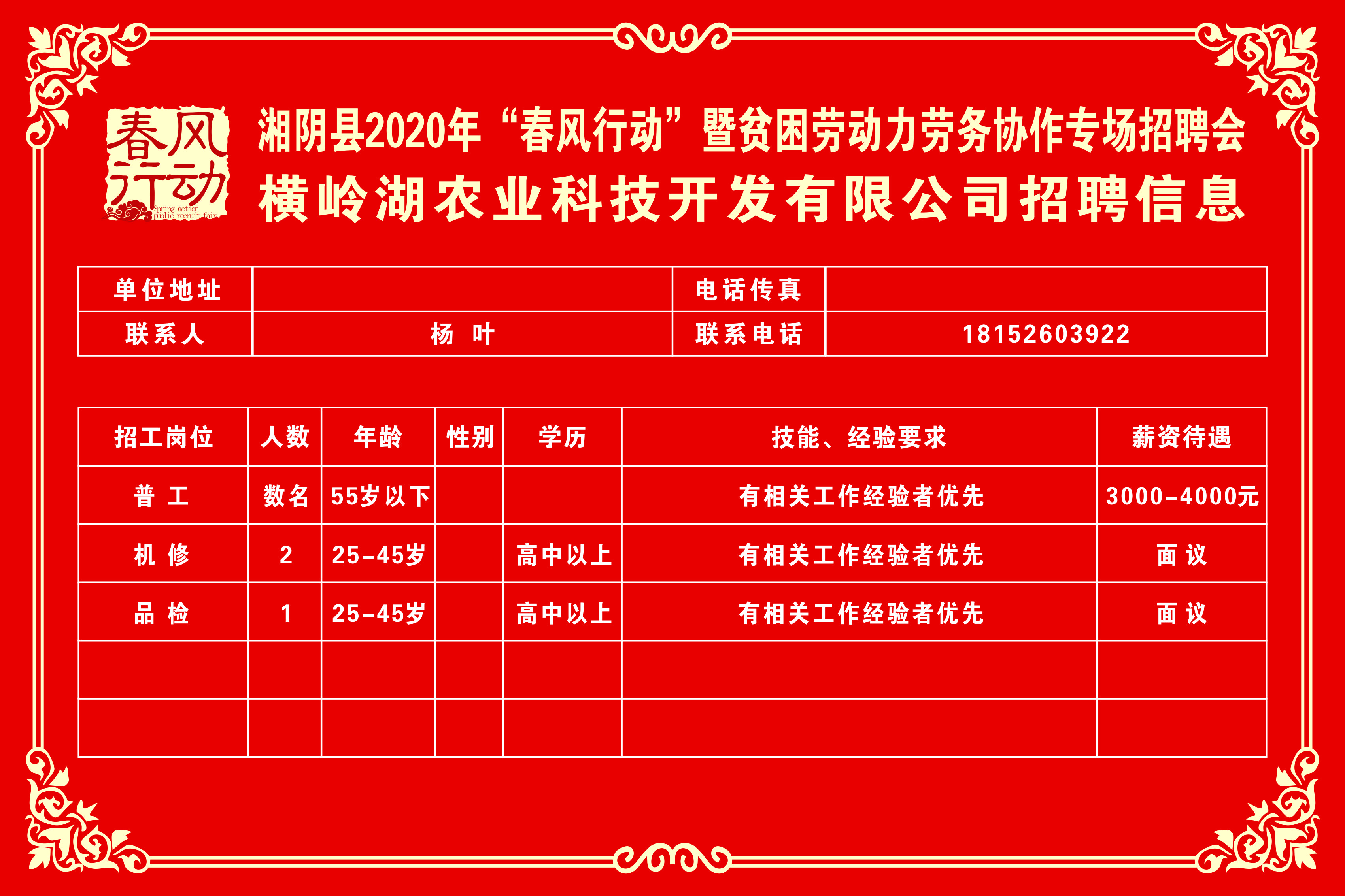 湘阴县2020年“春风行动”暨贫困劳动力劳务协作专场招聘会第三批