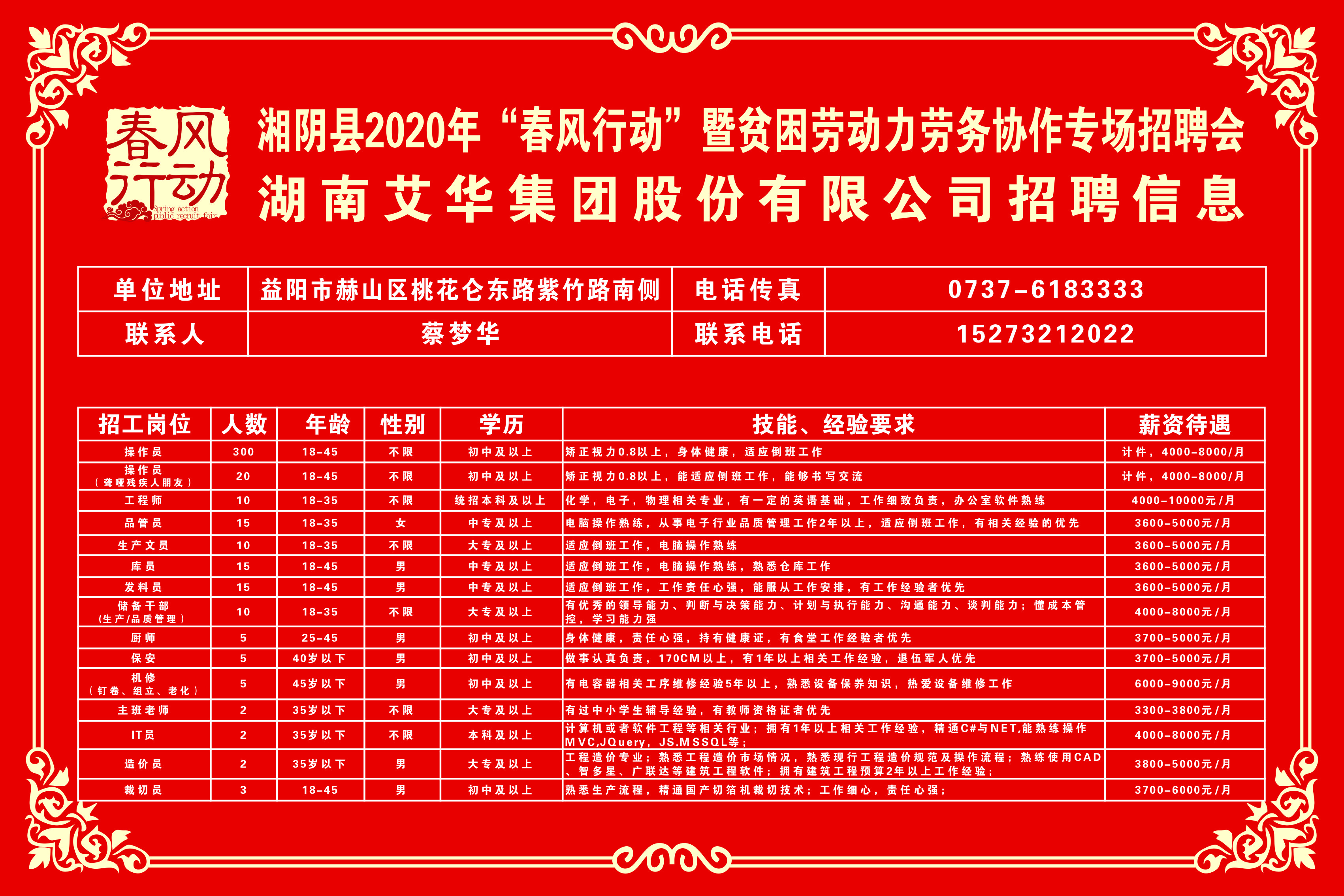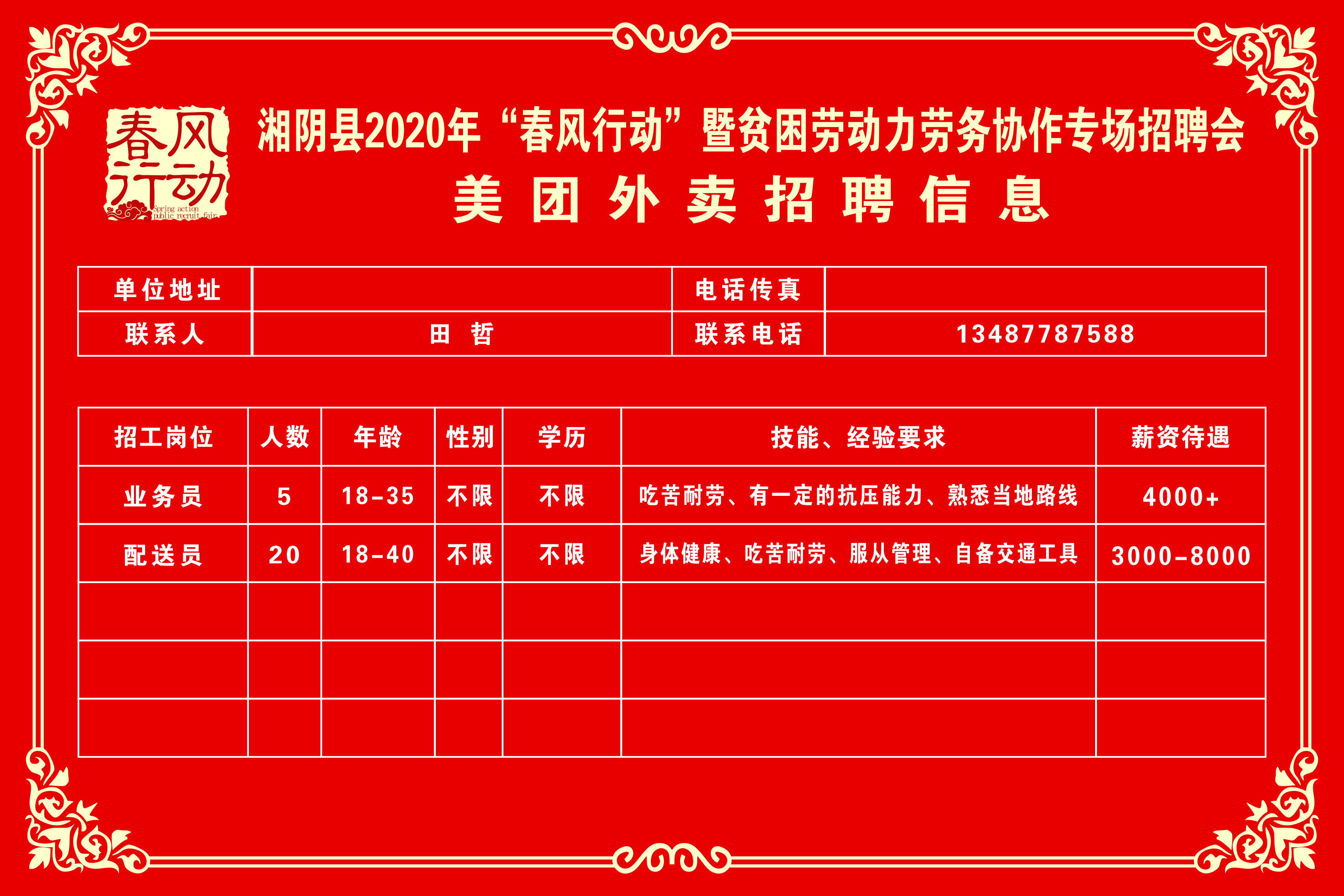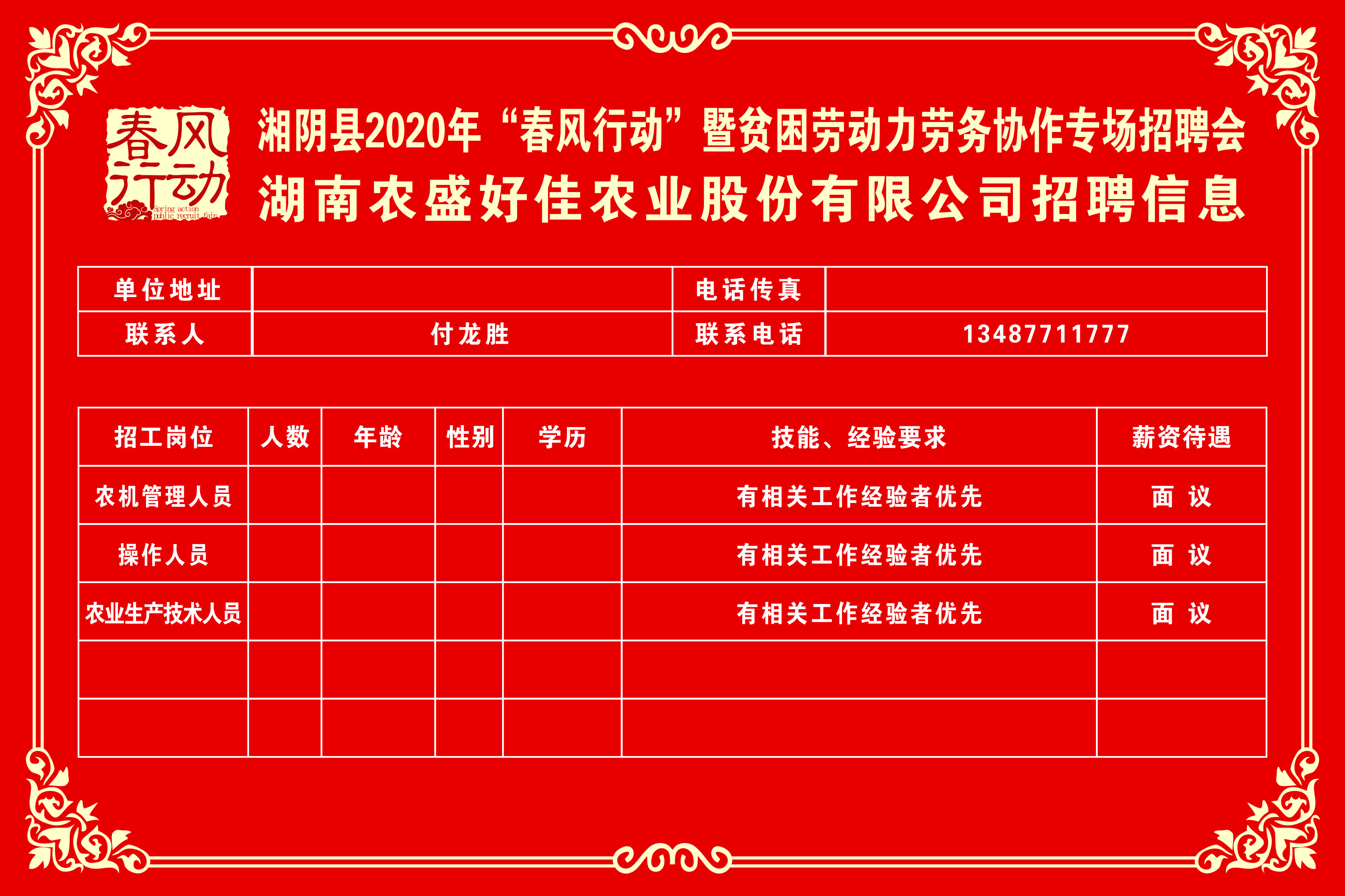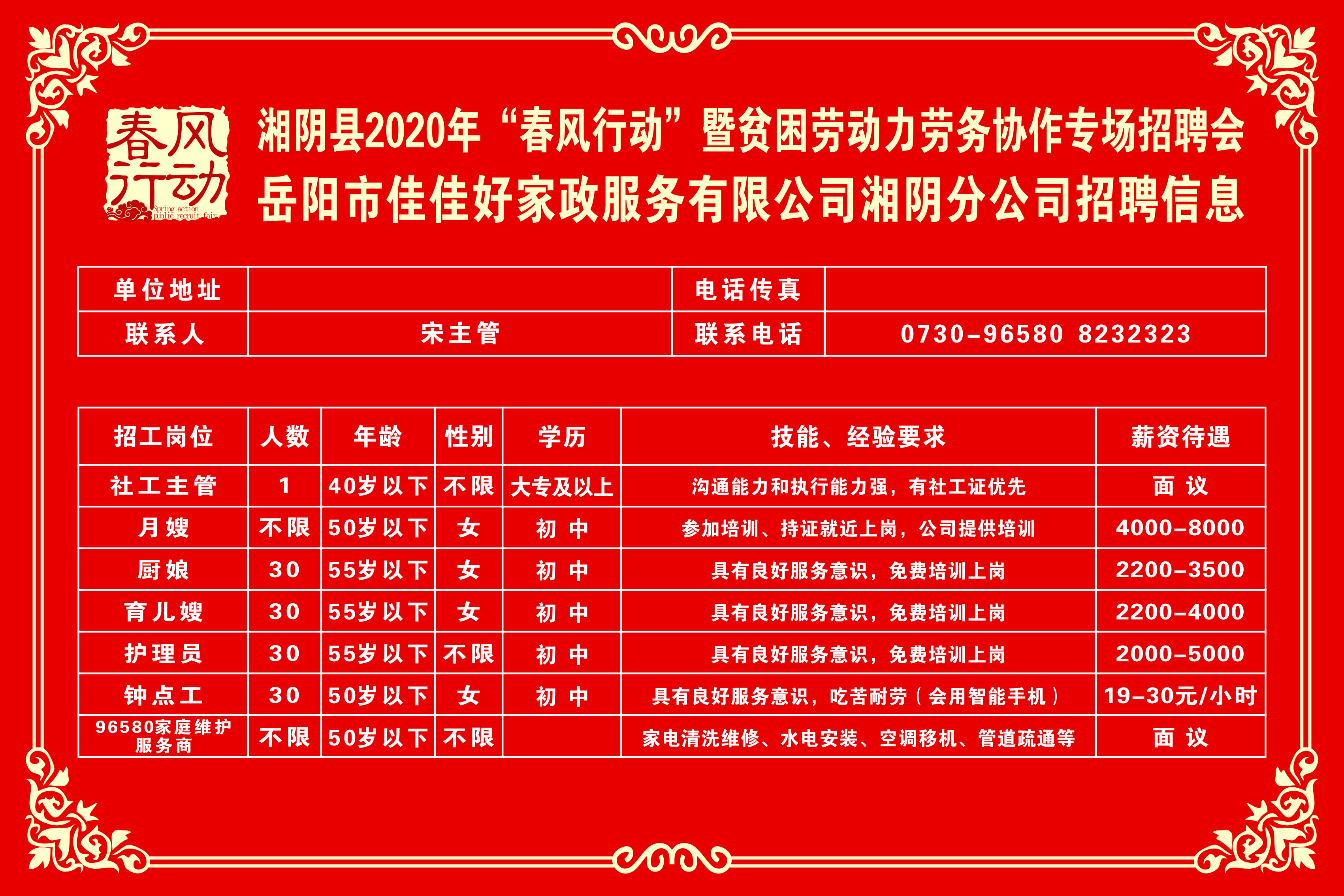 湘阴县2020年“春风行动”暨贫困劳动力劳务协作专场招聘会第三批