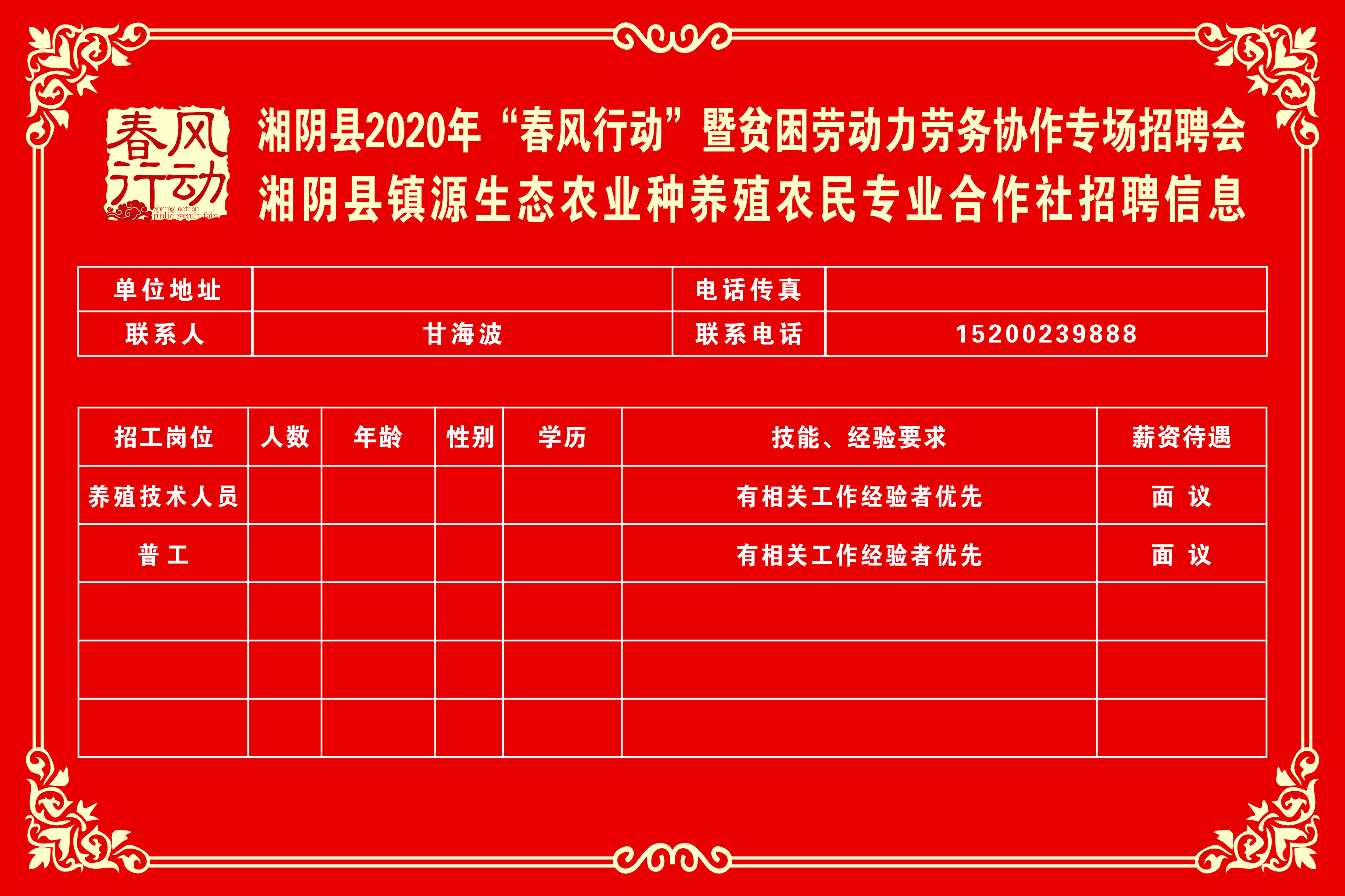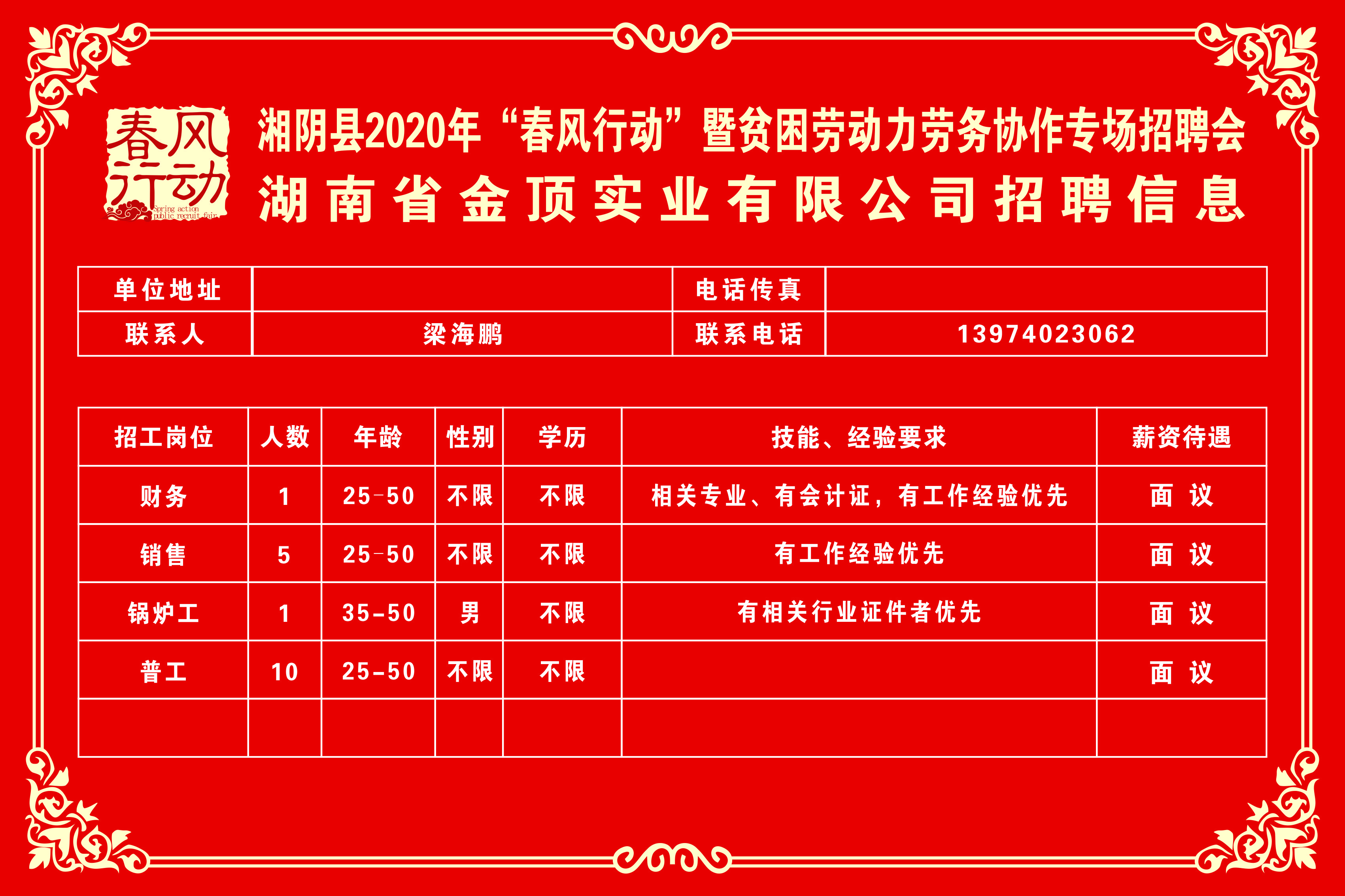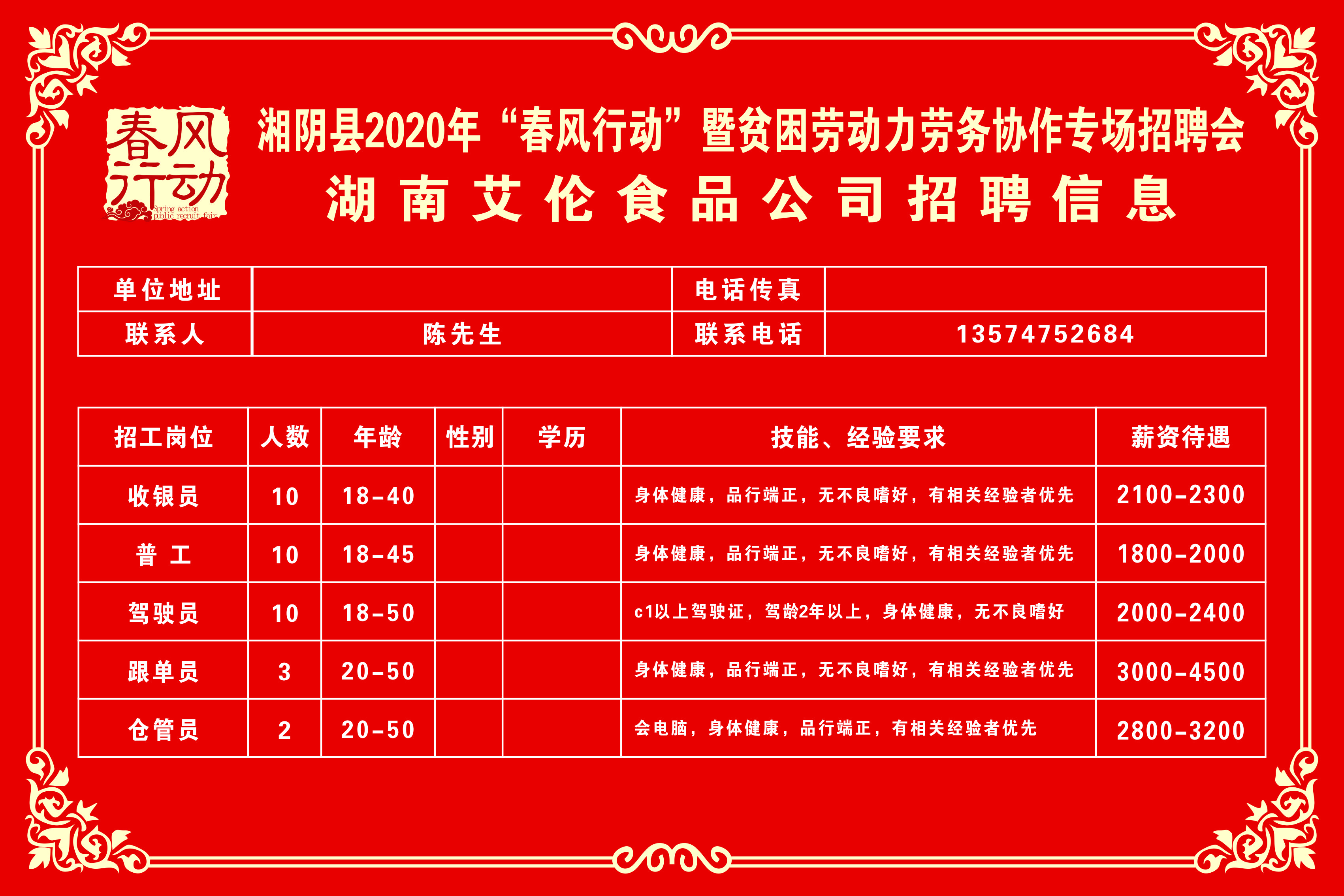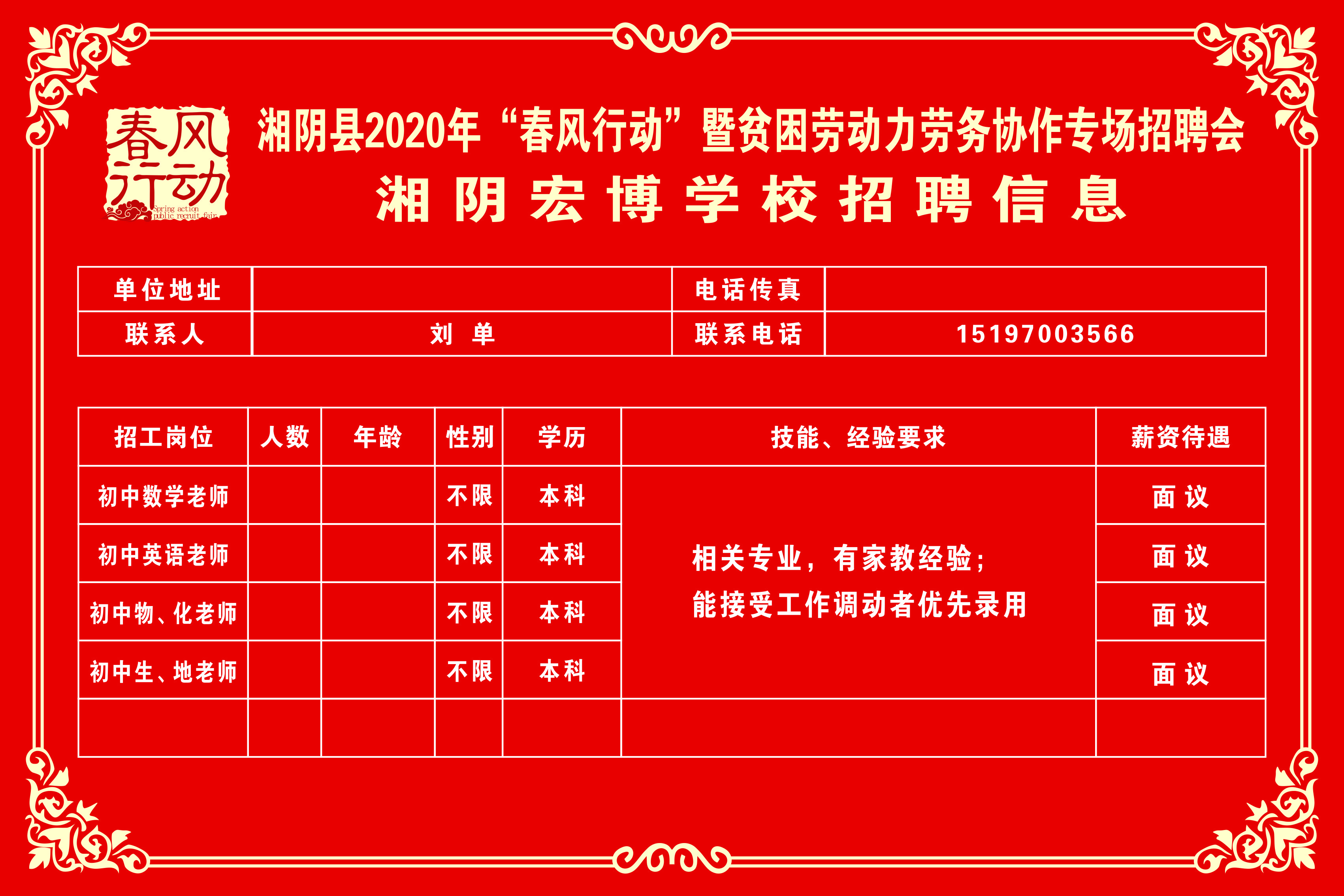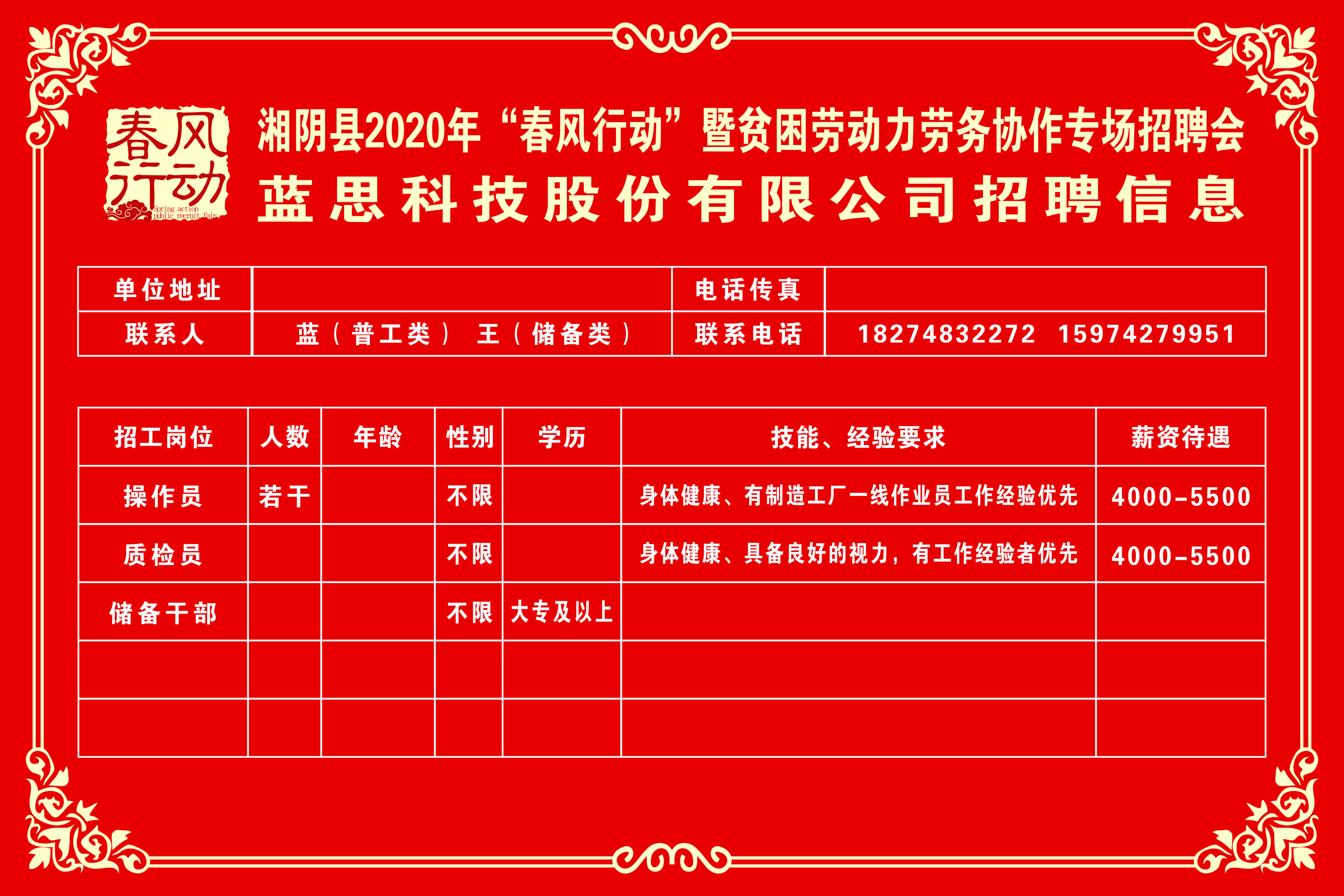 湘阴县2020年“春风行动”暨贫困劳动力劳务协作专场招聘会第三批