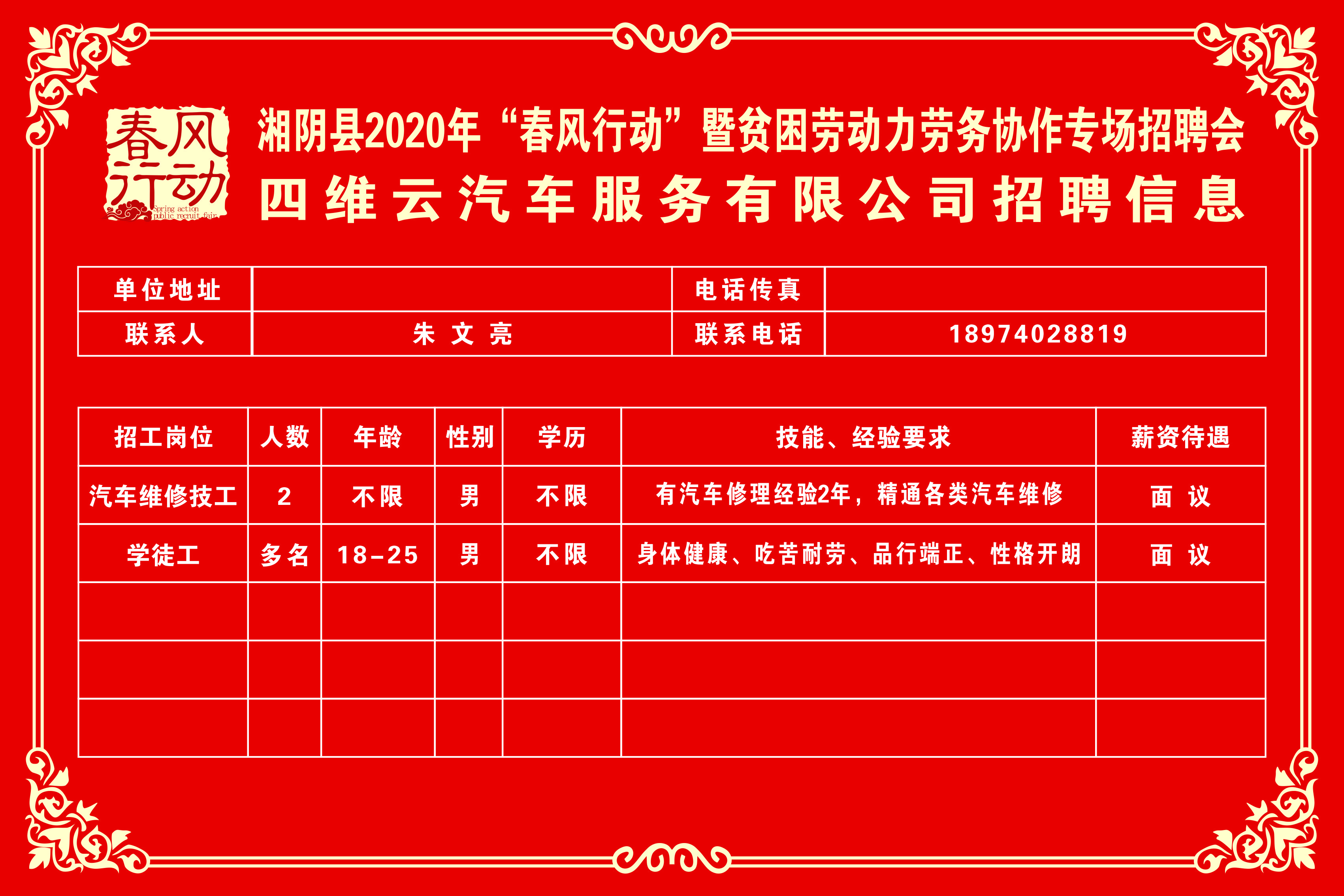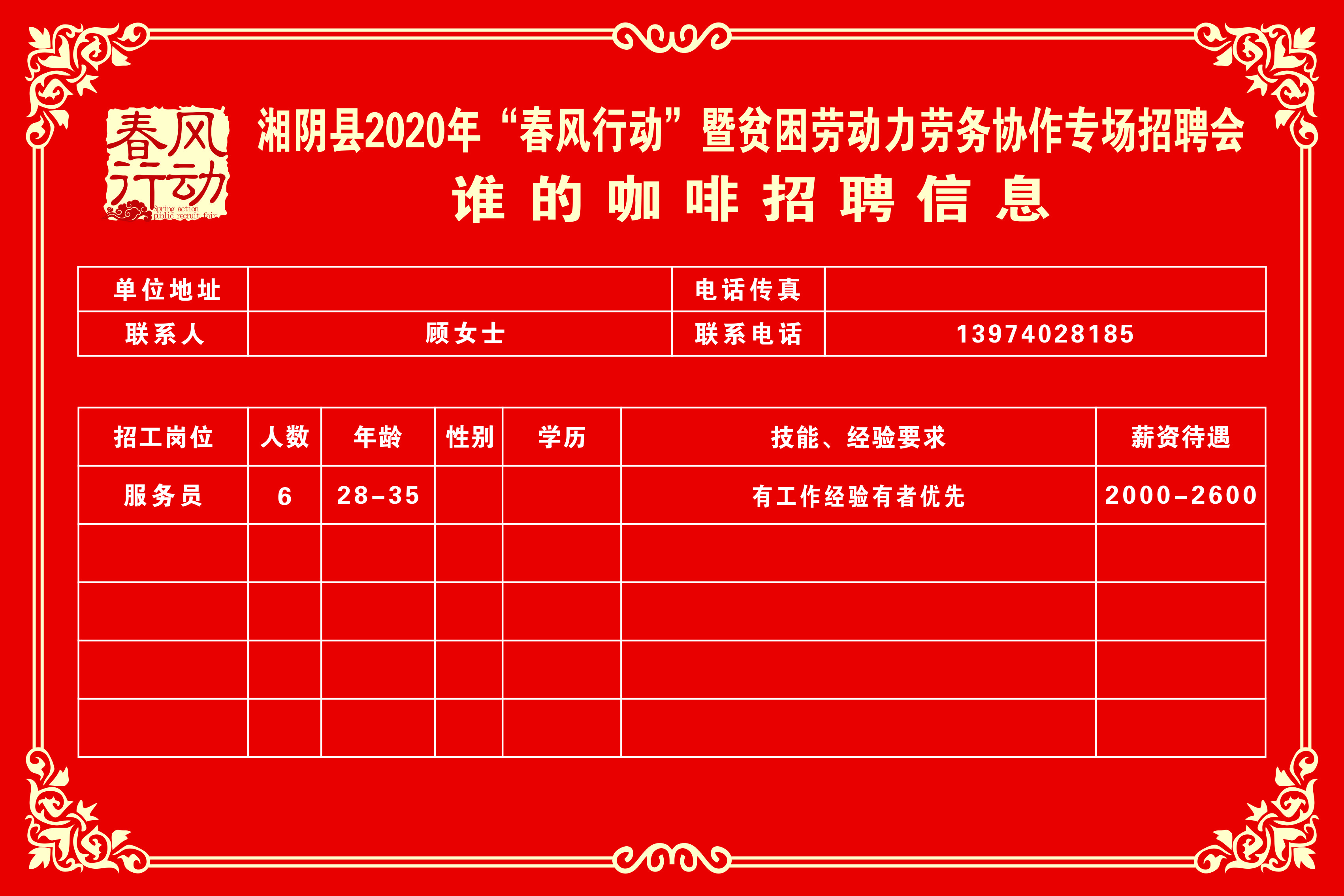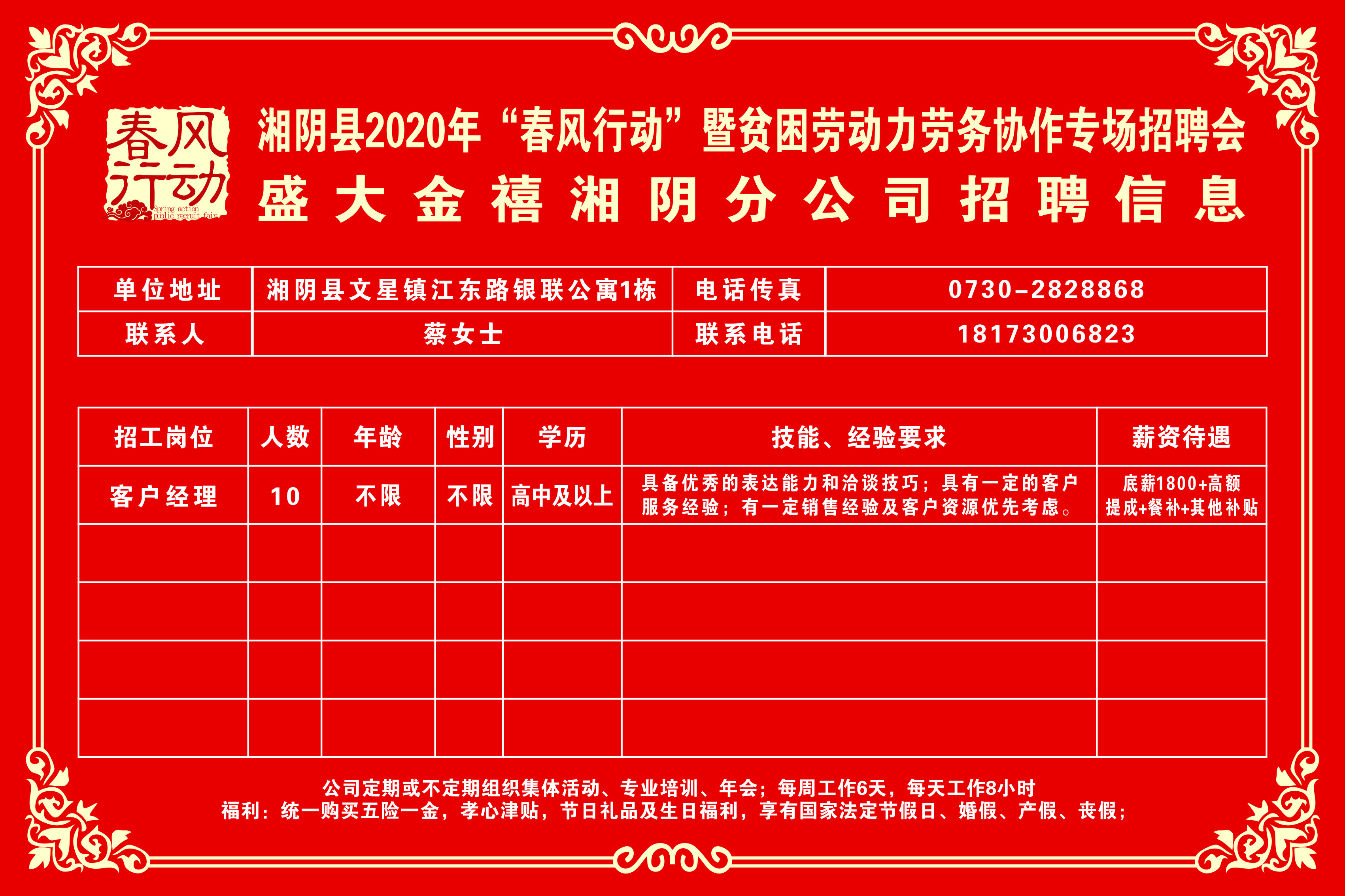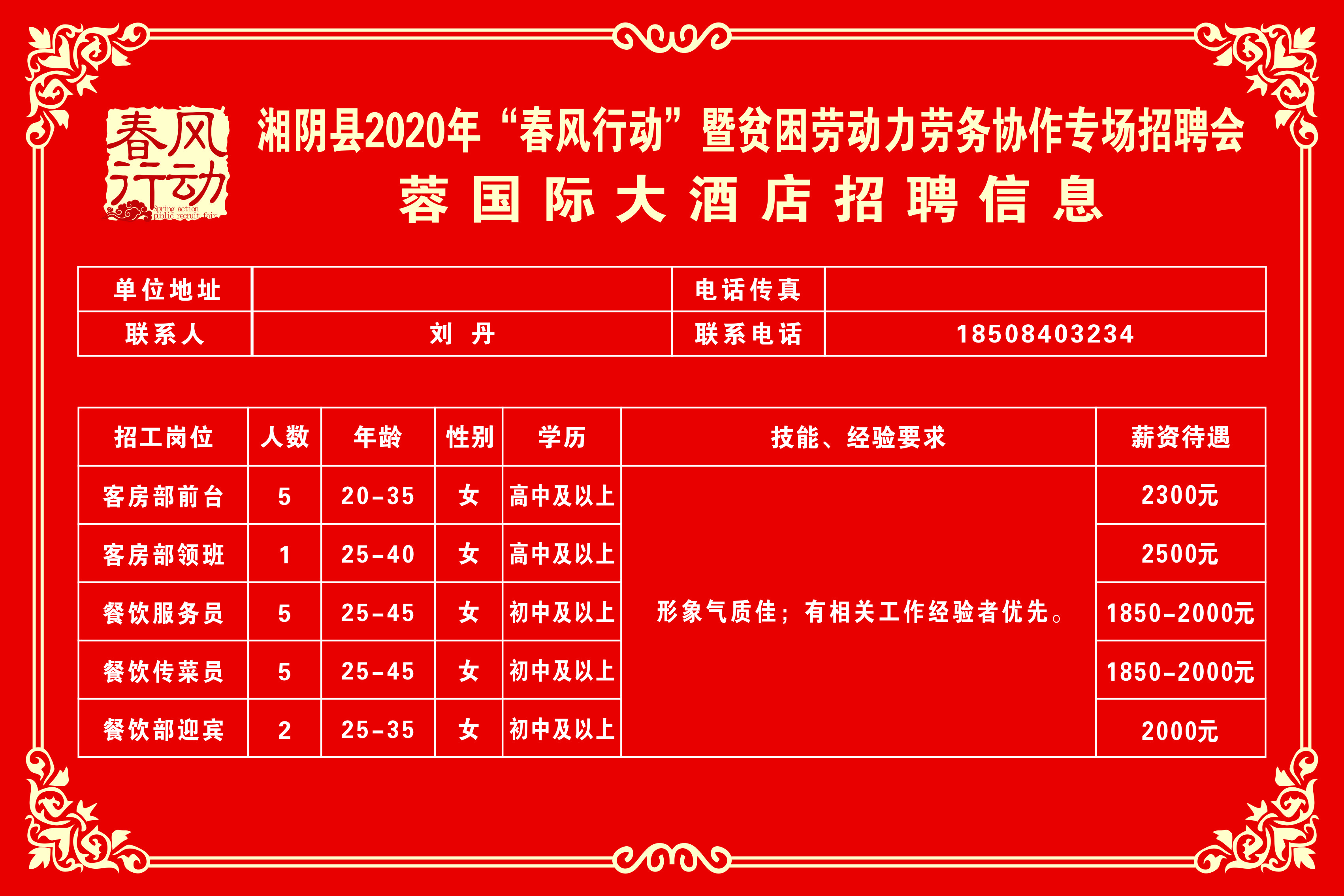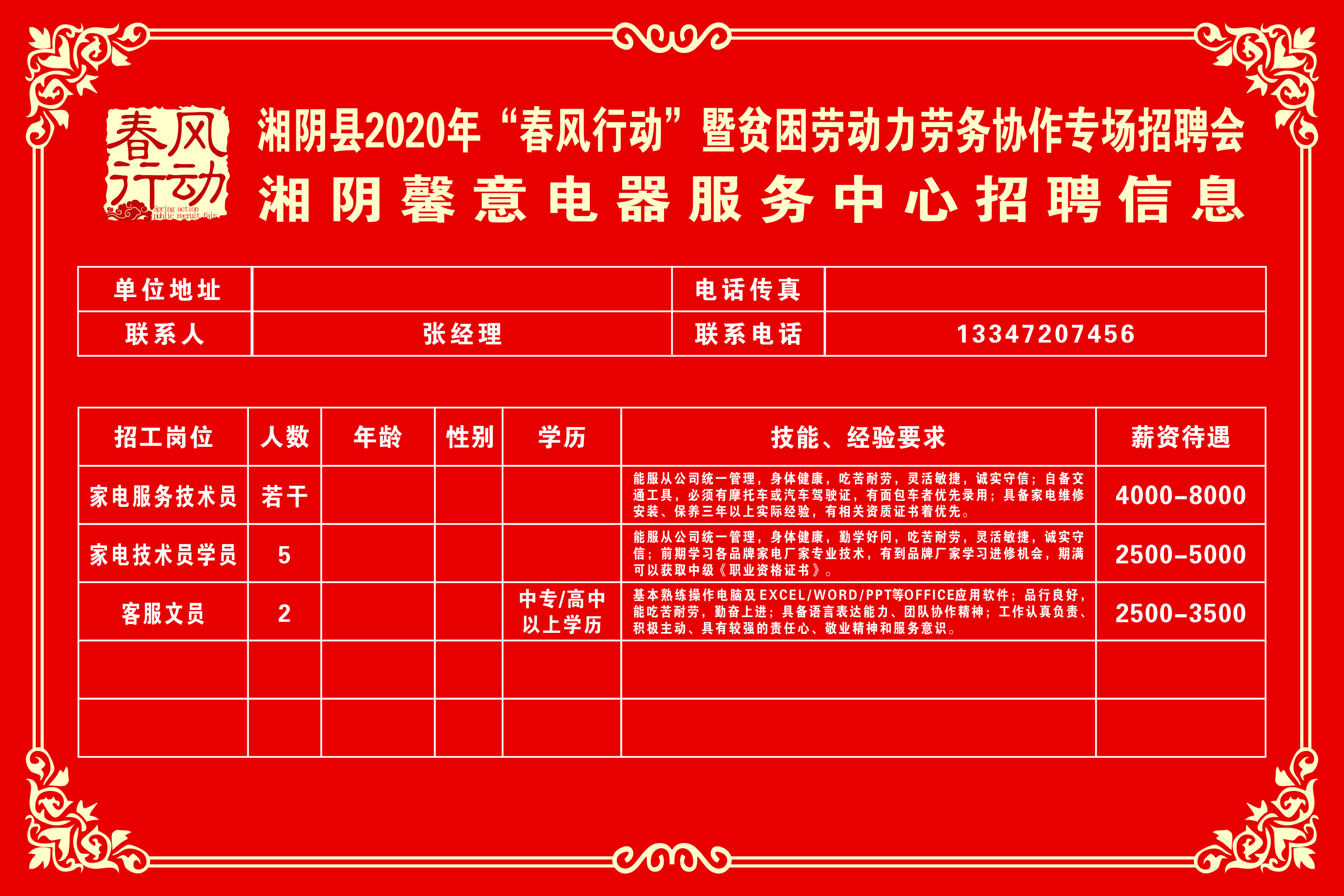 湘阴县2020年“春风行动”暨贫困劳动力劳务协作专场招聘会第三批
