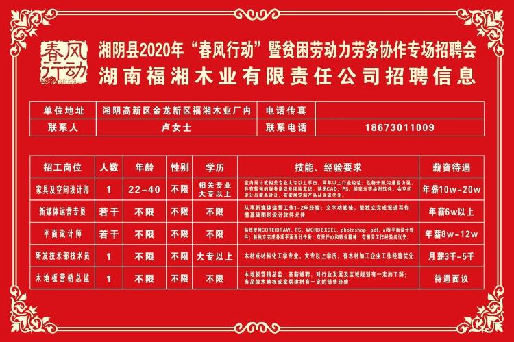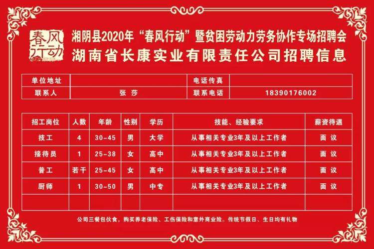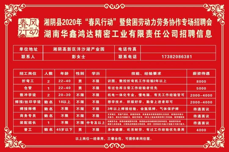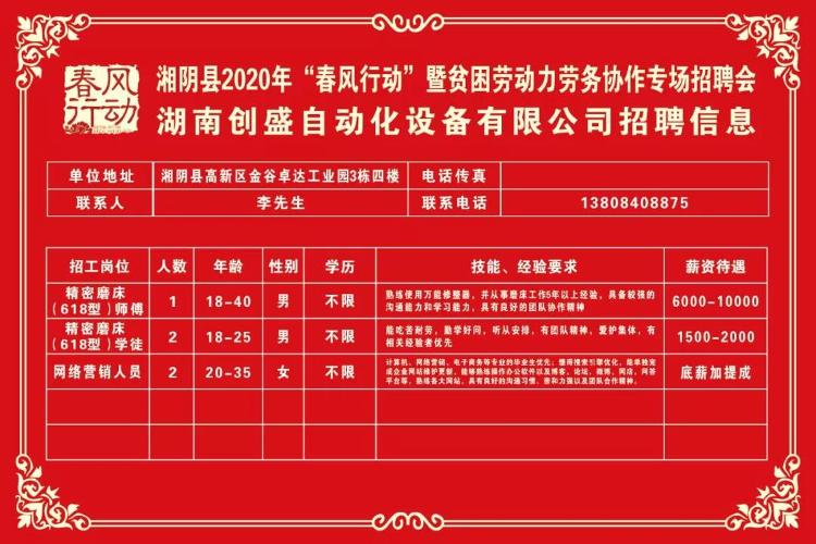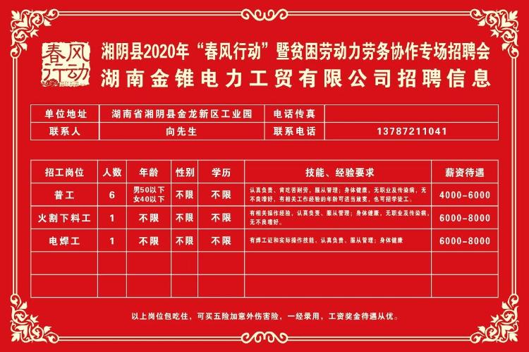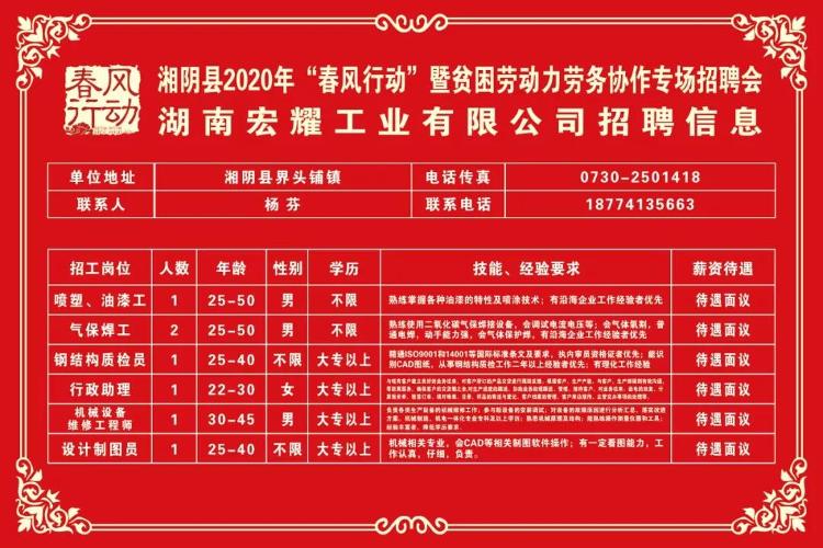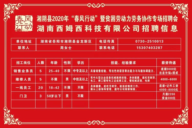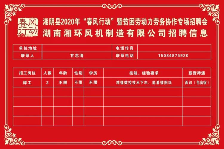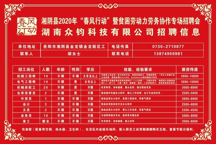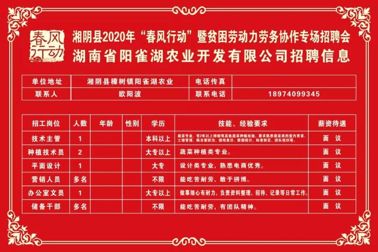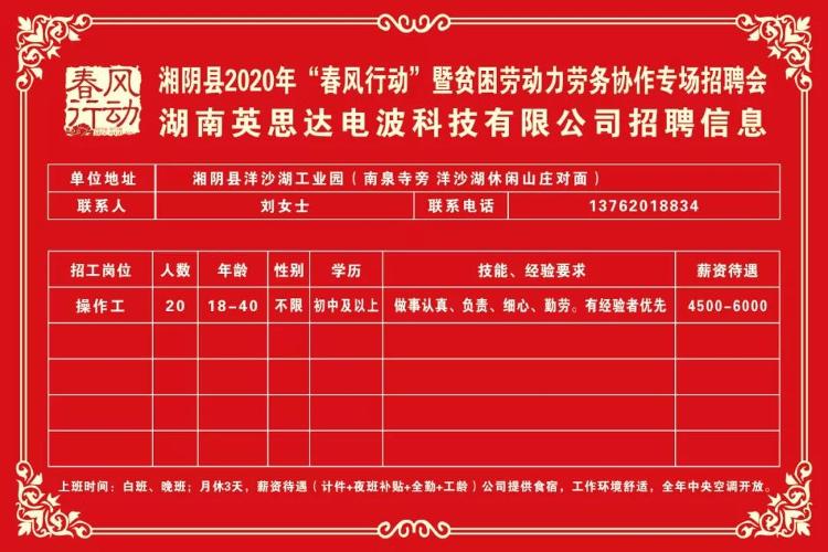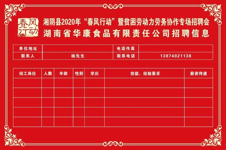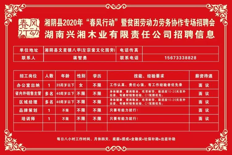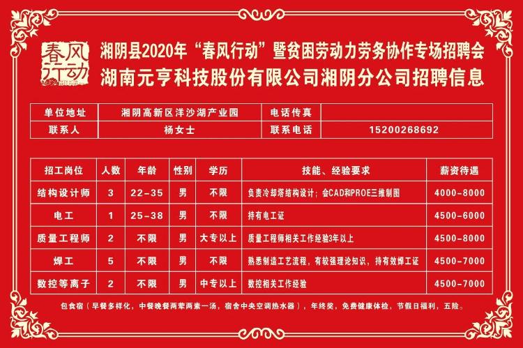 湘阴县2020年“春风行动”网络招聘会岗位发布(一)