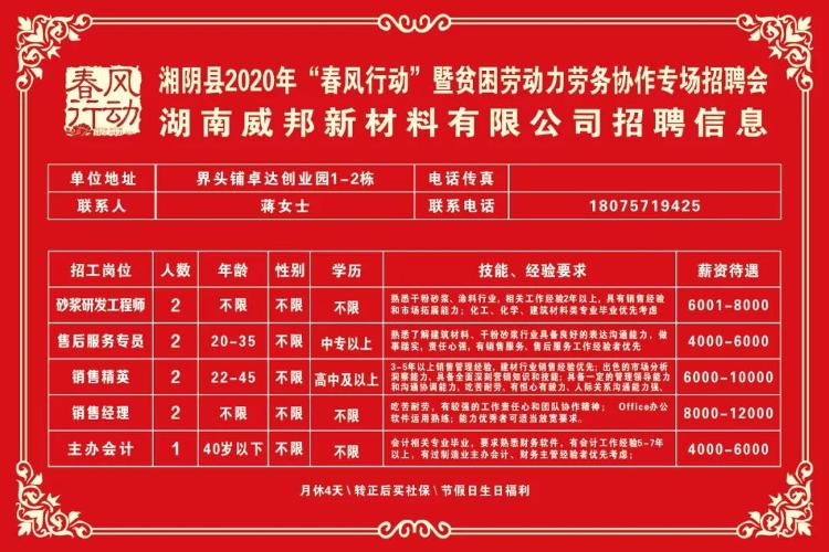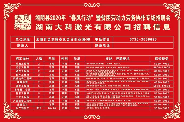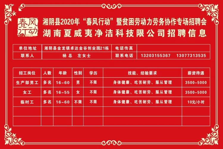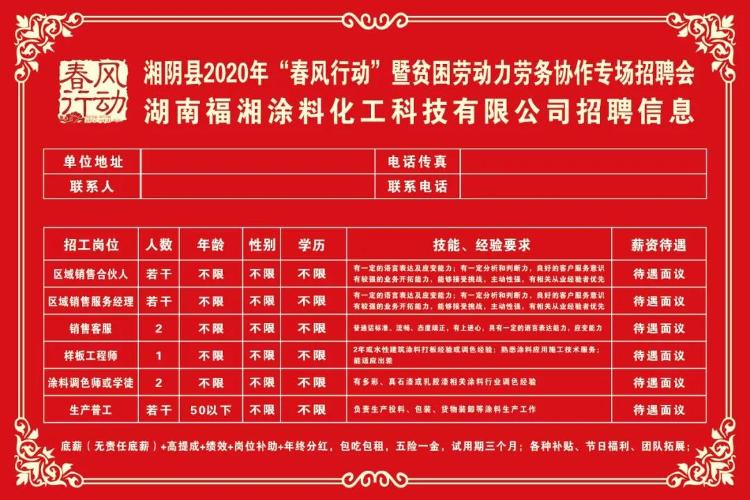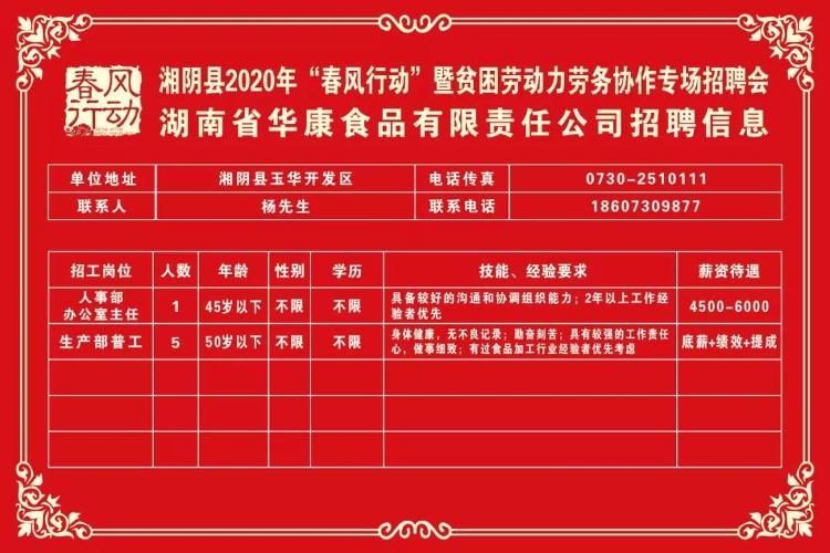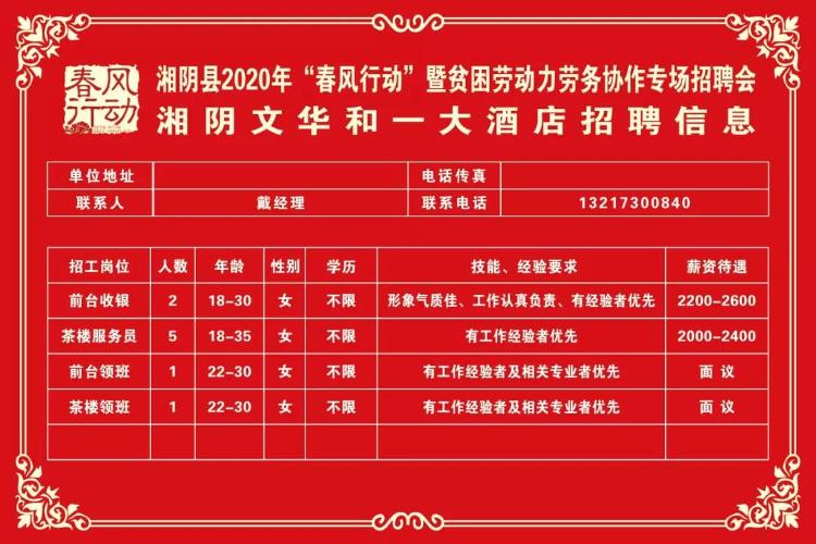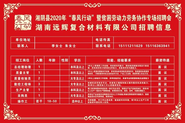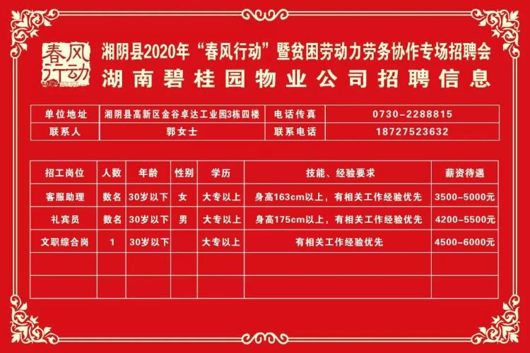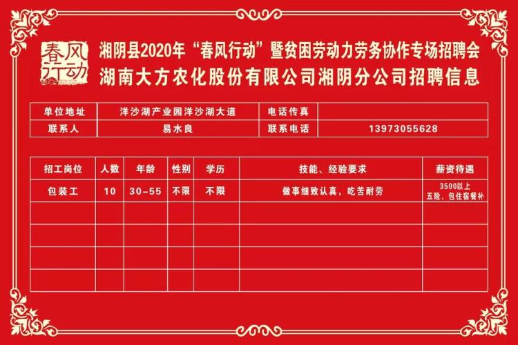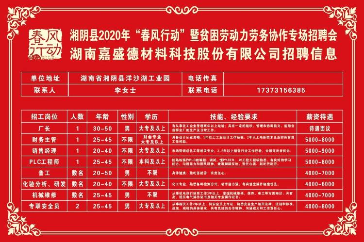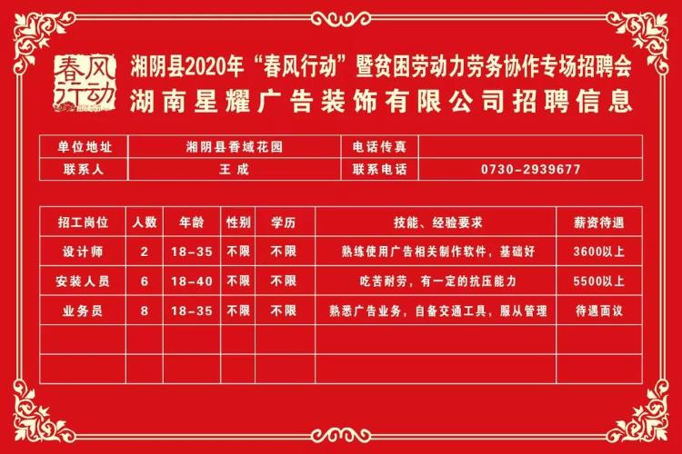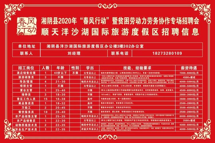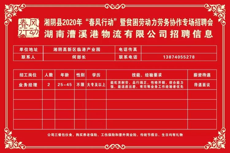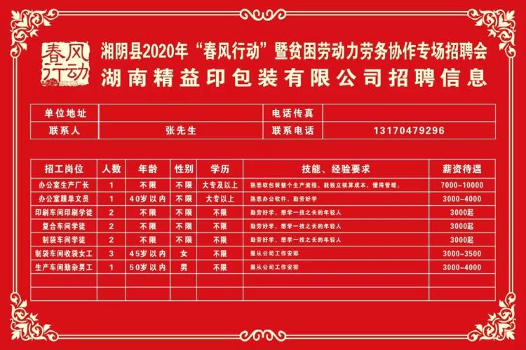 湘阴县2020年“春风行动”网络招聘会岗位发布(一)