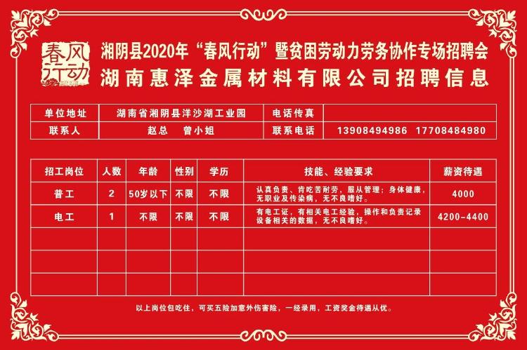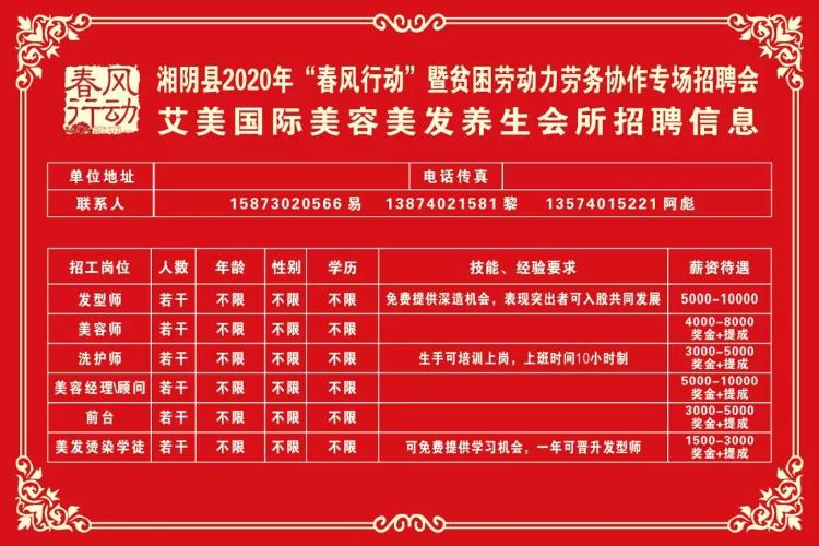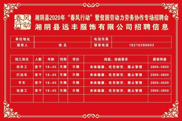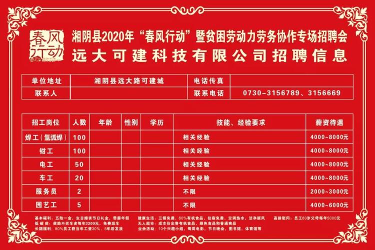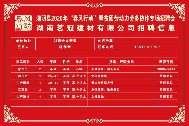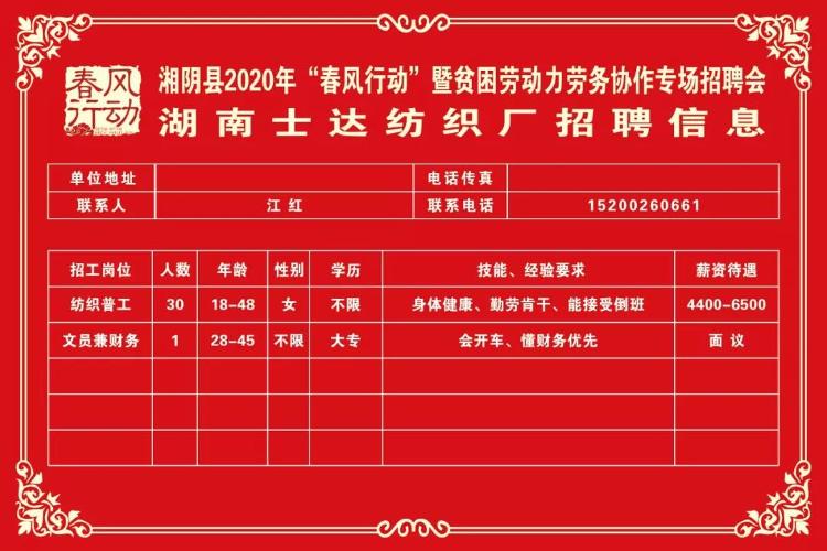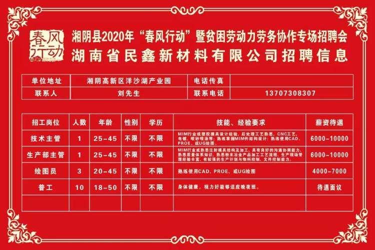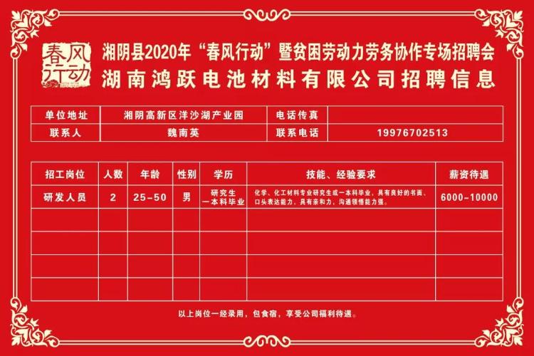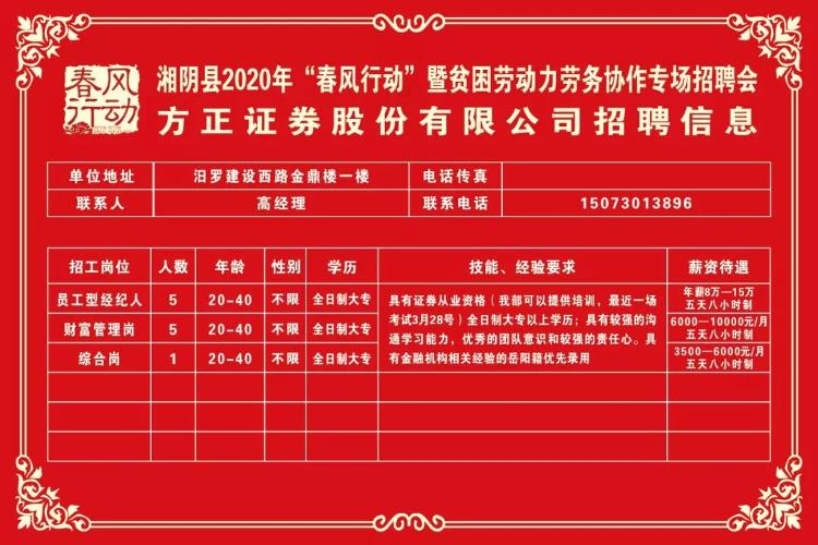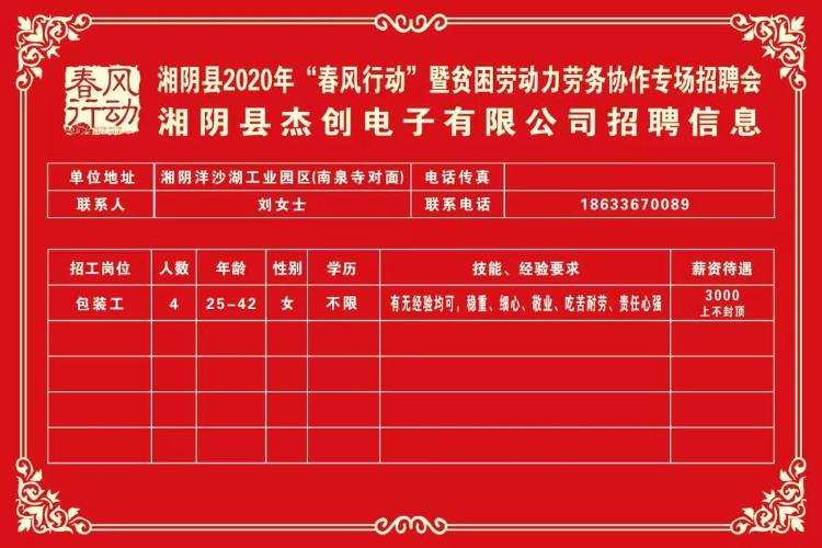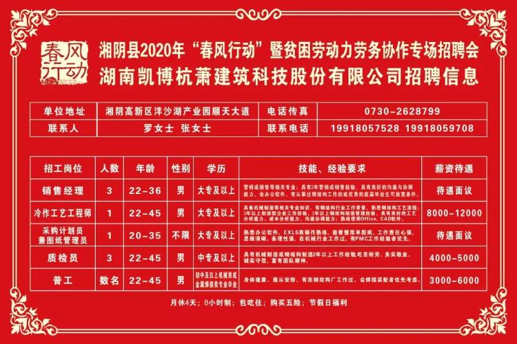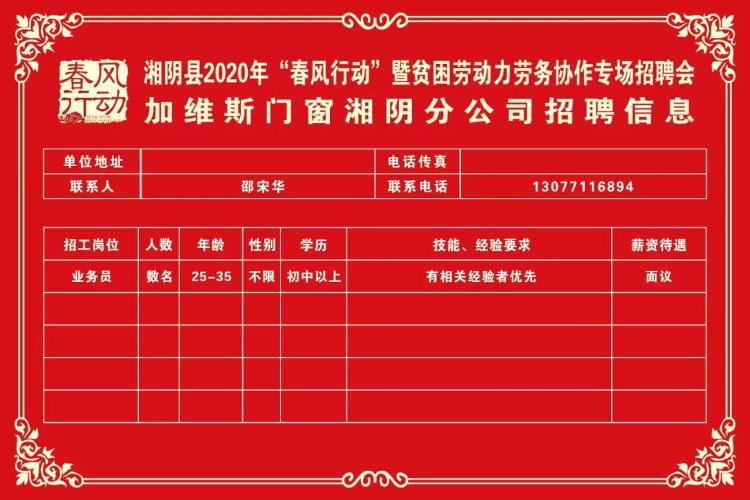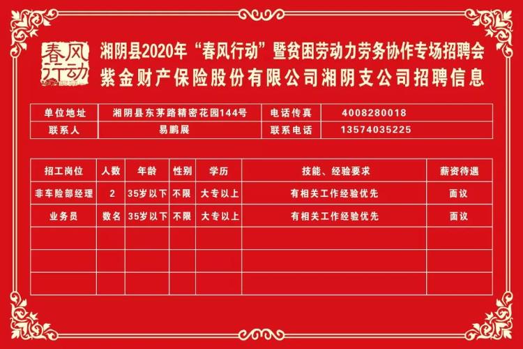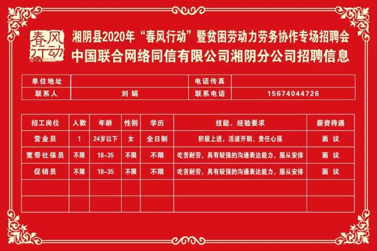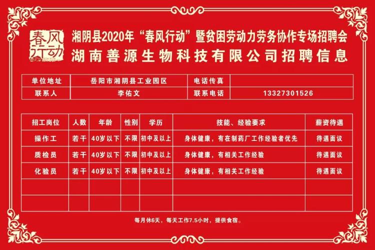 湘阴县2020年“春风行动”网络招聘会岗位发布(一)