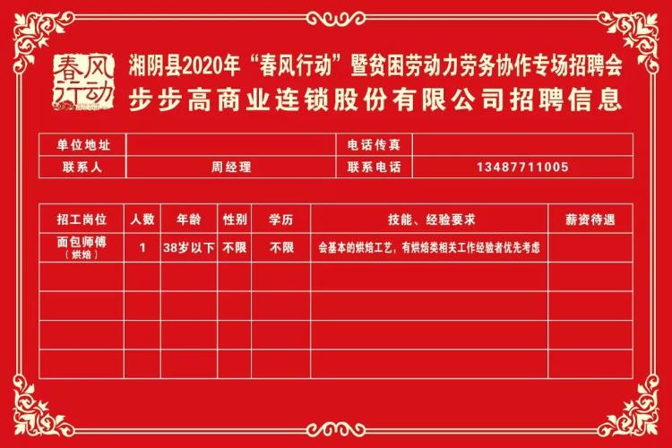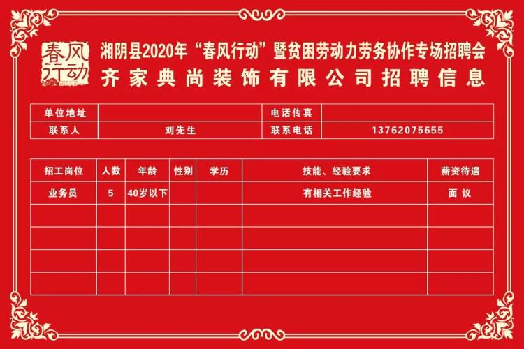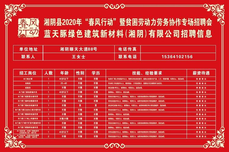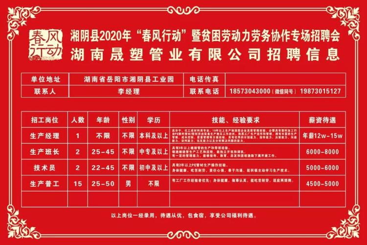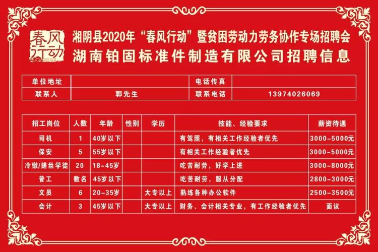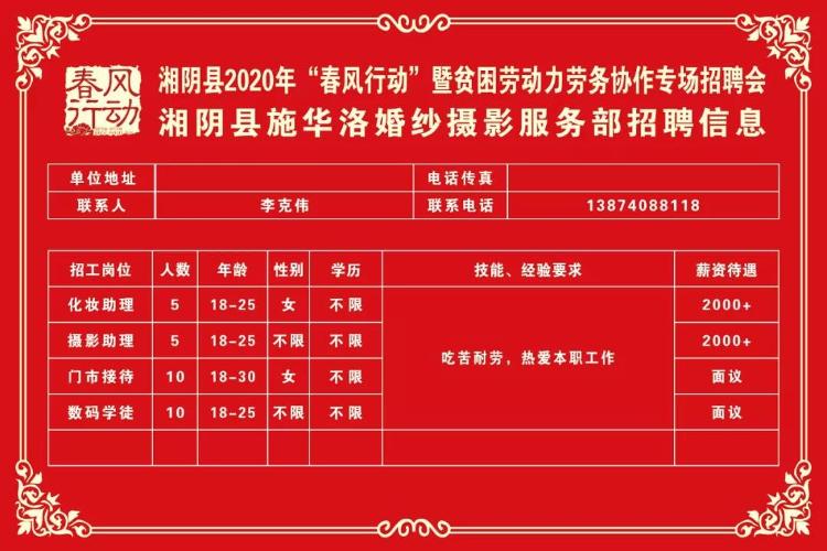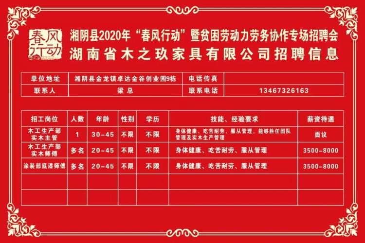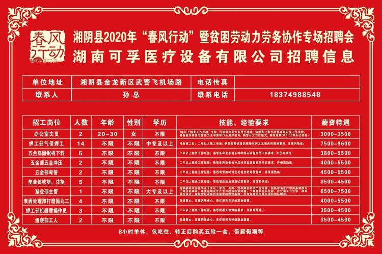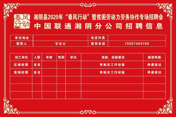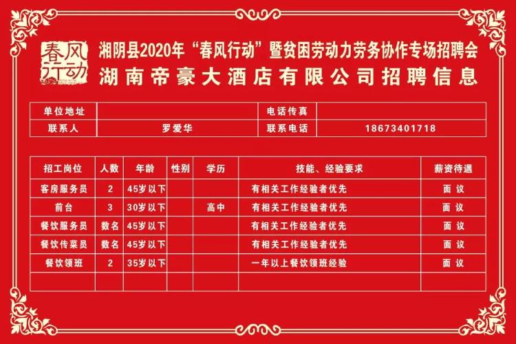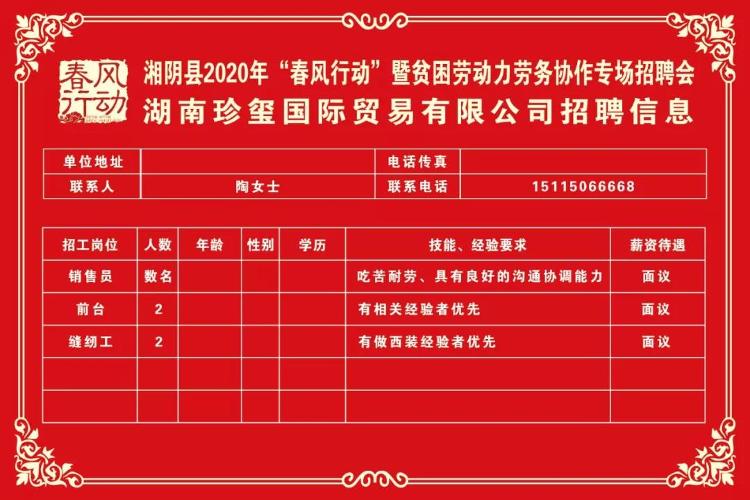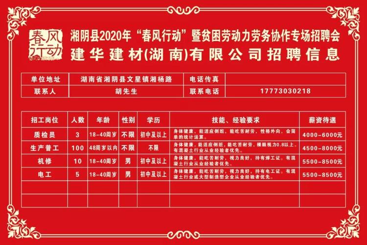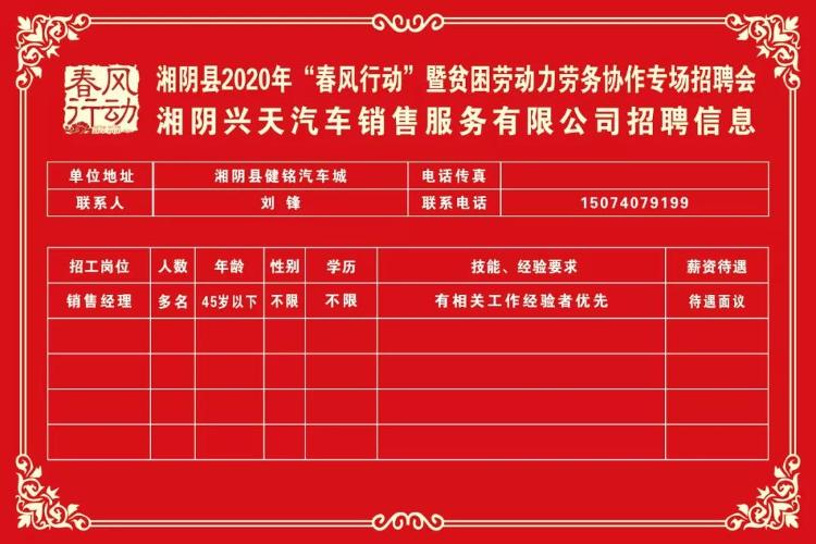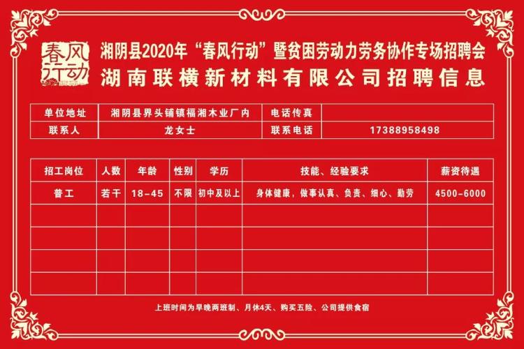 湘阴县2020年“春风行动”网络招聘会岗位发布(一)