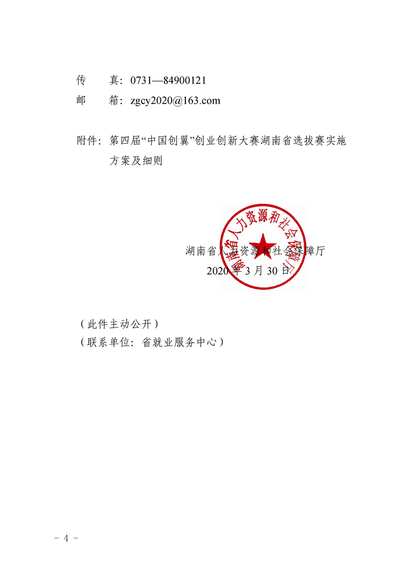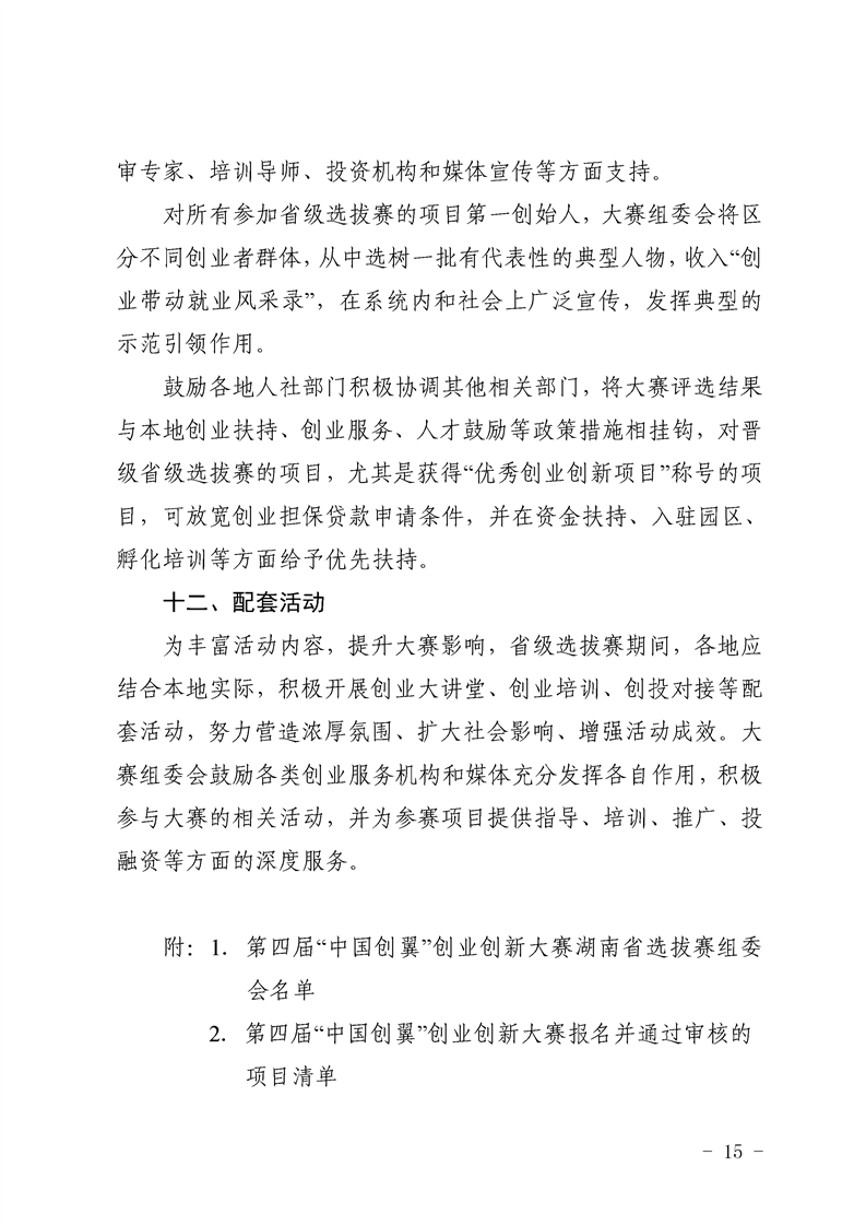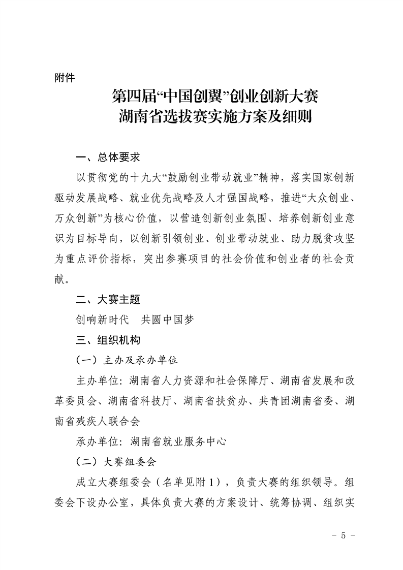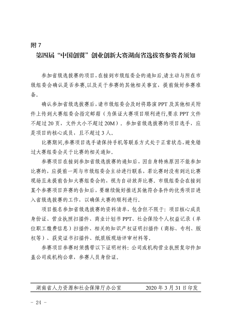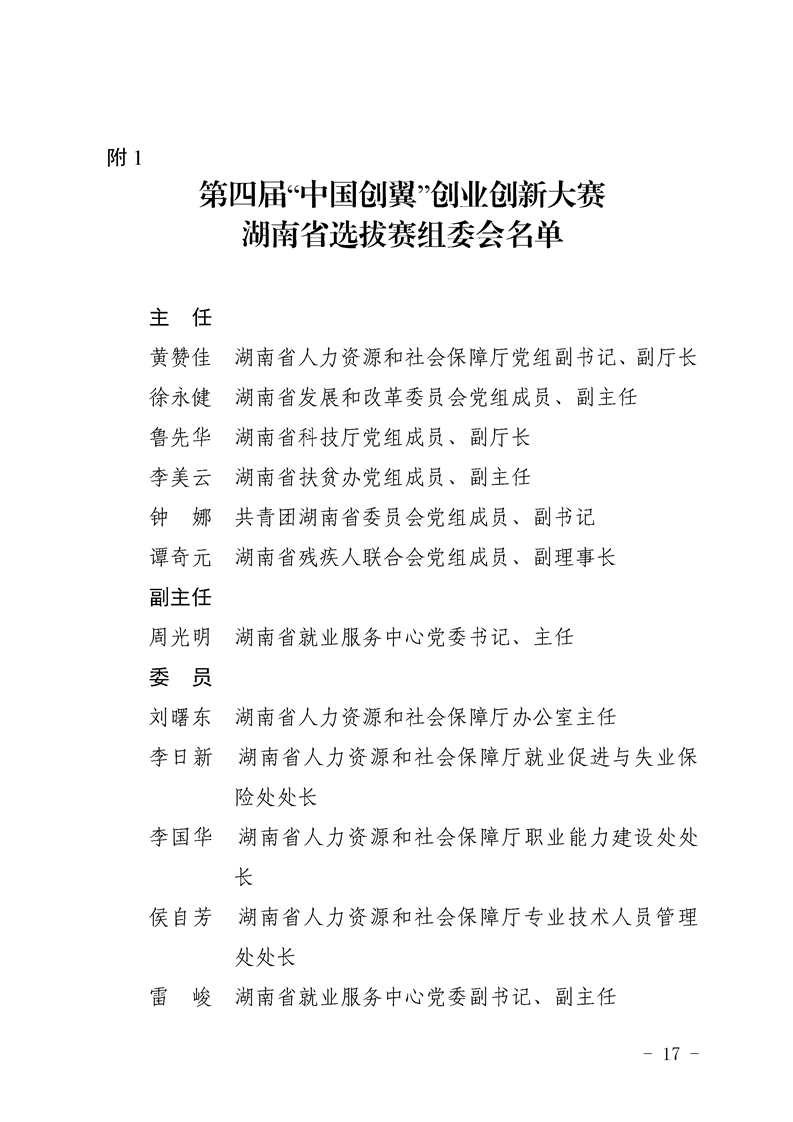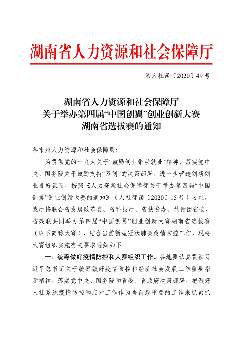 湖南省人力资源和社会保障厅 关于举办第四届“中国创翼”创业创新大赛 湖南省选拔赛的通知