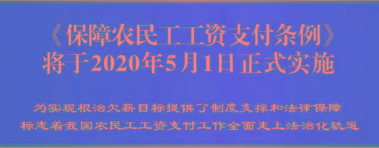 2020年1月《保障农民工工资支付条例》正式发布,2020年5月1日起施行。《条例》提出: