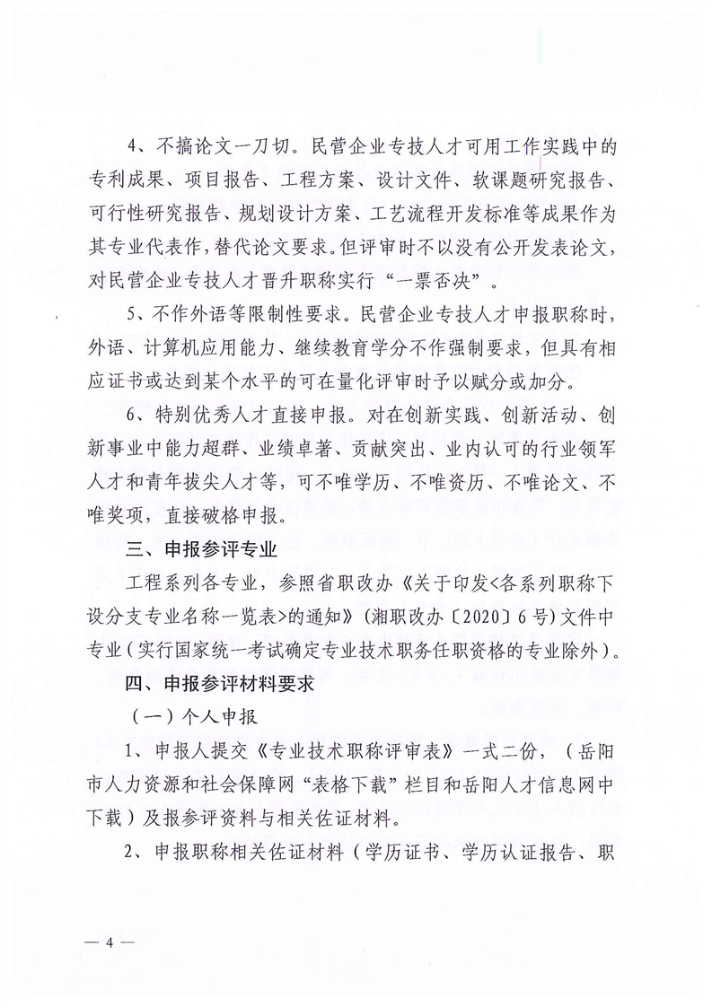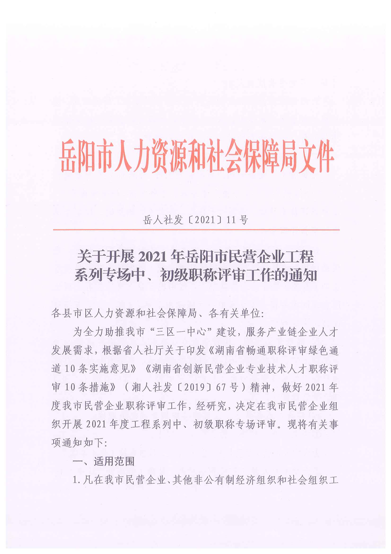 关于开展2021年岳阳市民营企业工程系列专场中、初级职称评审工作的通知