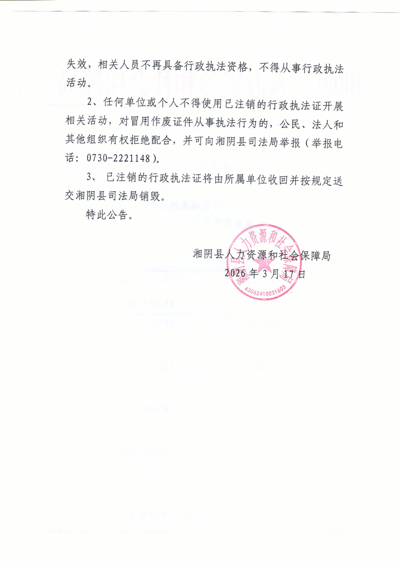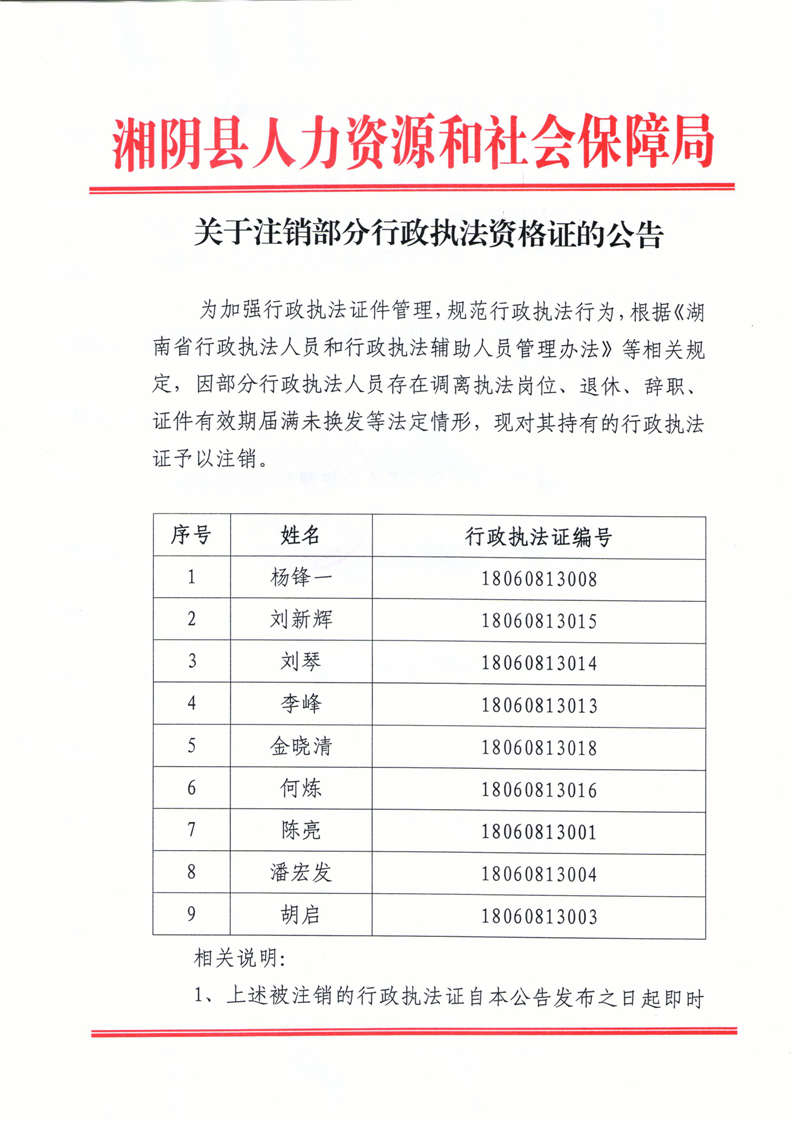 关于注销部分行政执法资格证的公告