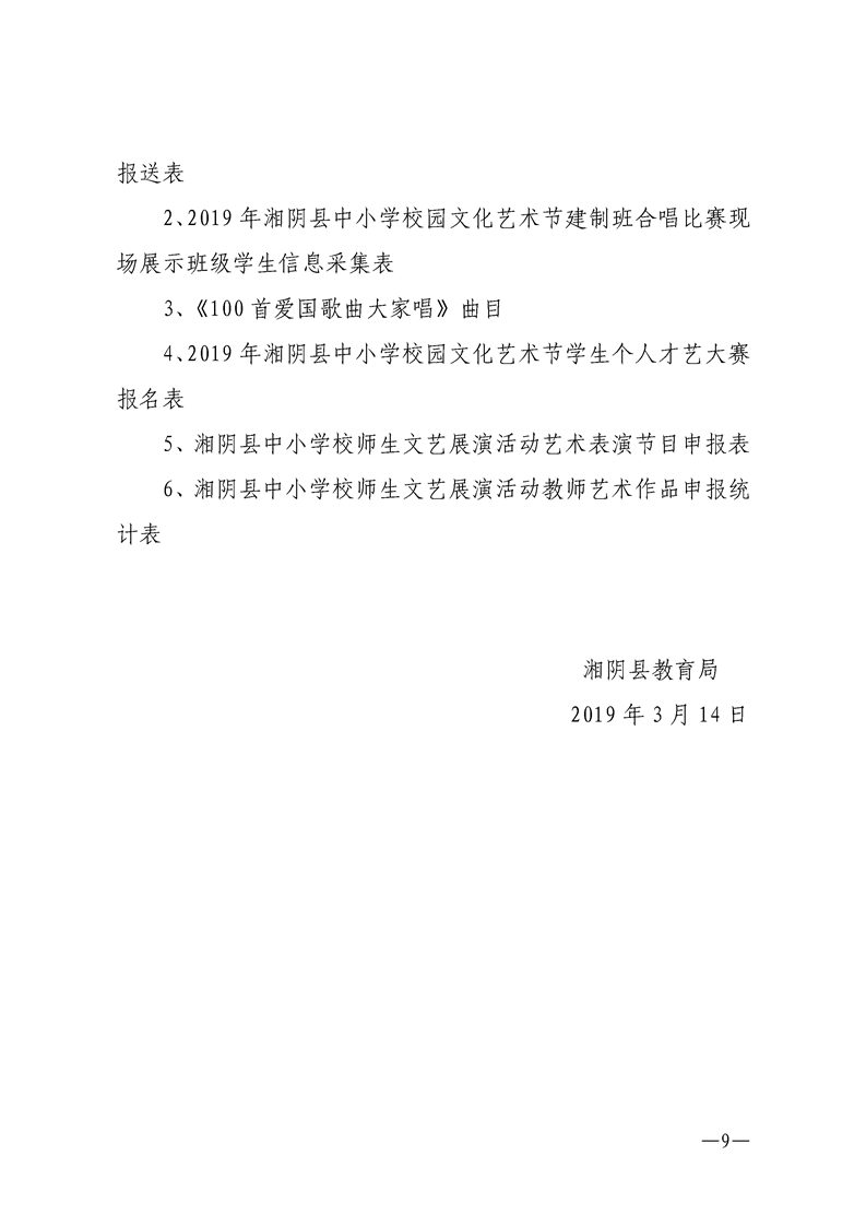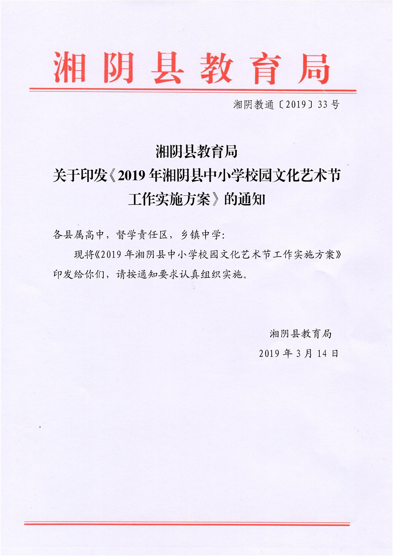 湘阴县教育局2019年中小学校园文化艺术节工作实施方案