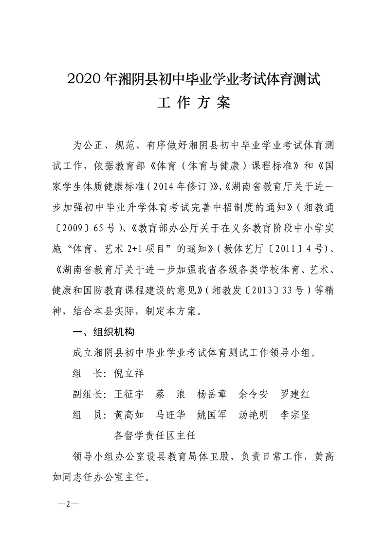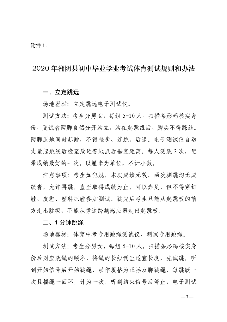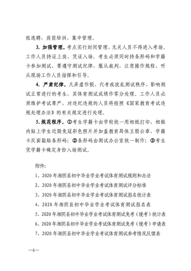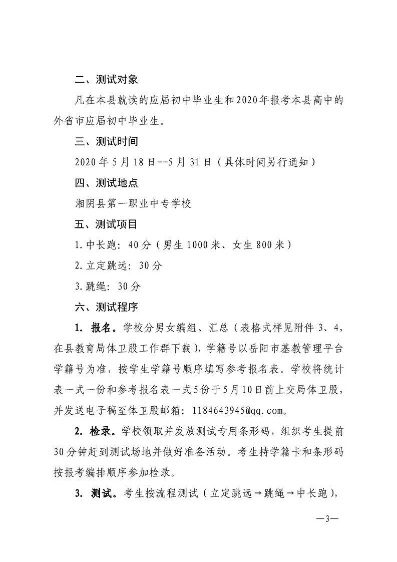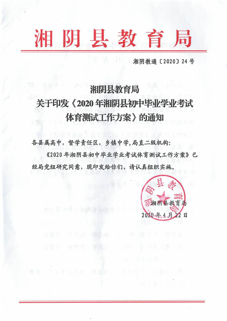 湘阴县教育局关于印发《2020年湘阴县初中毕业学业考试体育测试工作方案》的通知
