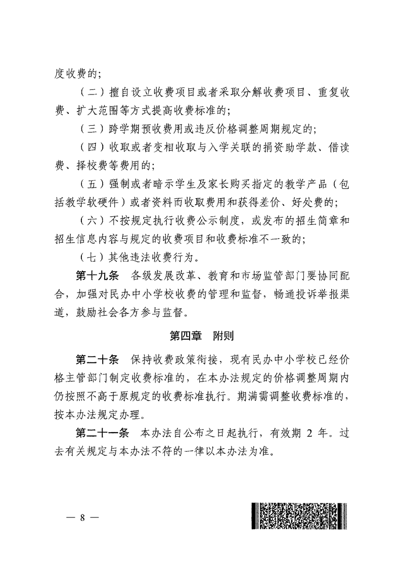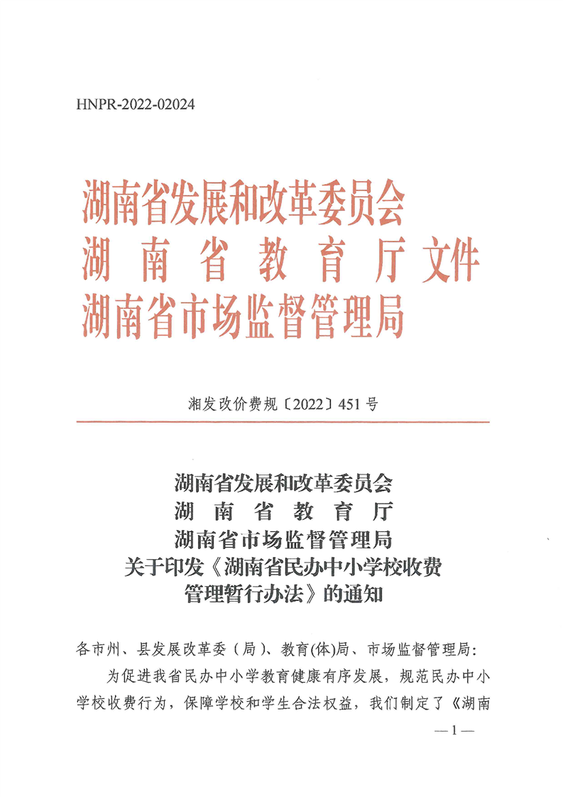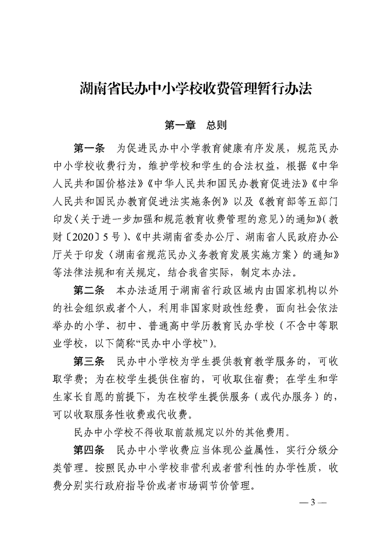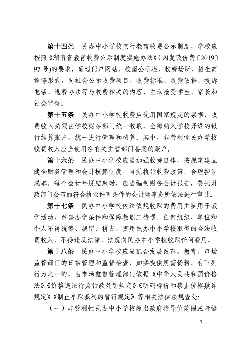 湘发改价费规〔2022〕451号湖南民办中小学收费管理暂行办法