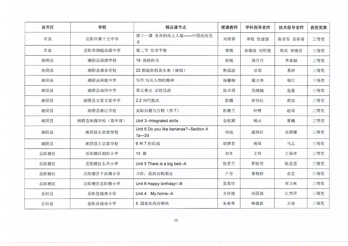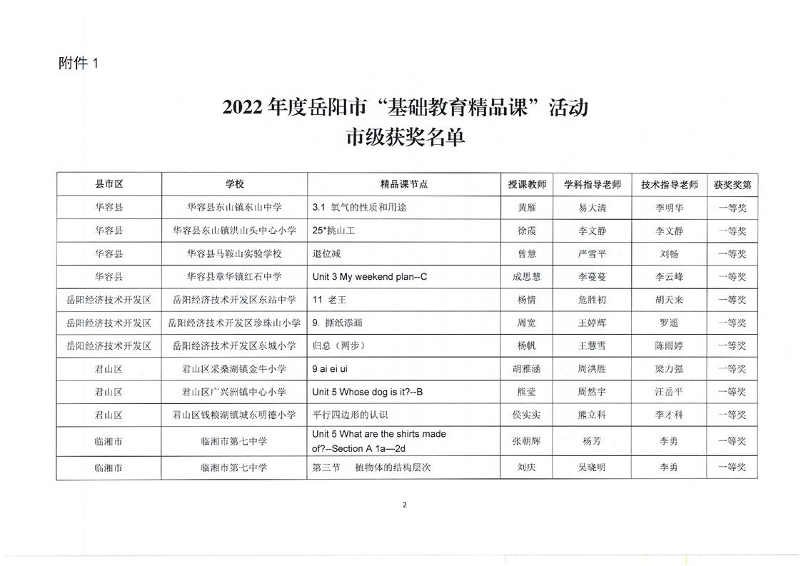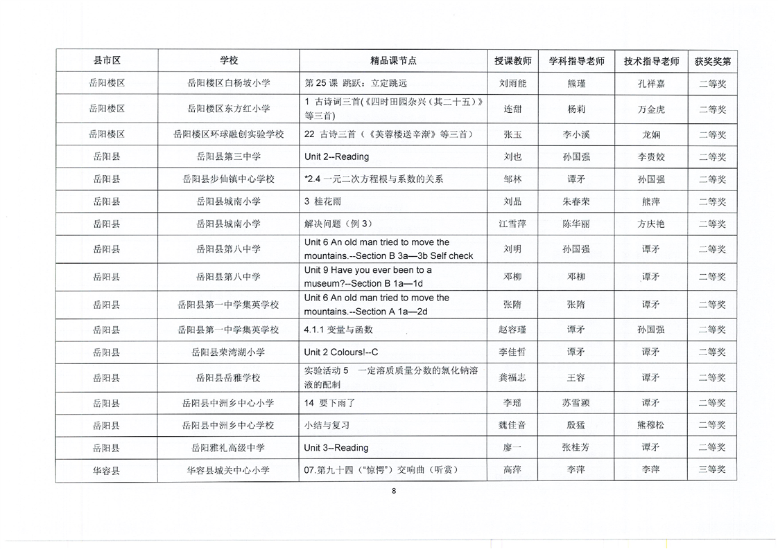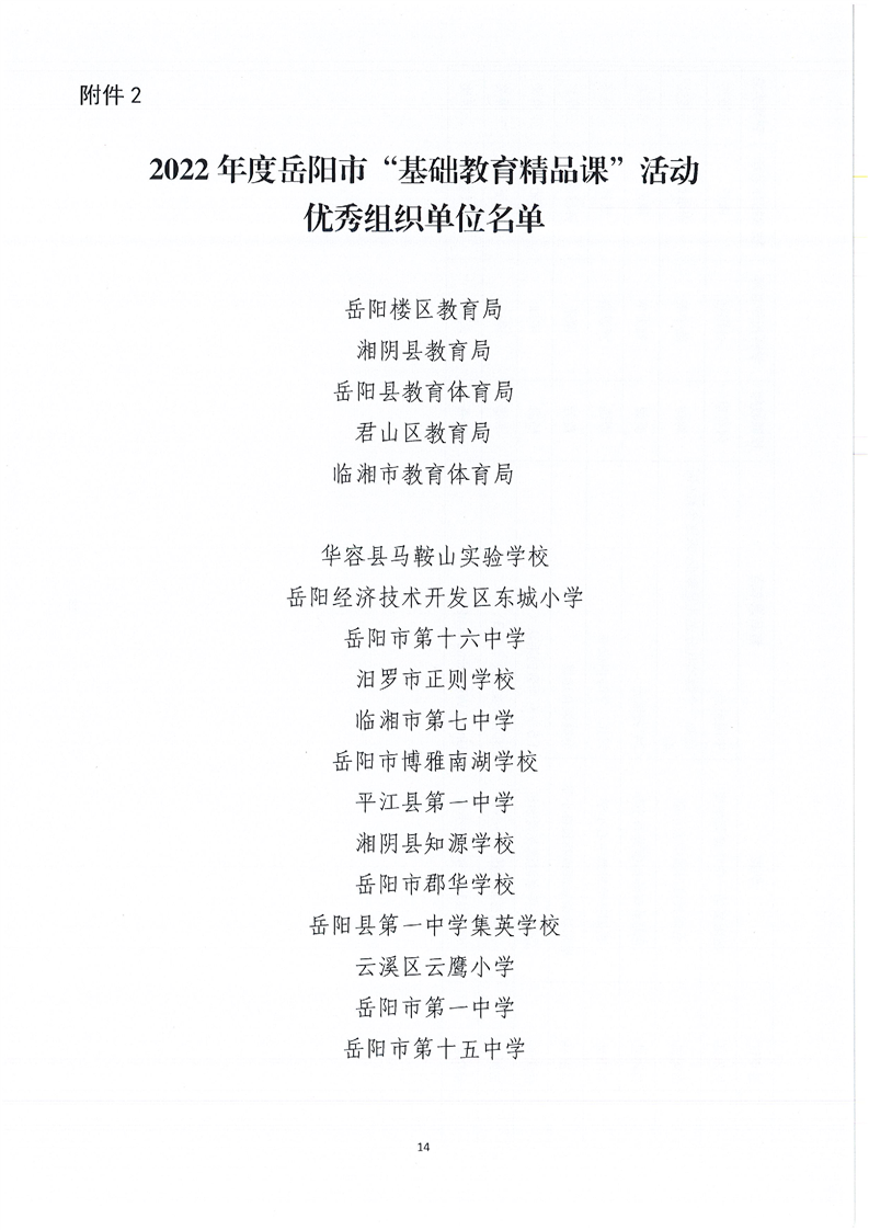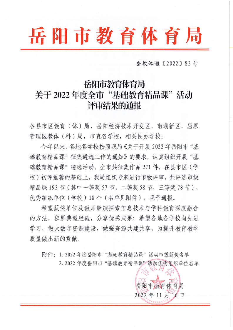 岳教体通〔2022〕83号岳阳市教育体育局关于2022年度全市精品课活动评审结果的通报