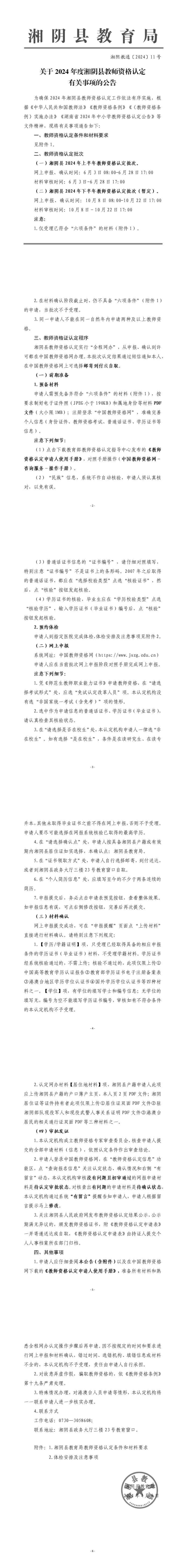 关于2024年度湘阴县教师资格认定有关事项的公告