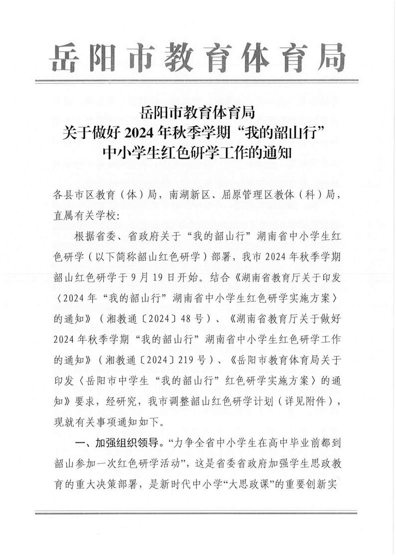 关于做好2024年秋季学期“我的韶山行”中小学生红色研学工作的通知1