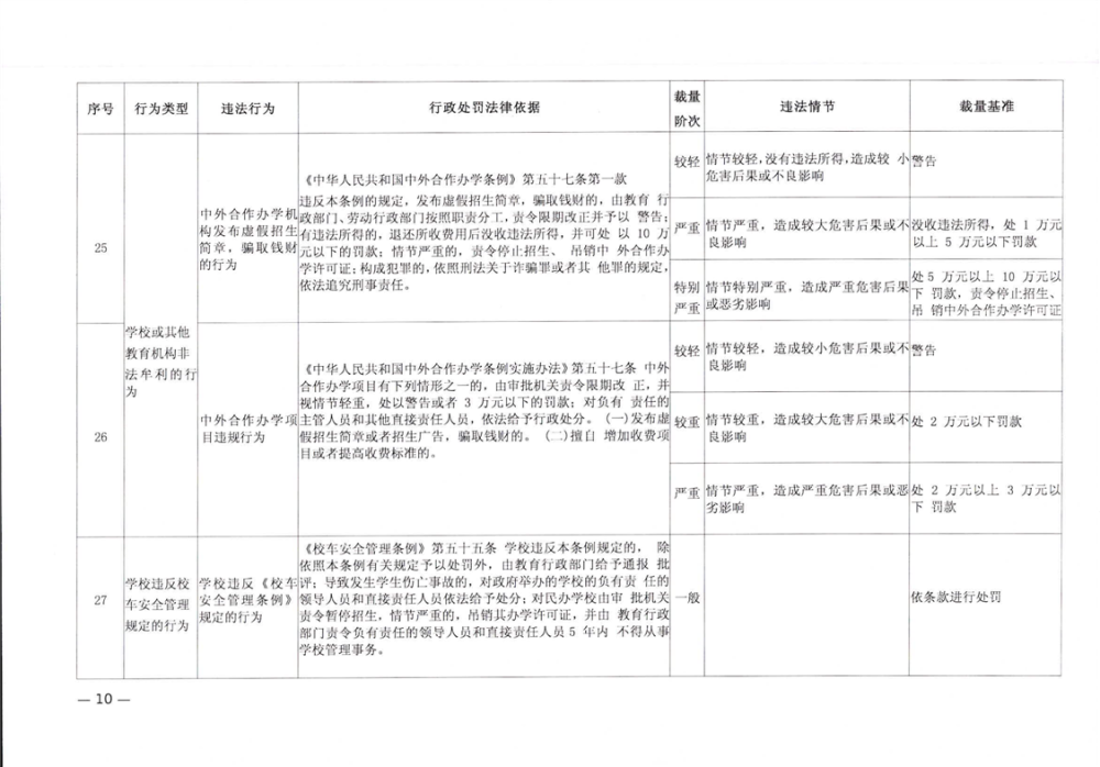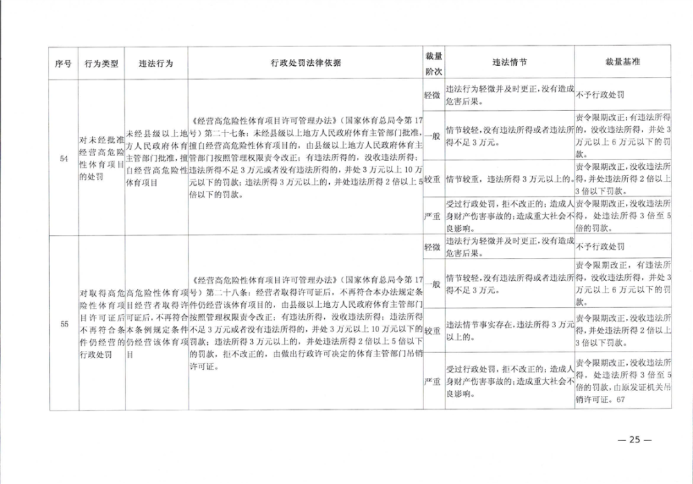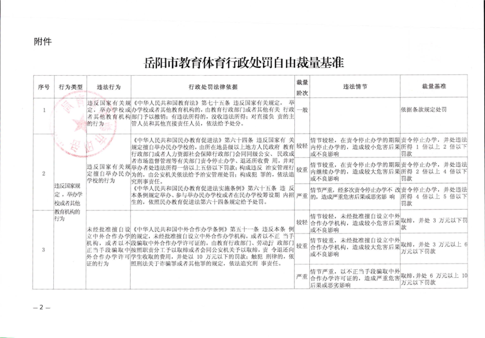 关于印发《市教育体育行政处罚自由裁量基准》的通知