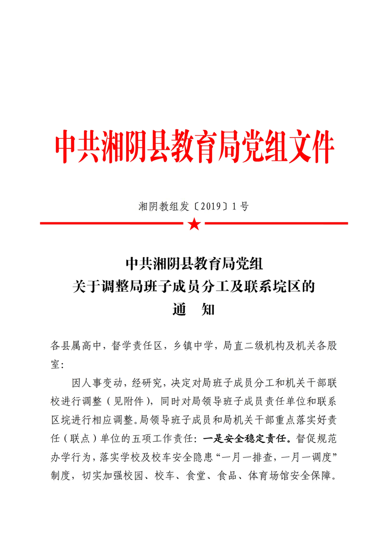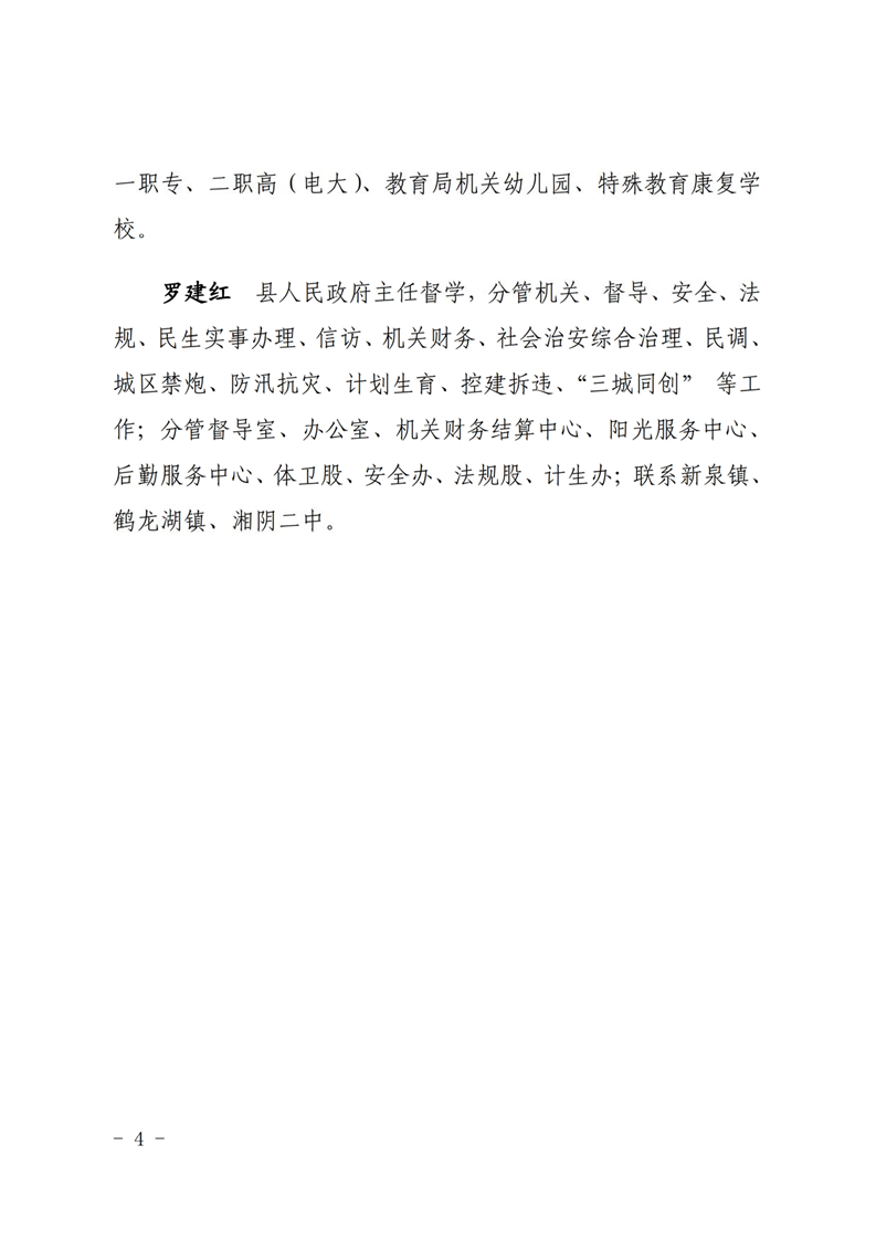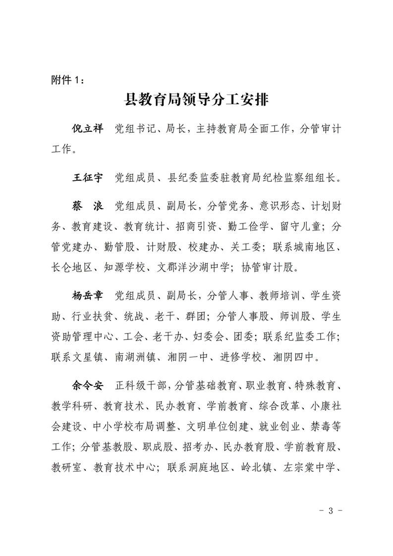 湘阴县教育局班子成员分工