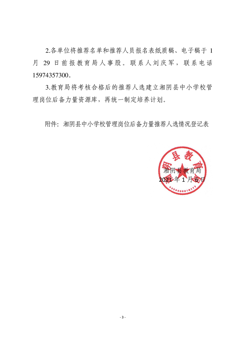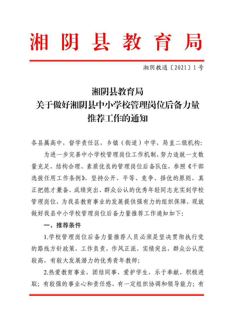 湘阴县教育局关于做好湘阴县中小学校管理岗位后备力量推荐工作的通知