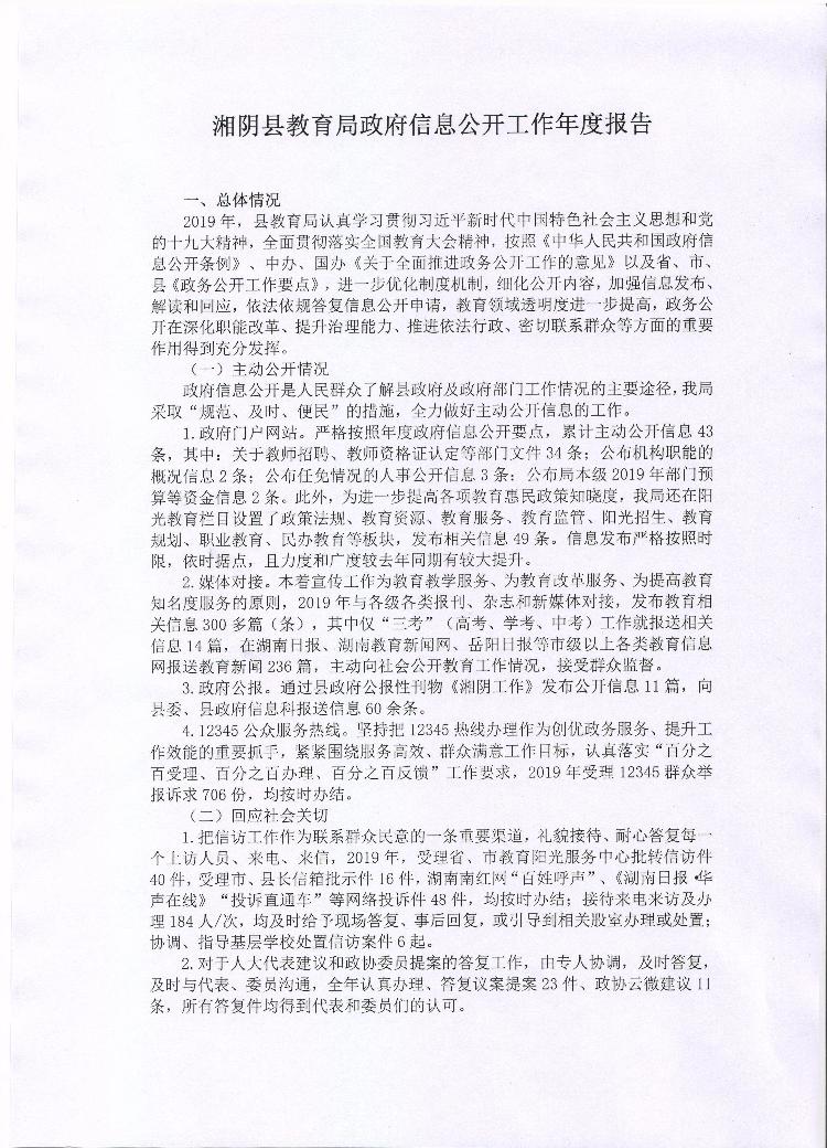 湘阴县教育局2019年政府信息公开工作年度报告