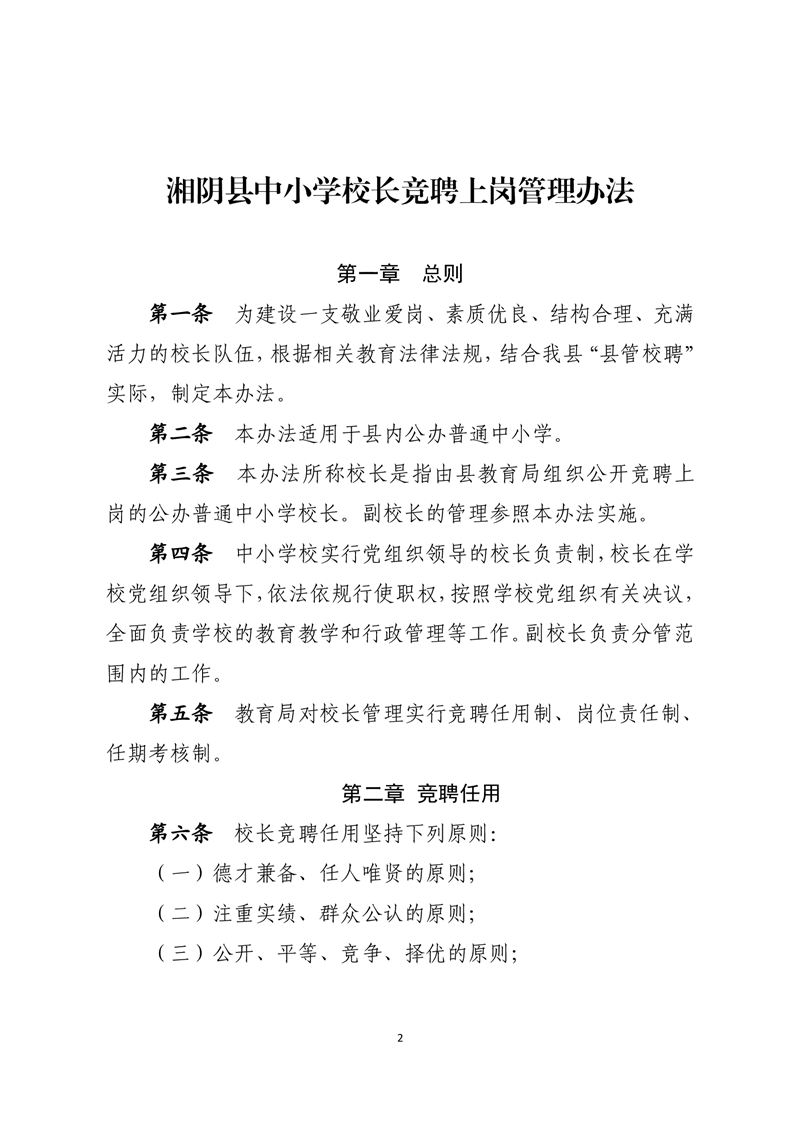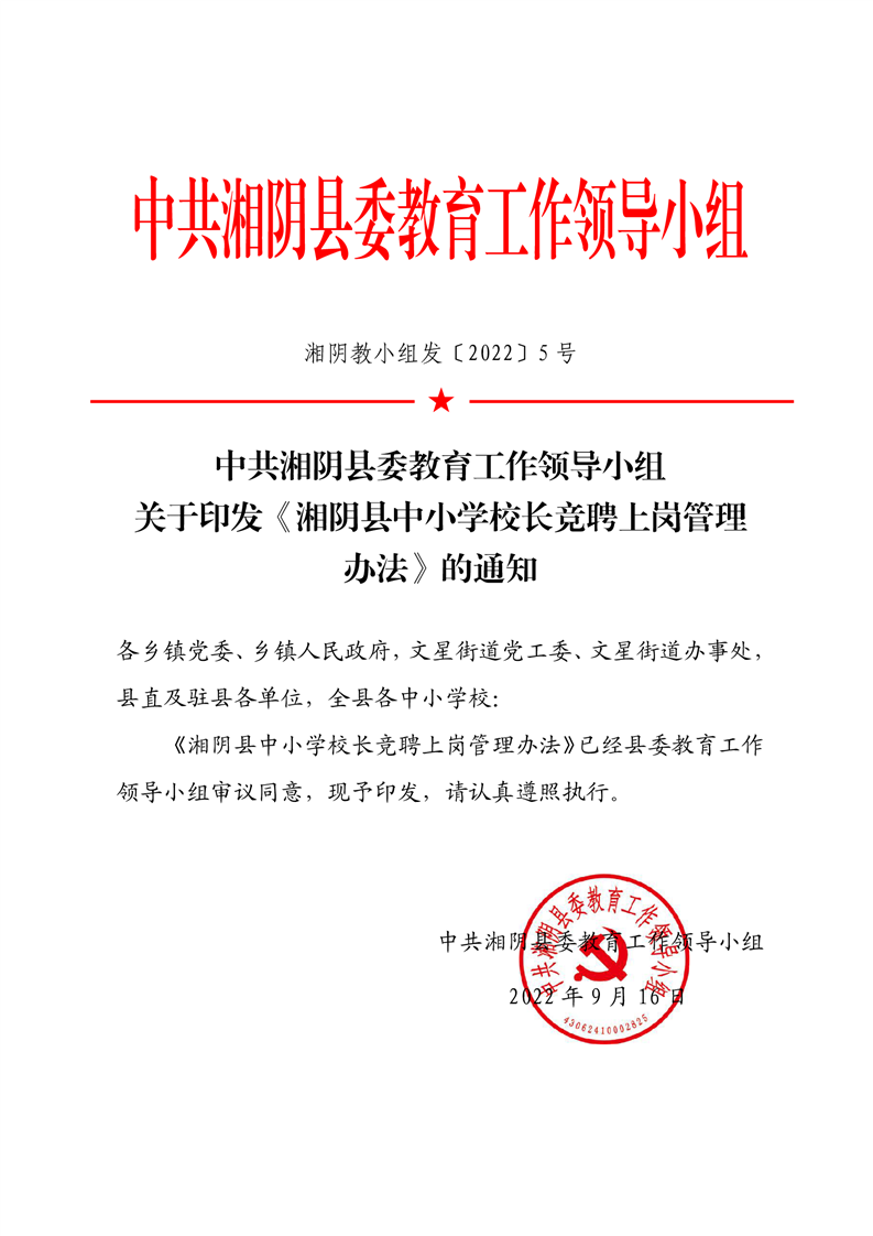 湘阴教小组发〔2022〕5号 关于印发《湘阴县校长竞聘上岗管理办法》的通知