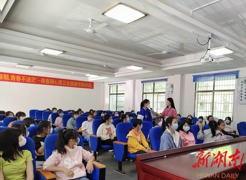 4月21日,湘阴县教育局巾帼志愿者宣讲队队员陈婷在柳潭中学开展“健康青春期,青春不迷茫”心理卫生健康知识讲座。“多一个幸福家庭,就会少一个问题学生。”柳潭中学校长郑海龙介绍,该校秉承“关爱学生身心健康”育人理念,从打造专业队伍、建设专业阵地、完善家庭保护支持系统等方面制定工作方案,并通过开展线上“家庭教育指导课程”、定期“家访”等多措并举落在实处。