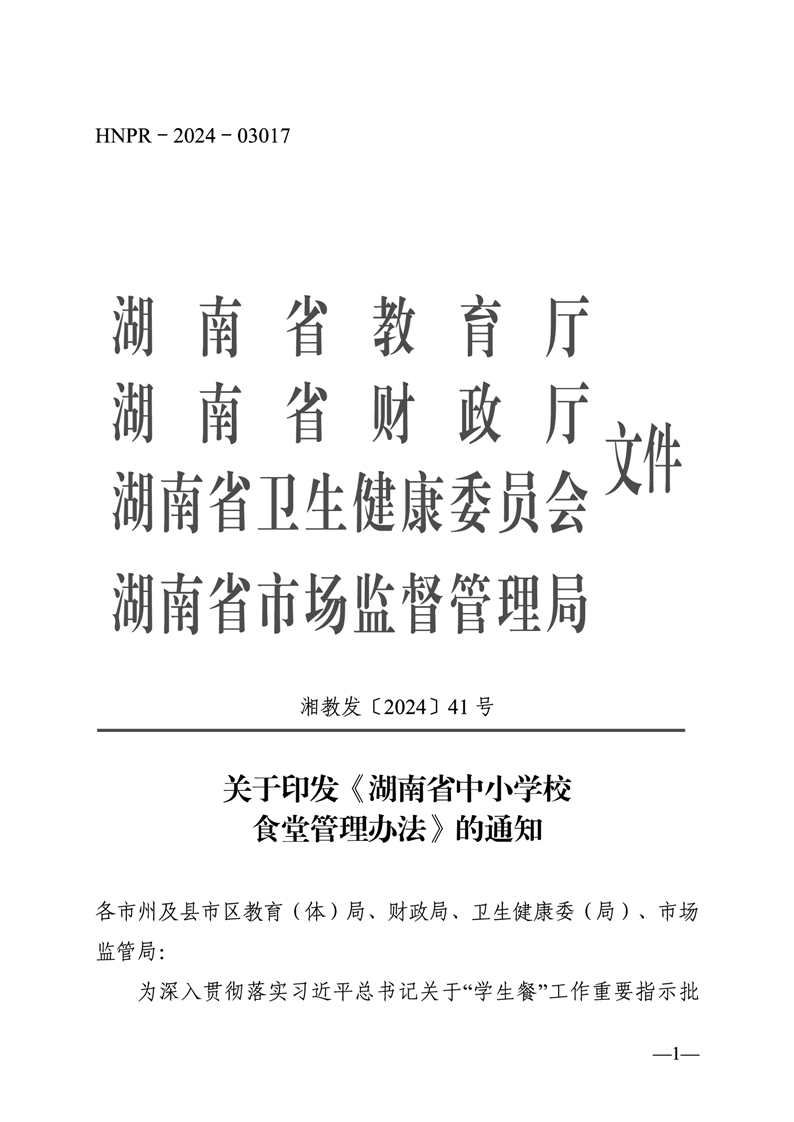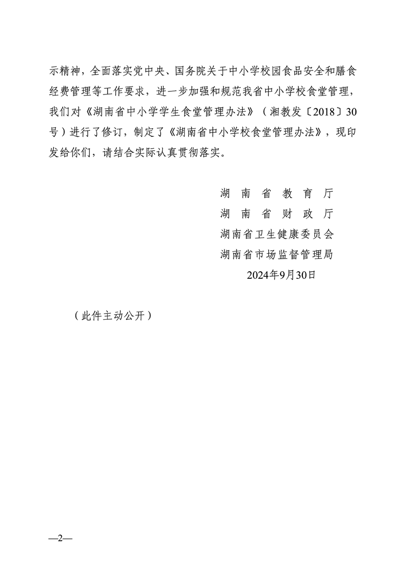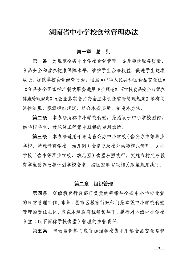 关于印发《湖南省中小学校食堂管理办法》的通知