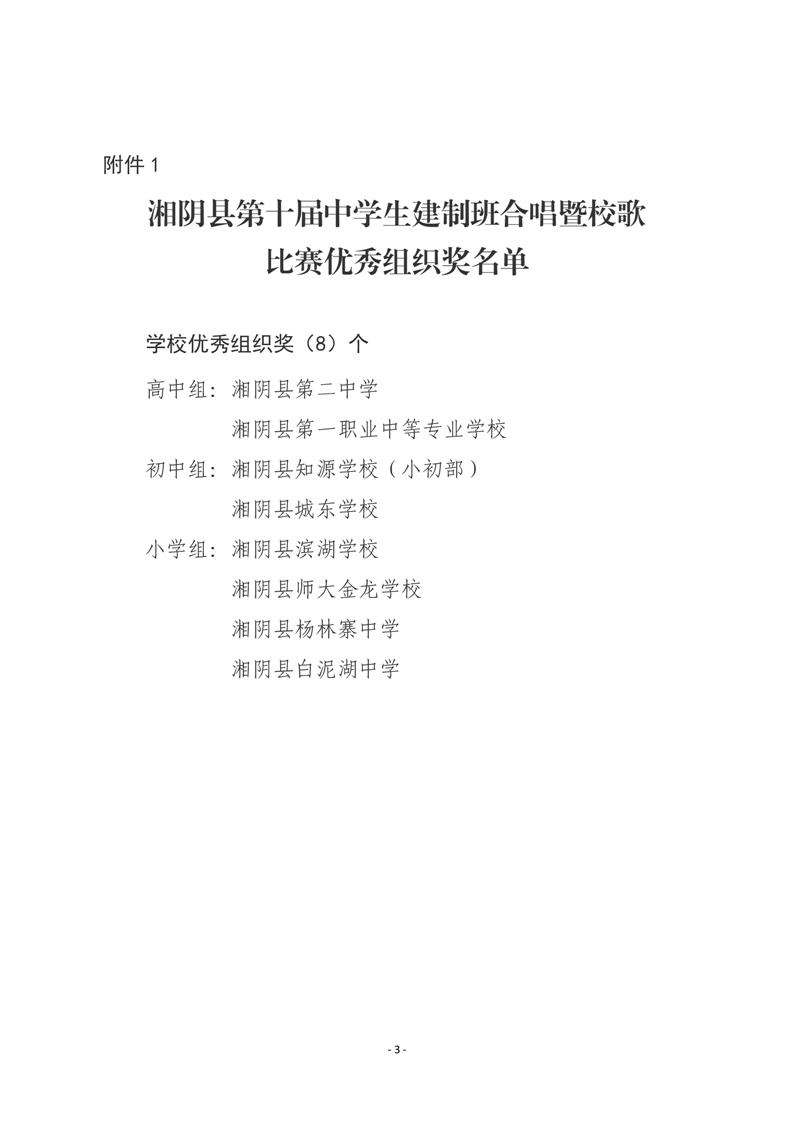 关于表彰湘阴县第十届中学生建制班合唱暨校歌比赛获奖情况的通报