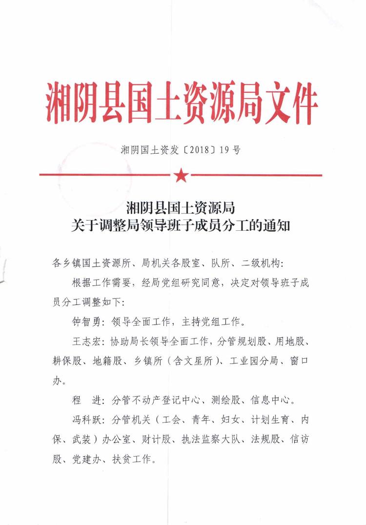 湘阴县国土资源局关于调整局领导班子成员分工的通知