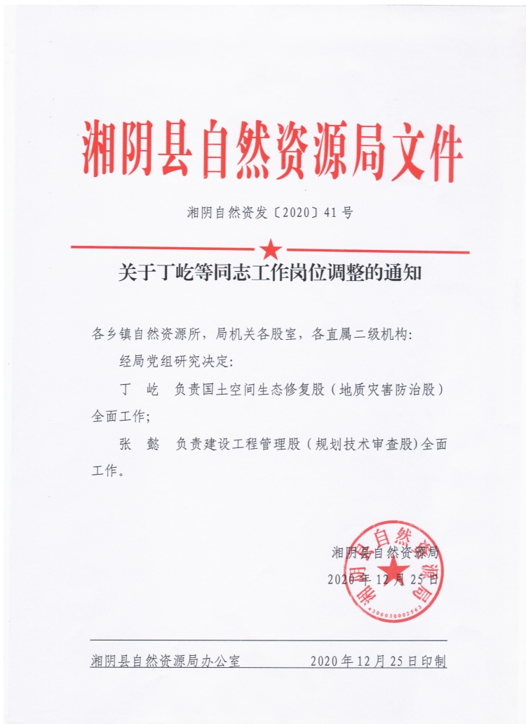 关于丁屹等同志工作岗位调整的通知