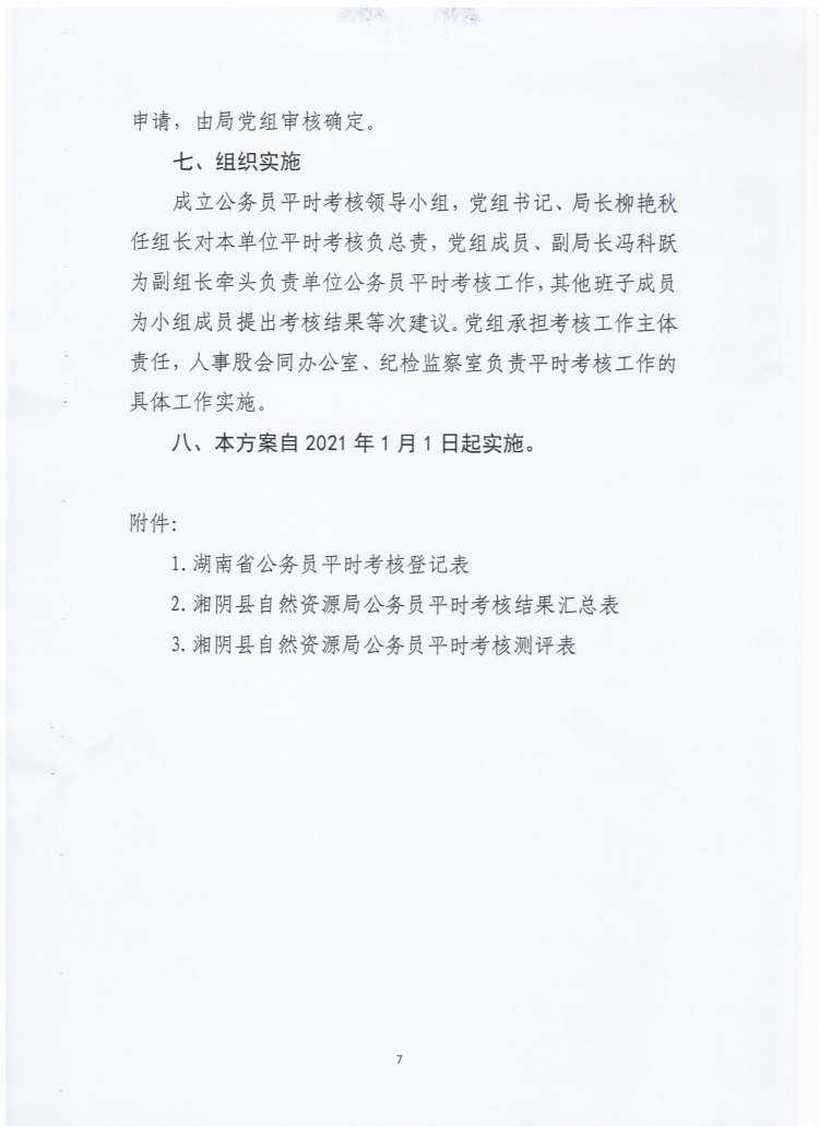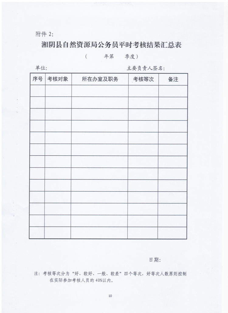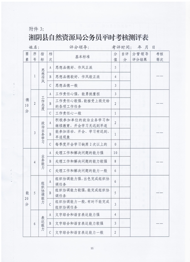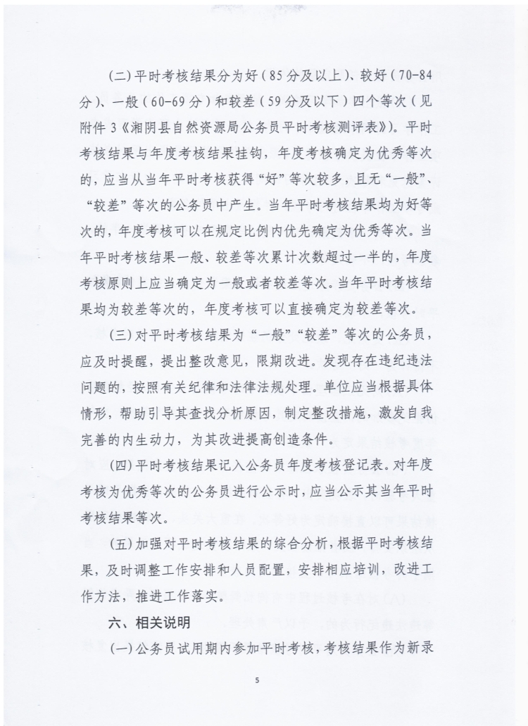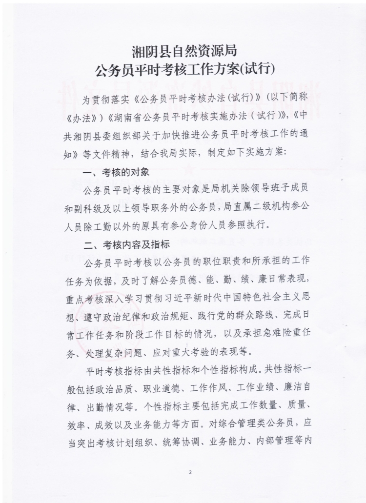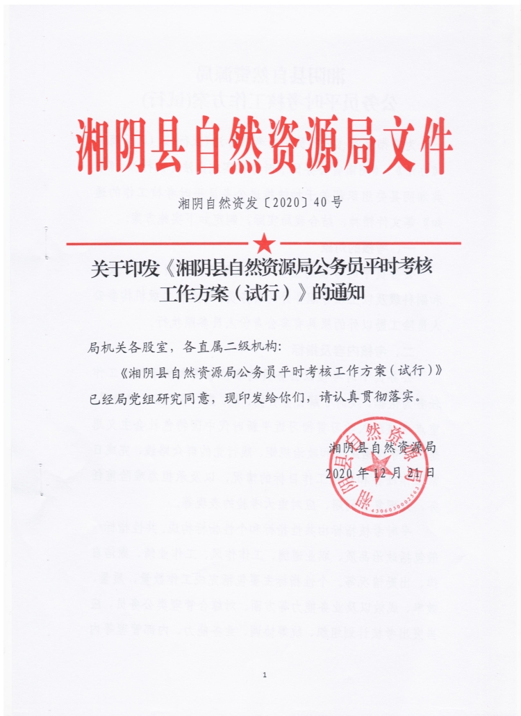 关于印发《湘阴县自然资源局公务员平时考核工作方案(试行)》的通知