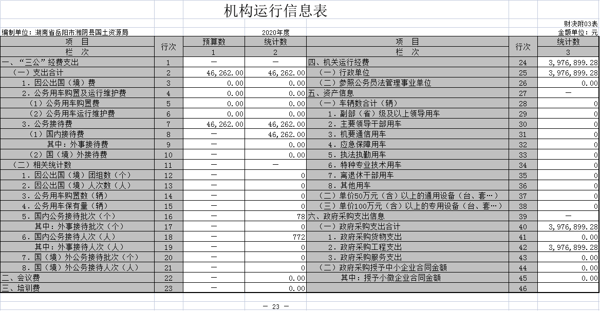 湘阴县自然资源局2020年度部门决算表(见附件)