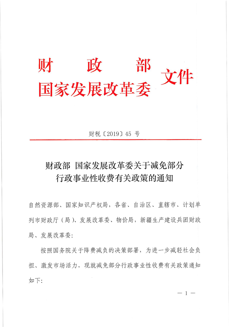 财税[2019]45号 | 关于减免部分行政事业性收费有关政策的通知