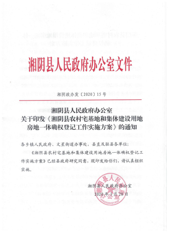湘阴县农村宅基地和集体建设用地房地一体确权登记工作实施方案