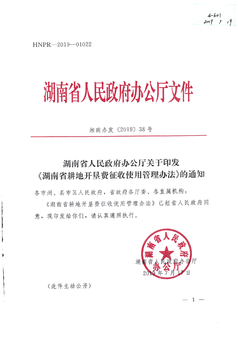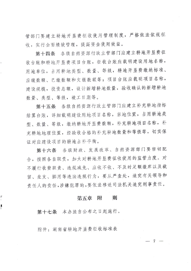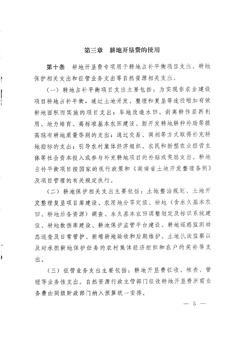 湖南省人民政府办公厅关于印发《湖南省耕地开垦费征收使用管理办法》的通知