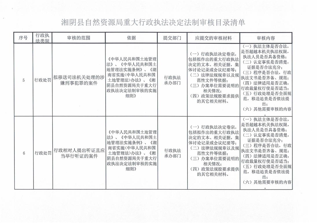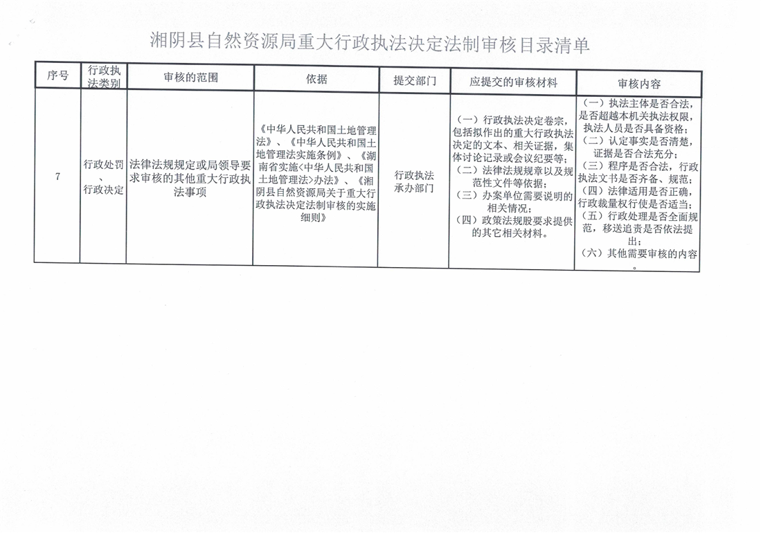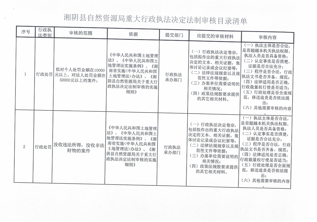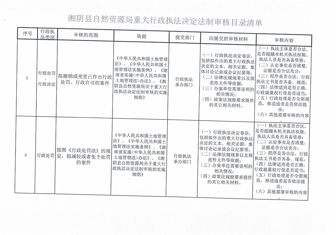 湘阴县自然资源局重大行政执法决定法制审核目录清单
