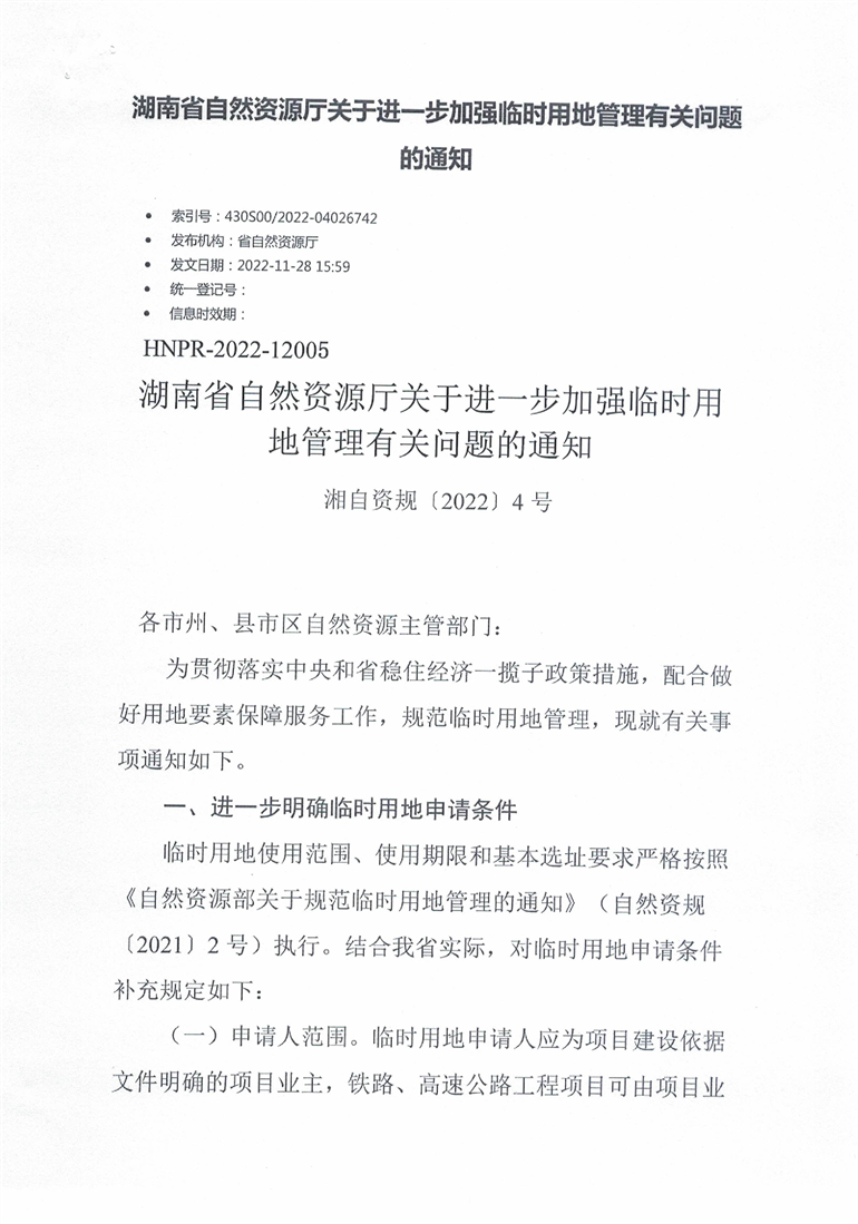 湖南省自然资源厅关于进一步加强临时用地管理有关问题的通知