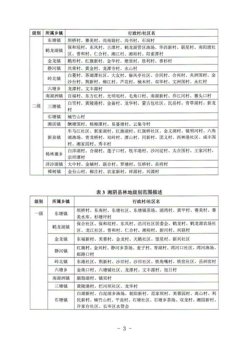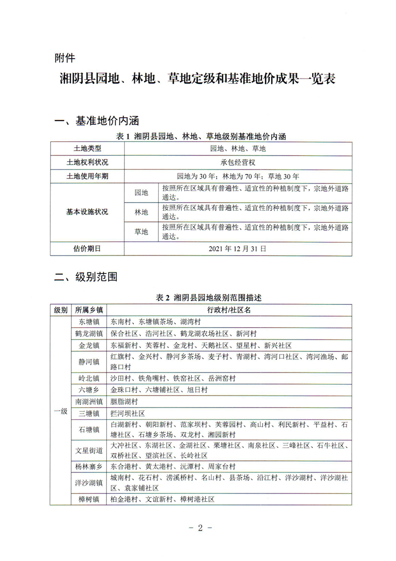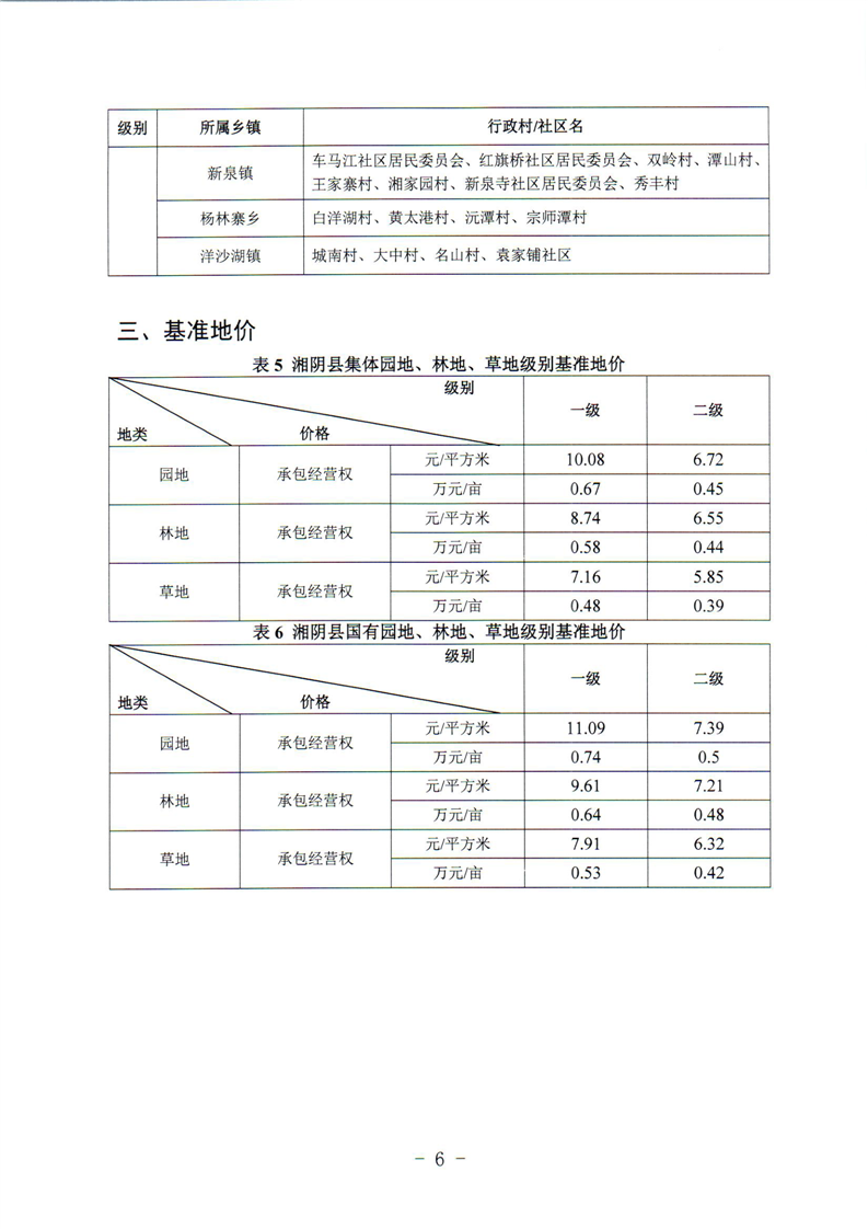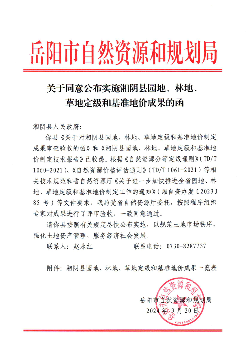 关于同意公布实施湘阴县园地、林地、草地定级和基准地价成果的函