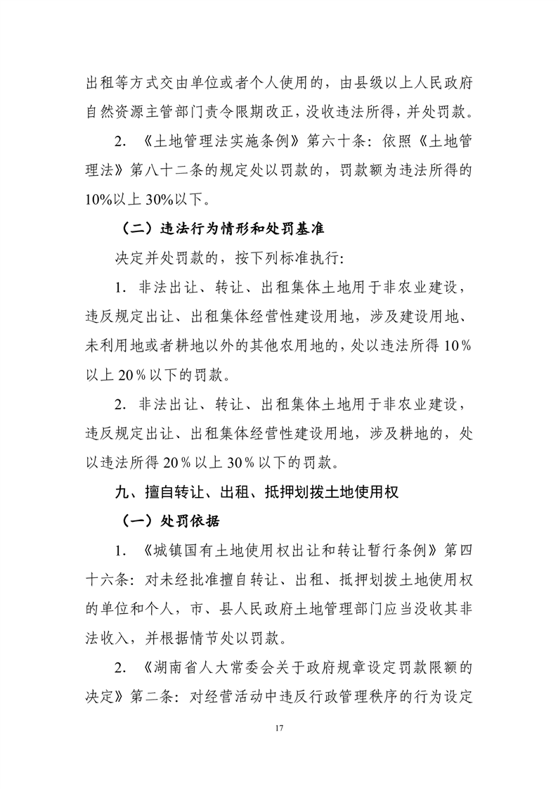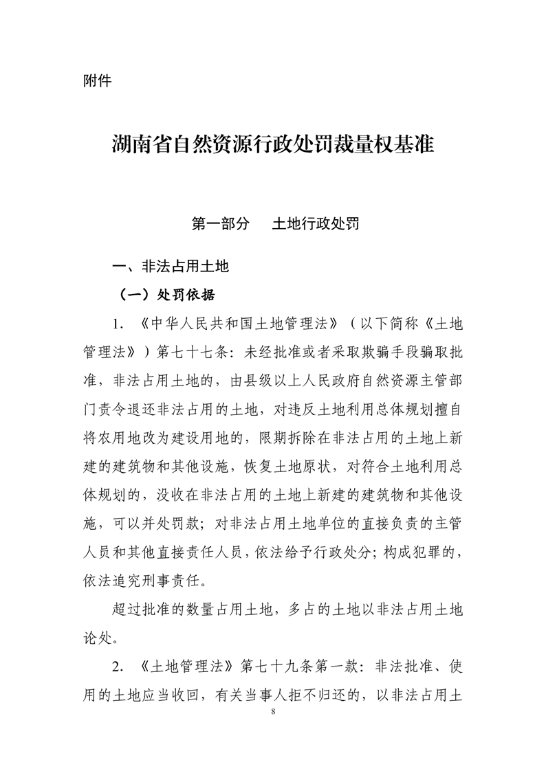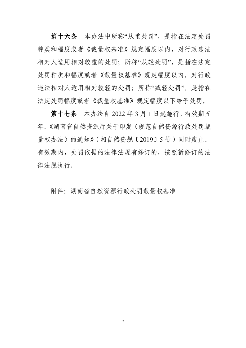 湖南省自然资源厅关于印发《自然资源行政处罚裁量权办法》的通知