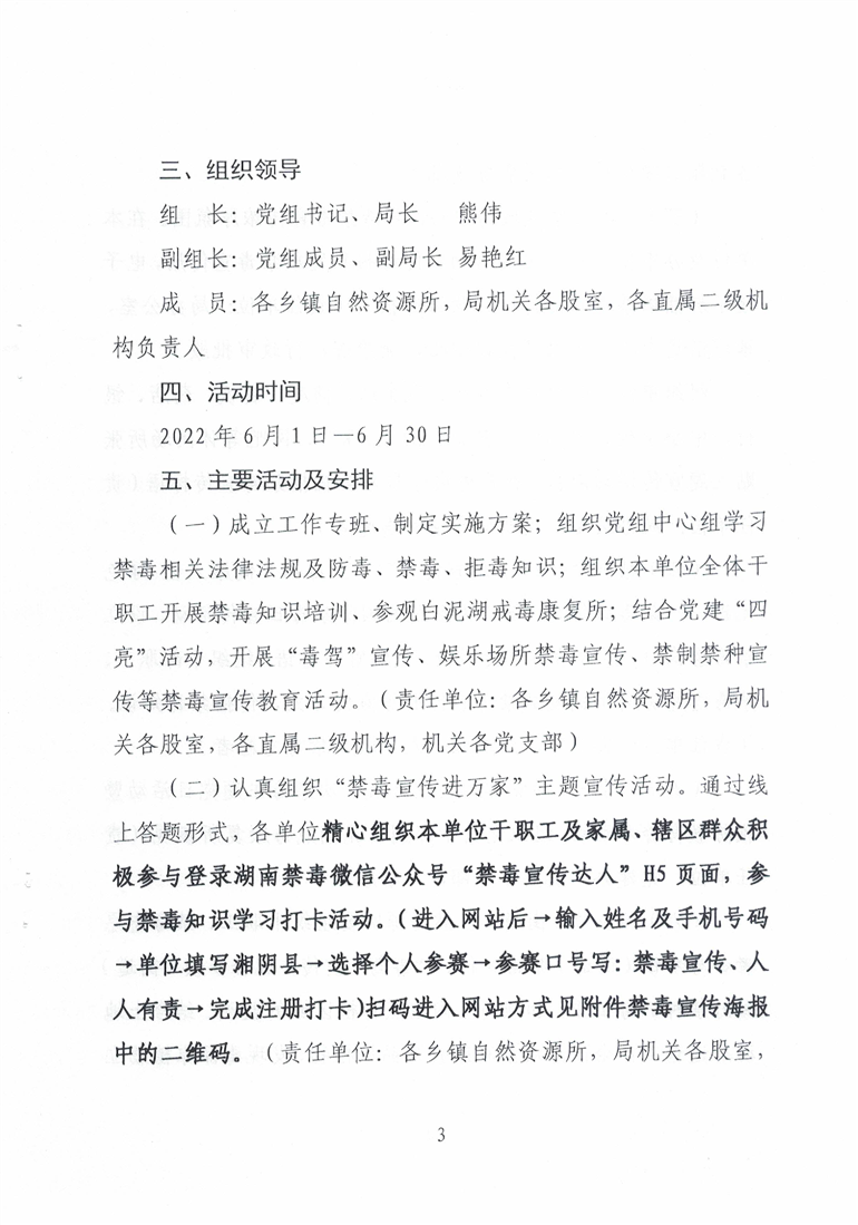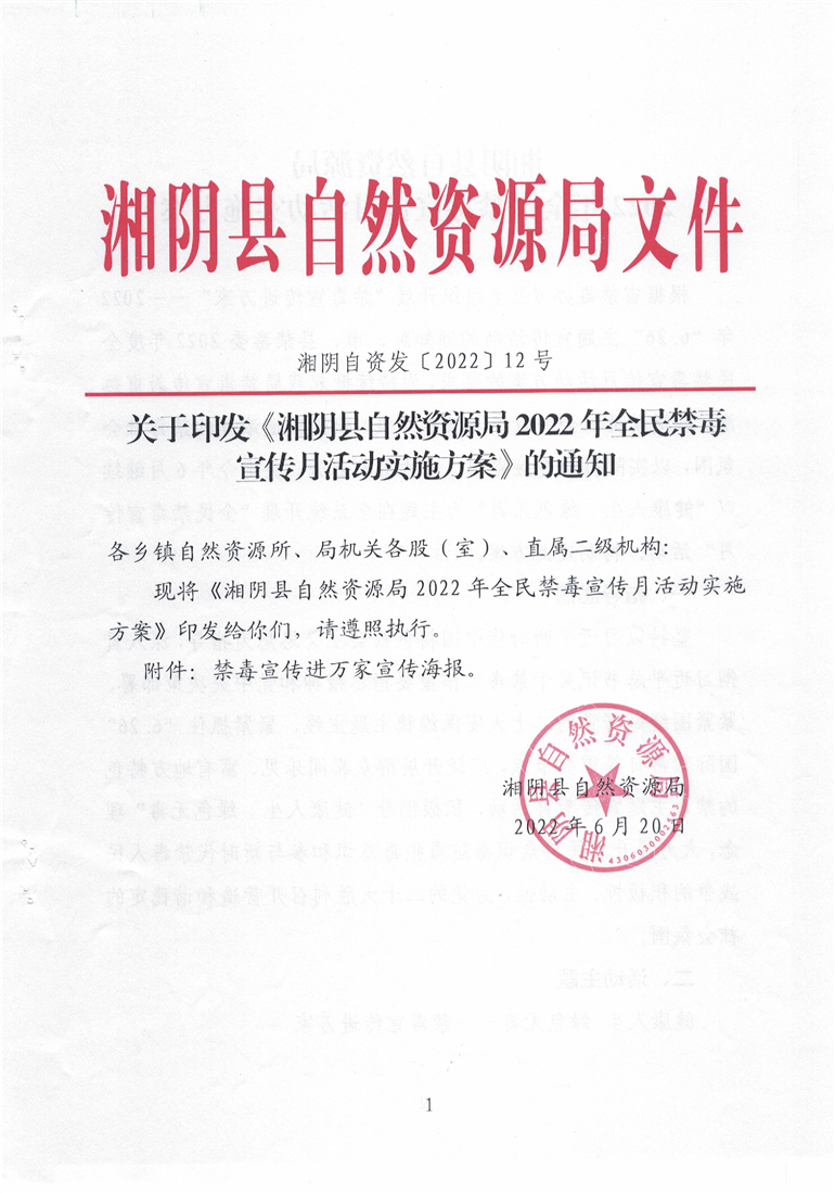 关于印发《湘阴县自然资源局2022年全民禁毒宣传月活动实施方案》的通知