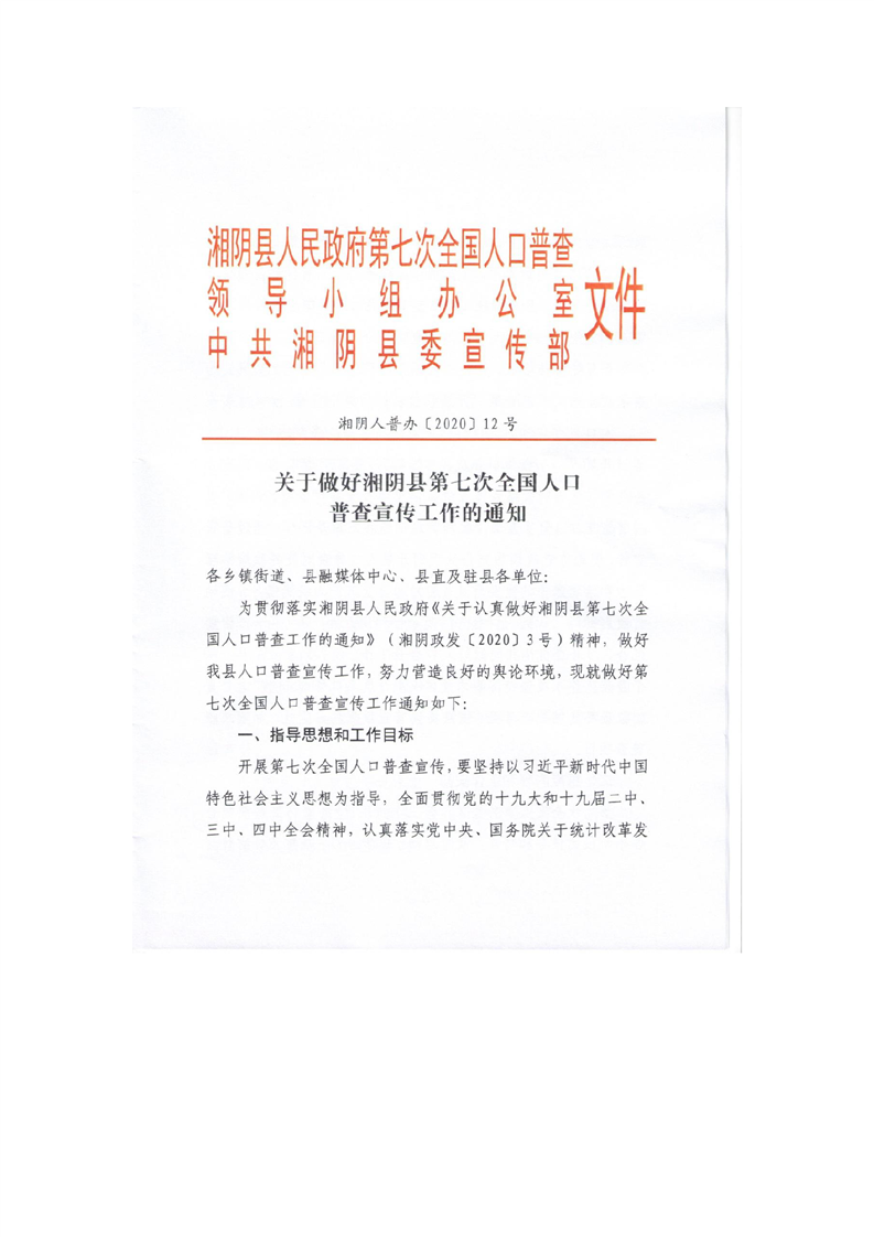 关于做好湘阴县第七次全国人口普查宣传工作的通知