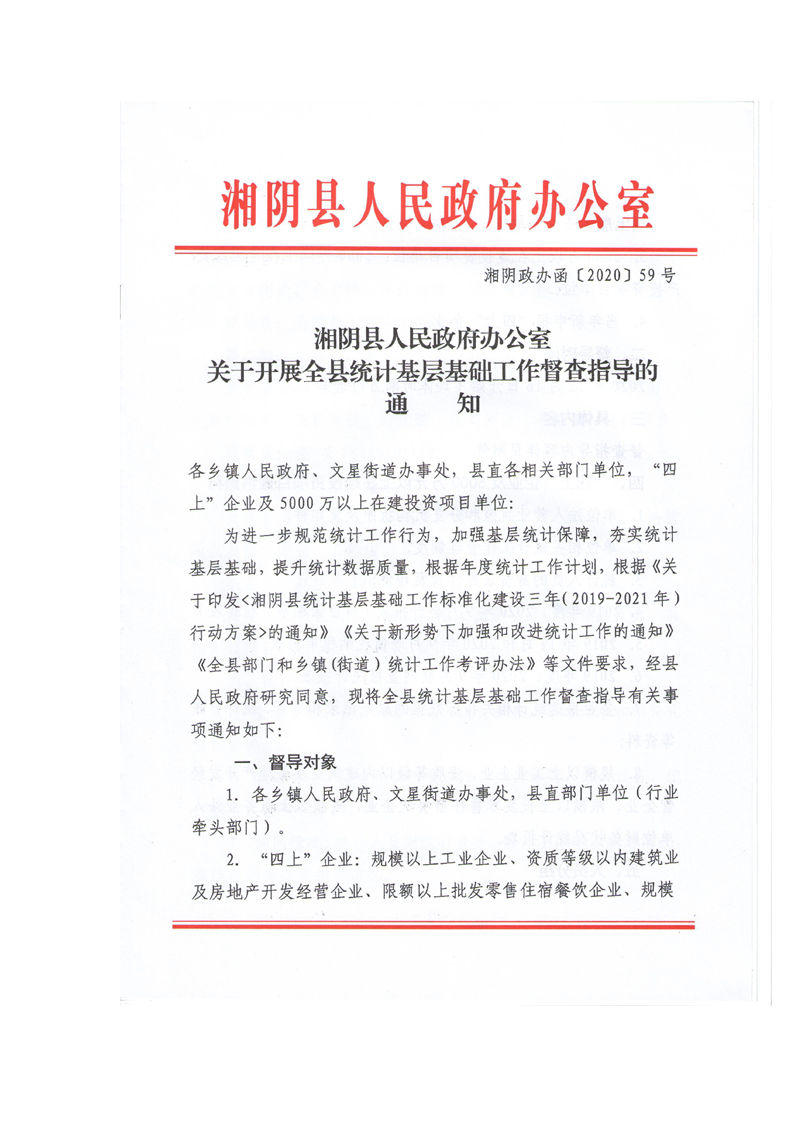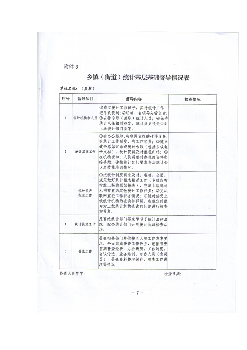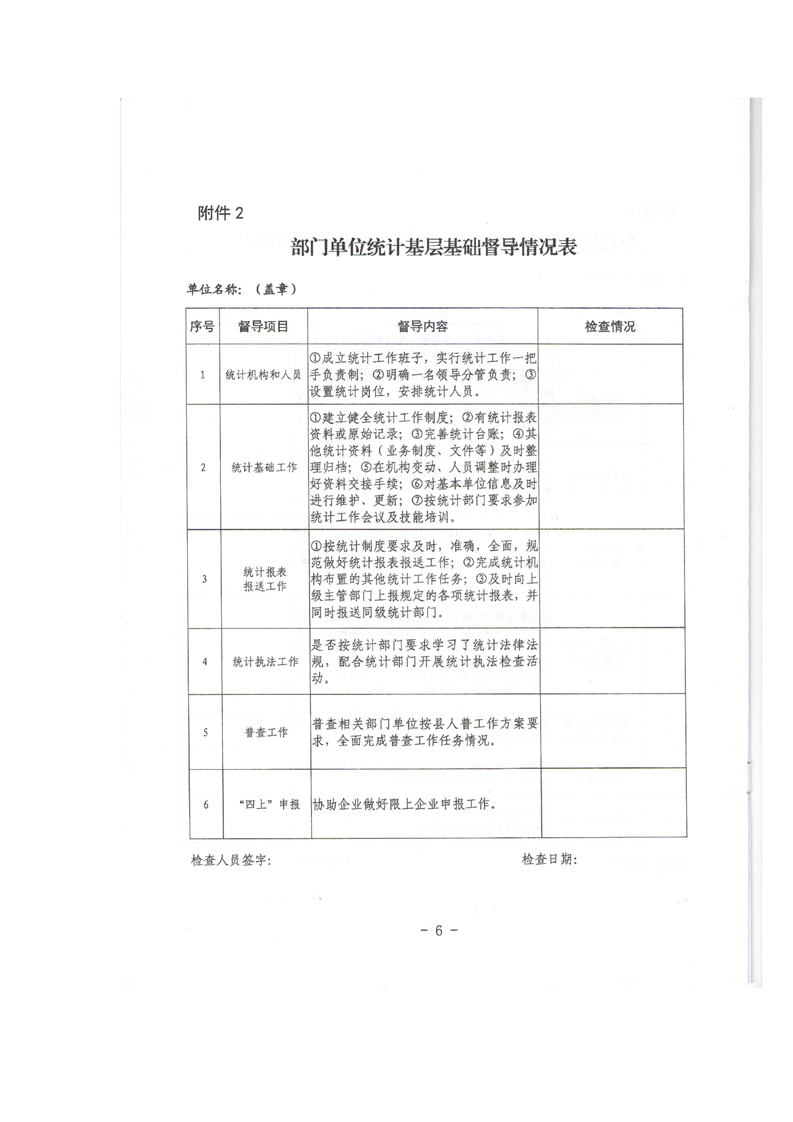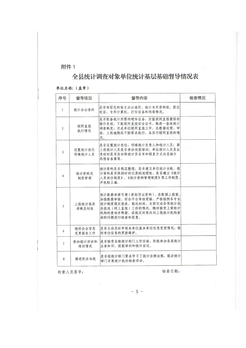 关于开展全县统计基层基础工作督查指导的通知